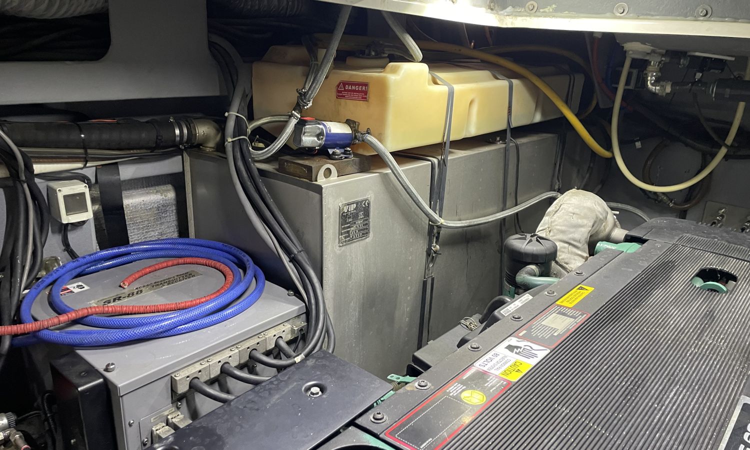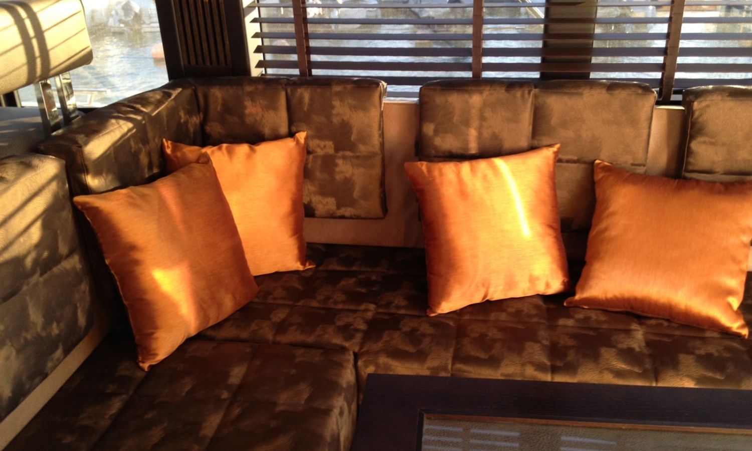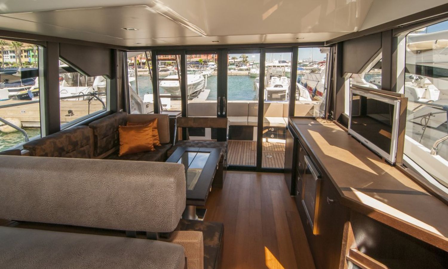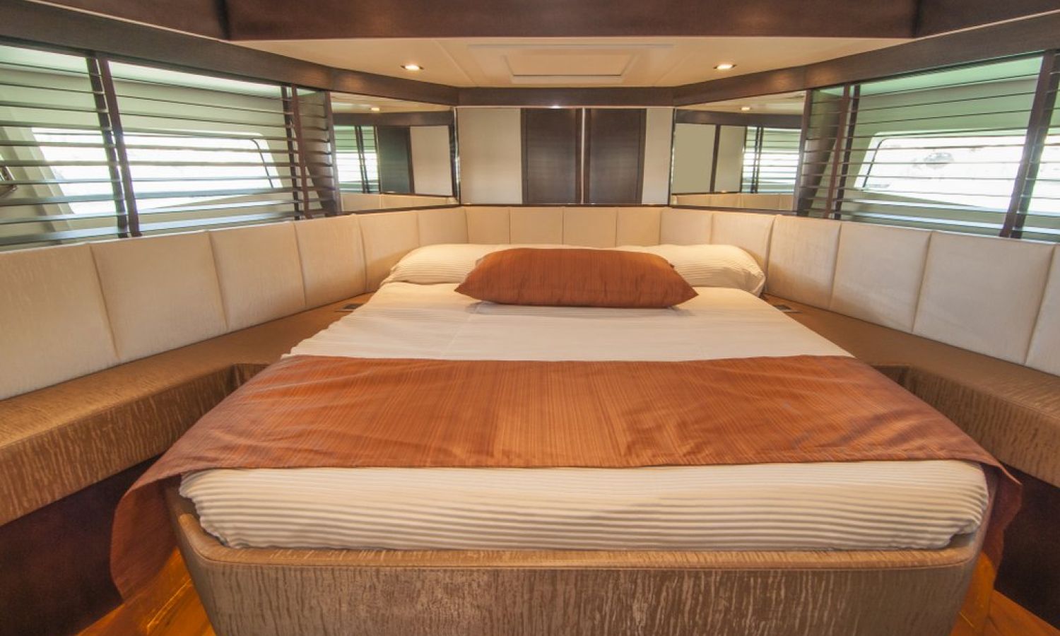 Bimini top on flybridge - Stern shower - 3 cabins - Stern platform with bathing ladder - Stern sundeck - Teak - Bow cushions - Offshore poer 220 V. - Baterry charger - Generator - Air conditioning - Underwater lights - Cockpit table - Wet-bar with sink - Cockpit refrigerator - Kitchen - Freezer - Glass ceramic - Microwawe - Dishwasher - Gps/Plotter/Deepfinder - VHF - Autopilot - Audio equipment - Living room Tv - Radar - Electric anchor winch with chain and anchor - 2 Electric marine WC with waste water tank - Antifouling. Giroscopic stabilizerBoat description