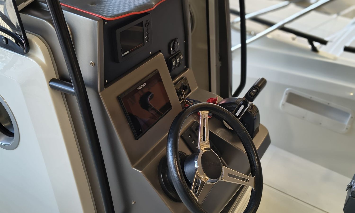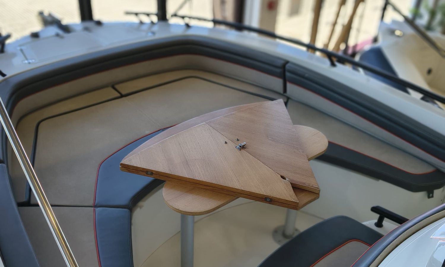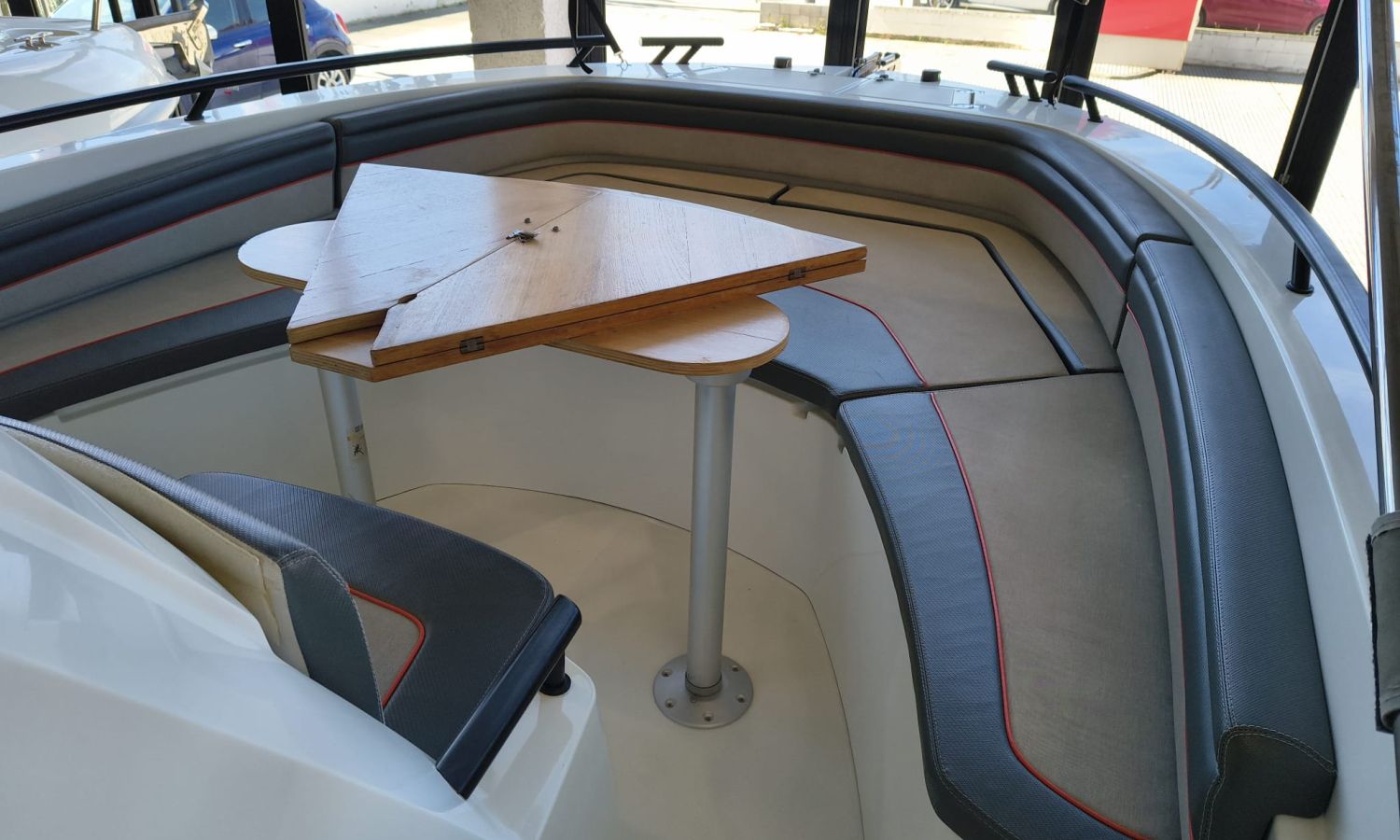 Bimini top-Electric windlass-Chemical toilet- Bow cushios-Table in cockpit-Transom shower-Gps/Plotter/Deep fish finder-Ski mast-Fridge 12v.-Electronic controls.Boat description