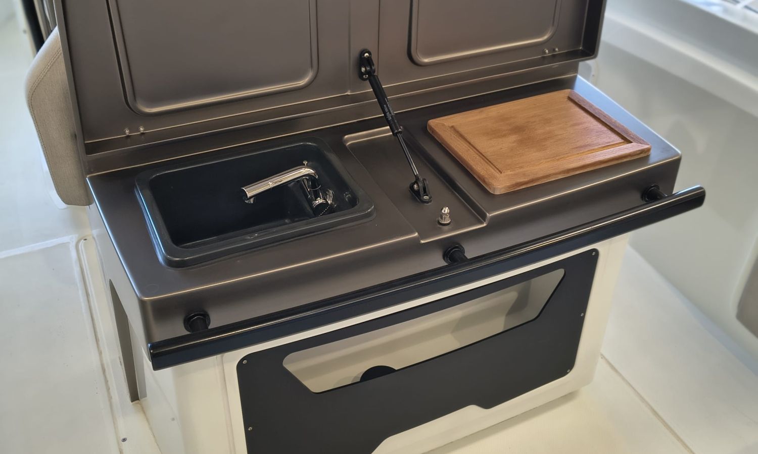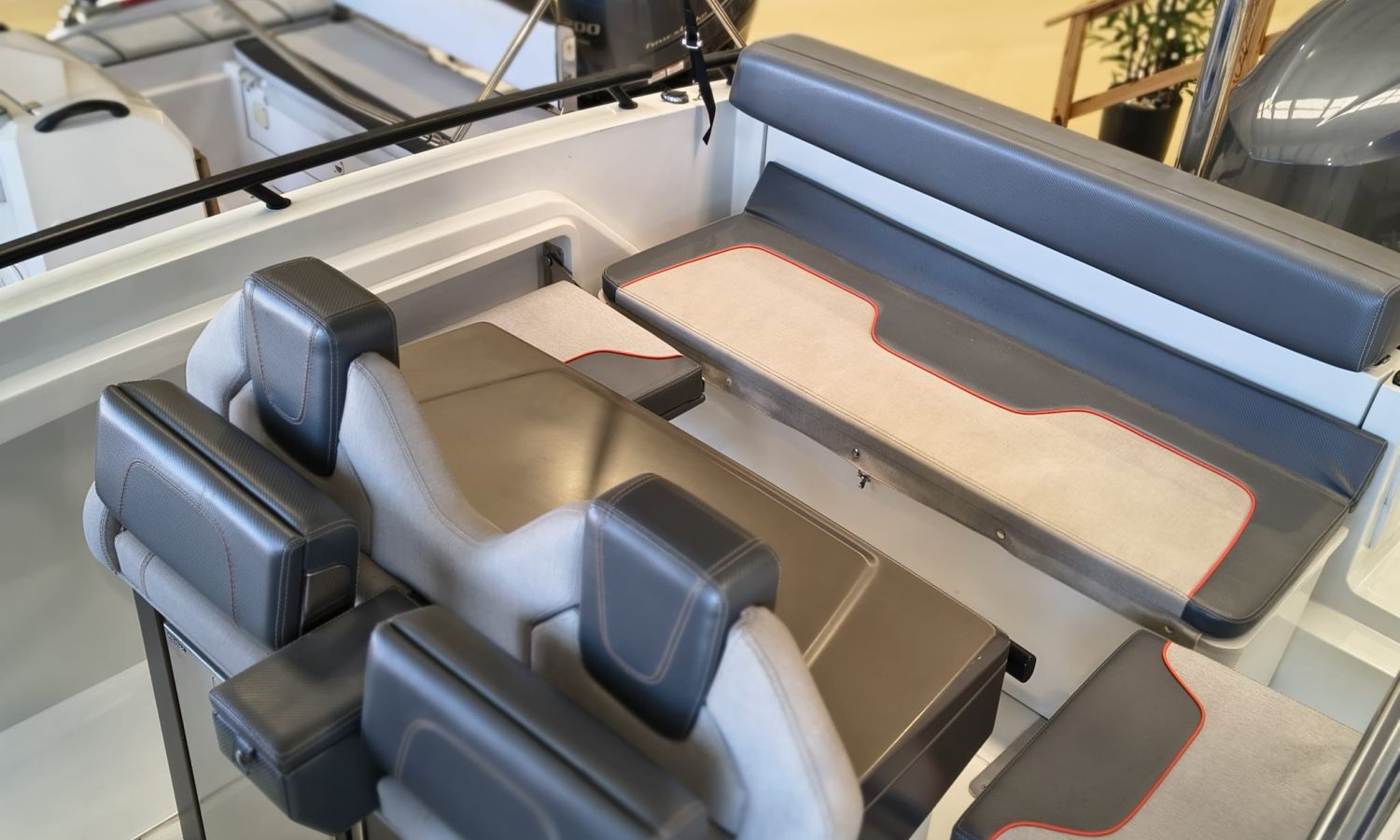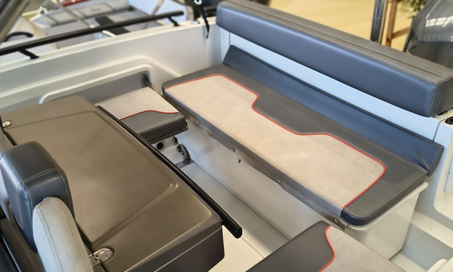 Bimini top-Electric windlass-Chemical toilet- Bow cushios-Table in cockpit-Transom shower-Gps/Plotter/Deep fish finder-Ski mast-Fridge 12v.-Electronic controls.Boat description