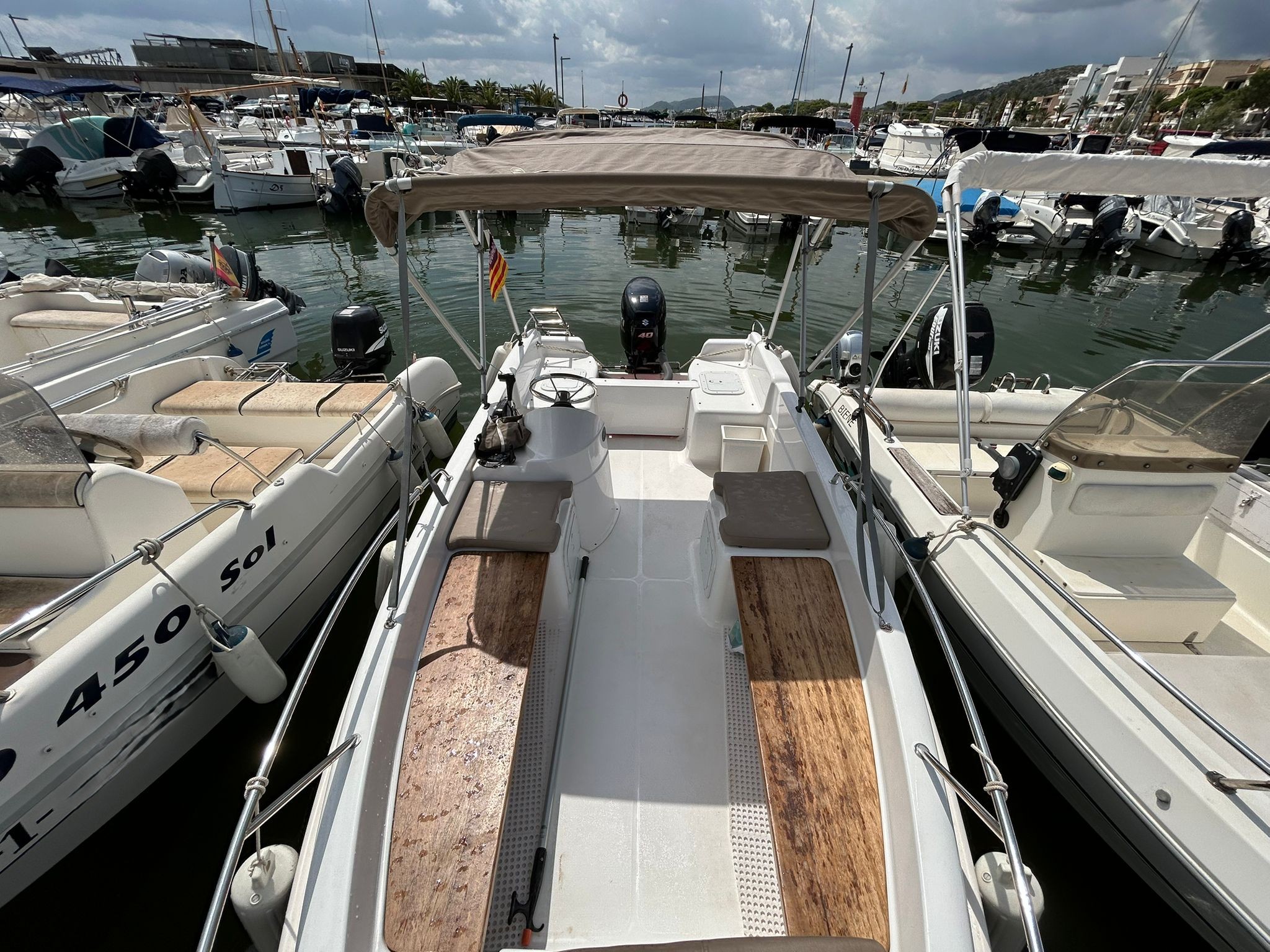Bath ladder - Bimini top - Garmin sonar - 2 USB ports - 2 wooden benches - 2 summer and winter covers - Anchor and chain - Trailer - Antifouling.Boat description