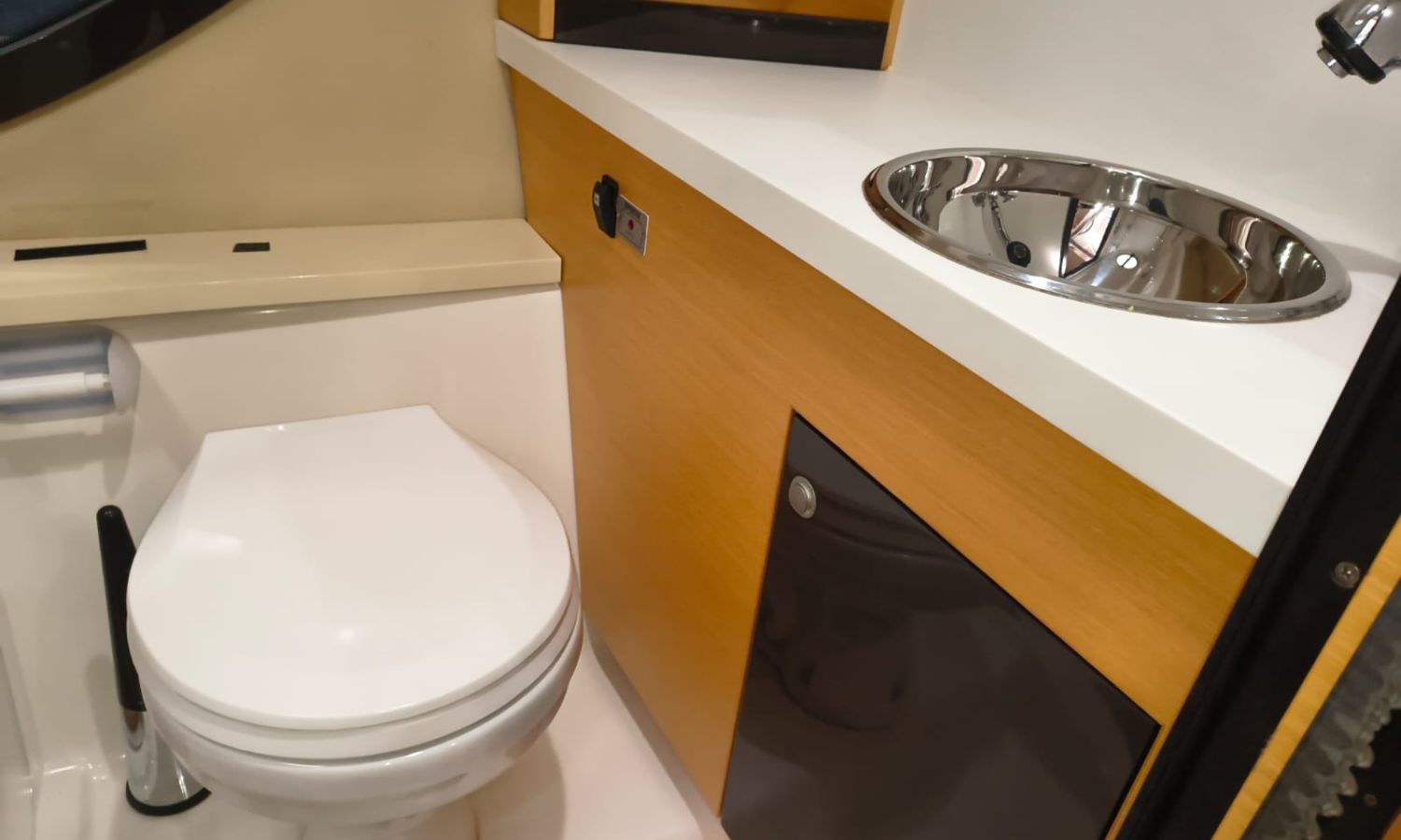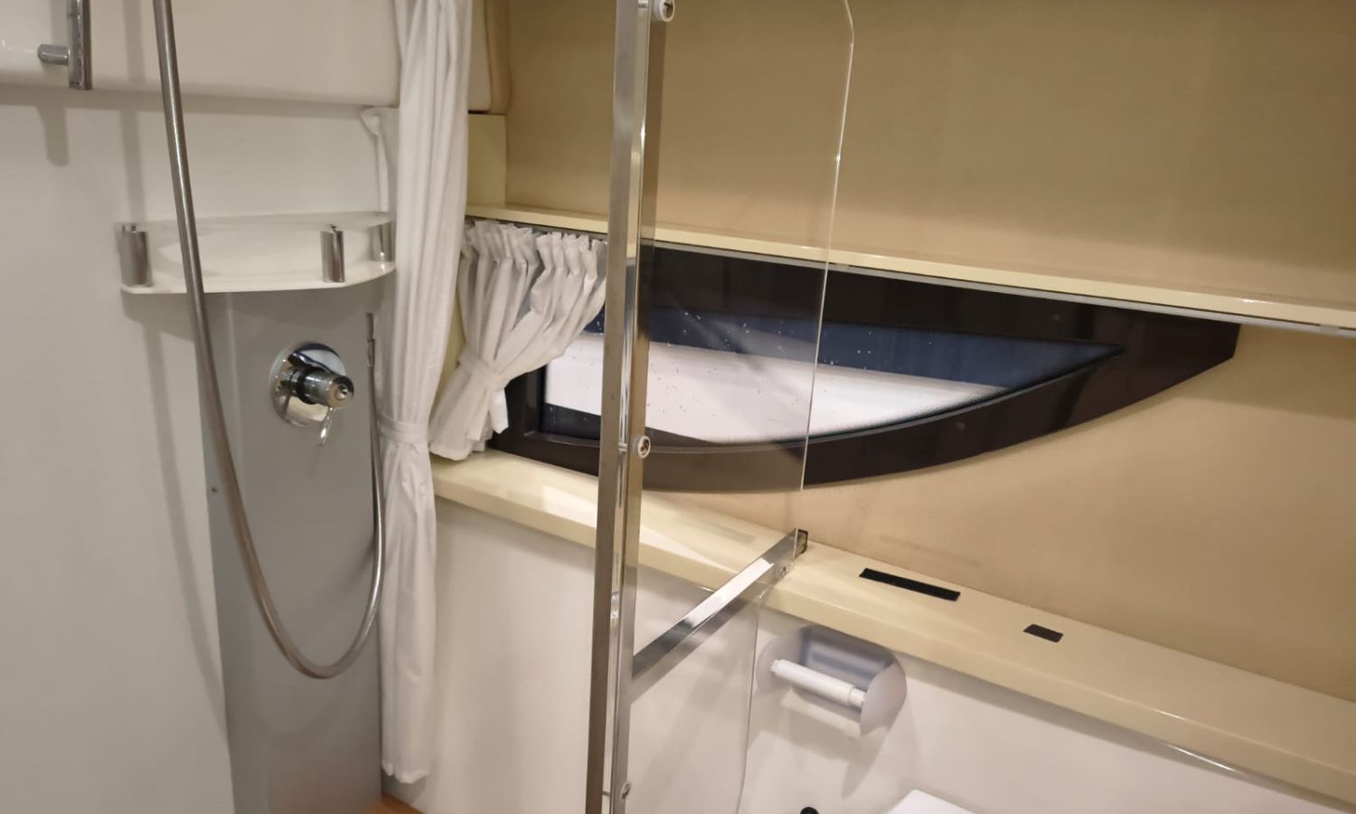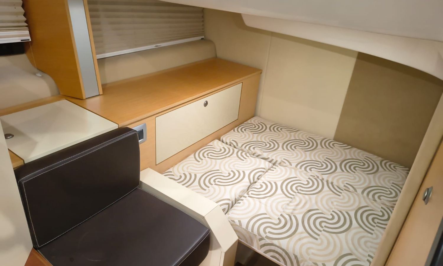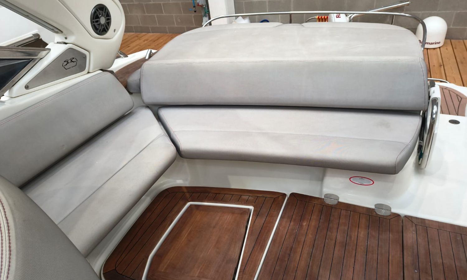 Electric windlass - Trim tabs - Bimini - Bow suncushions - Refrigerator 12 V in cockpit - Refrigerator 12 V in cabin - Transom shower - 220 V offshore power - Battery charger - Cabin table convertible into bed - Electric WC - Separate shower from bathroom - Gas stove - Microwave oven - Bow thruster - Electronic controls - GPS/Plotter/Depth finder - VHF - Audio equipment - Electric cockpit table - TV - AntifoulingBoat description