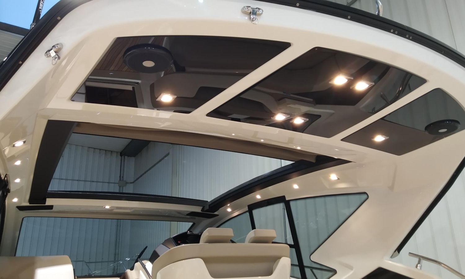 Waste water tank - Air conditioning system 16.000 BTU in cabins with heat pump - Air conditioning system 16.000 BTU cockpit cooling - Hood for complete stern closing - Bow thruster with automatic fire extinguisher - Cockpit refrigerator - GPS+ Chartplotter - 8 kW generator - Hydraulic gangway - Foldable raising platform in teak for driving position - Autopilot - Teak laid cockpit - VHF / DSC - Copy of CE certificate and declaration of conformity - Hard top colour lacquered - Preparation, launching, delivery and sea trial - Transport shipyard to Costa Brava.Boat description
