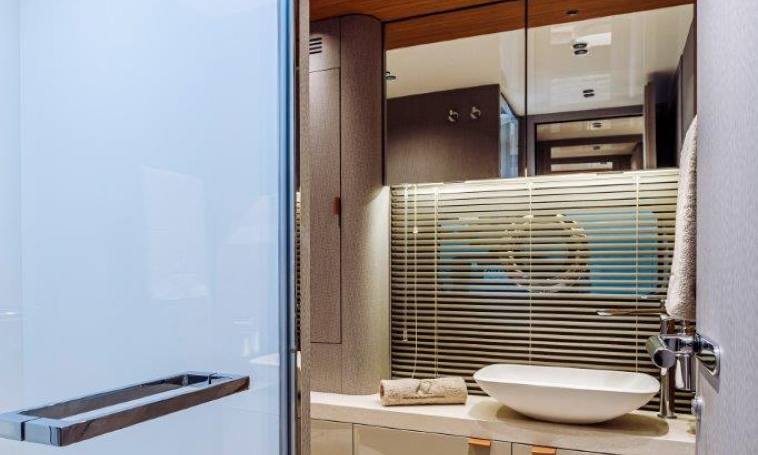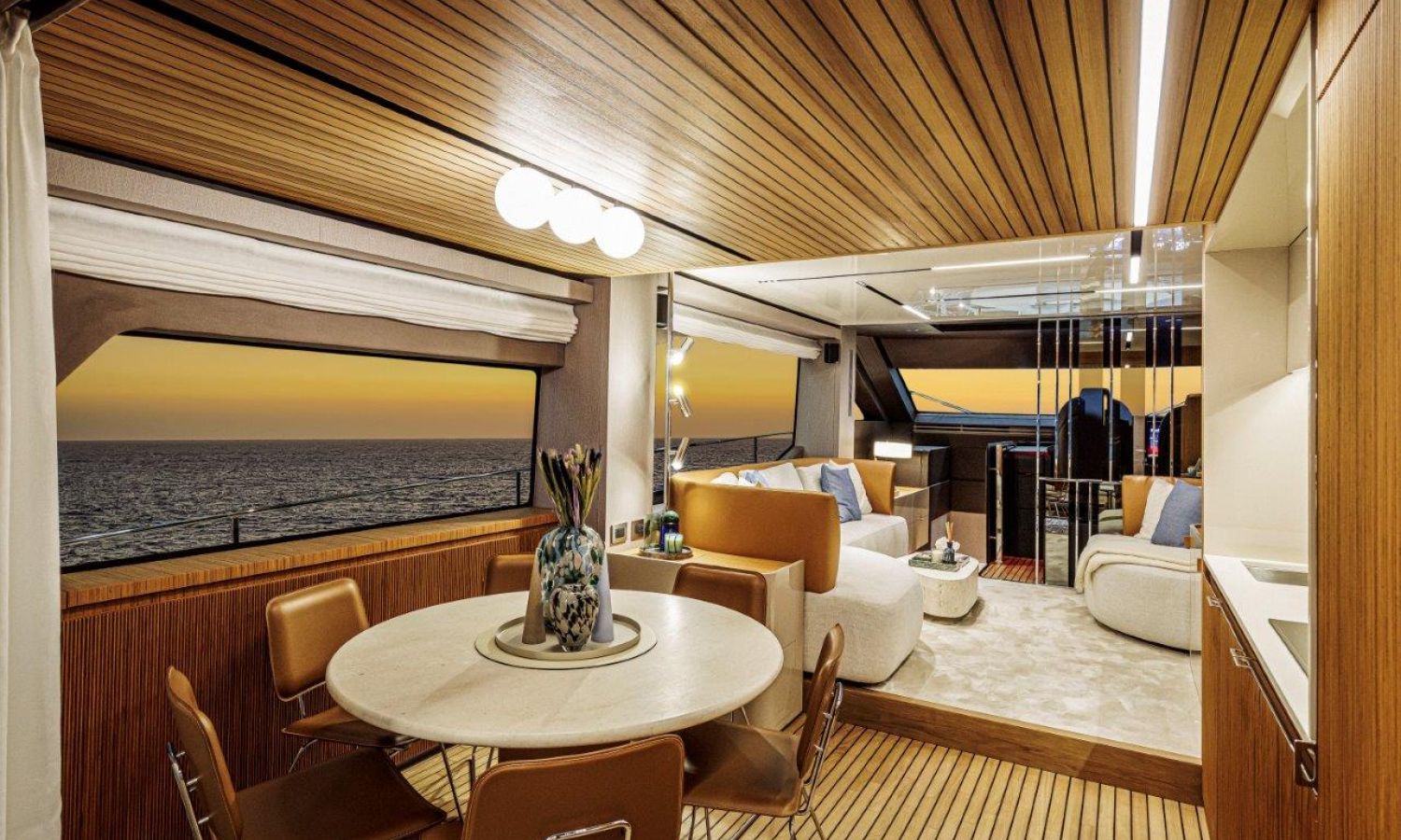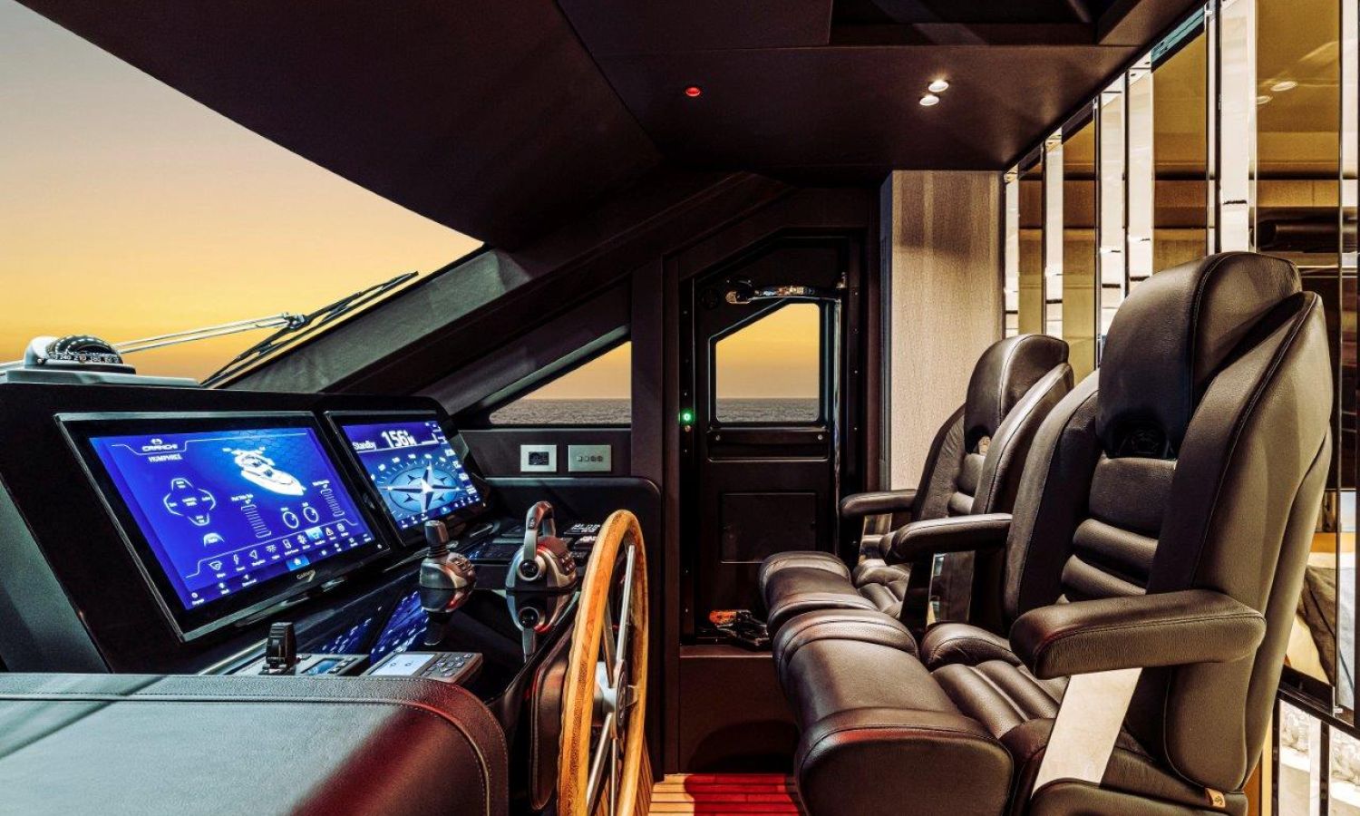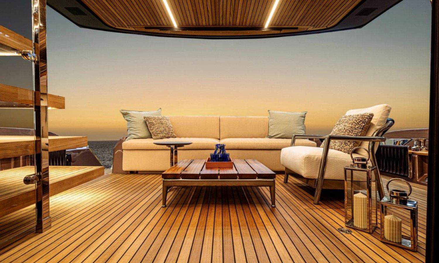 Impossible to look away from right from the very first glance: the design element which first affirms the character of the Sessantadue 62 is its vertical bow. A line which connects the sea and sky, and which accentuates the naval allure of the yacht. The waterline is lengthened, with the vessel benefiting in terms of audacity and muscularity, but without suffering in terms of harmony of forms, which is a distinctive element of Cranchi Yachts’ new flybridge models.