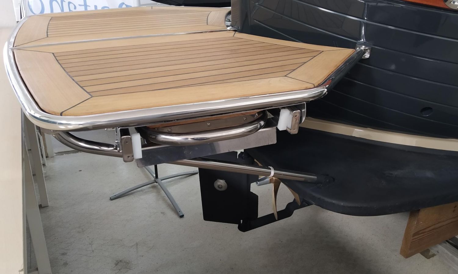 Exterior cushions - Bimini top - Stern shower with 110 l water tank - Stern platform with bathing ladder - Teak laid cockpit (only stern) - Electric anchor winch, anchor and chain - Bow thruster - Microperforated sun covers (1 side and 1 stern) - Preparation, launch and delivery with sea trial - Transport Shipyard-Costa Brava.Boat description