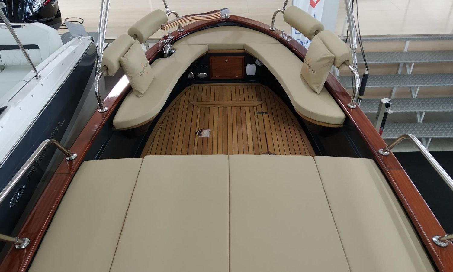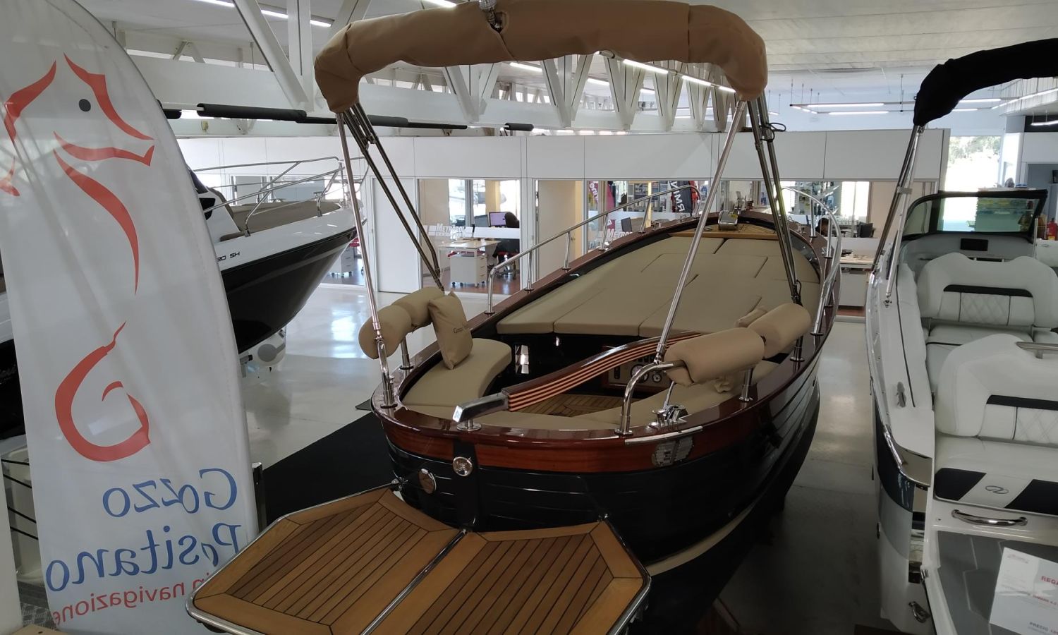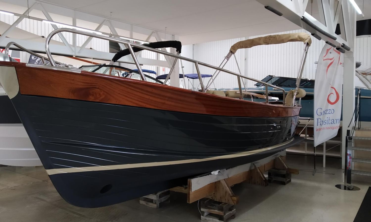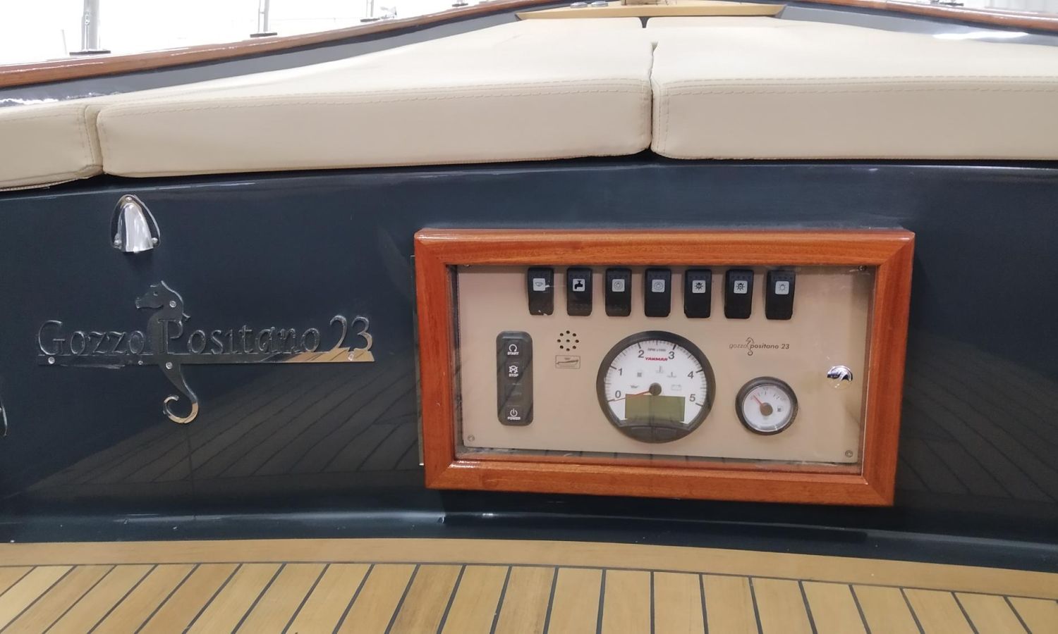Boat being produced. Delivery in February 2026. Stock photos, colours and equipment may not correspond exactly to the offered unit. Model Positano 23 of the Neapolitan shipyard Gozzo Positano of 7 meters in total length. Boat with comfortable bathing platform, spacious layout.AST-Nº 02
