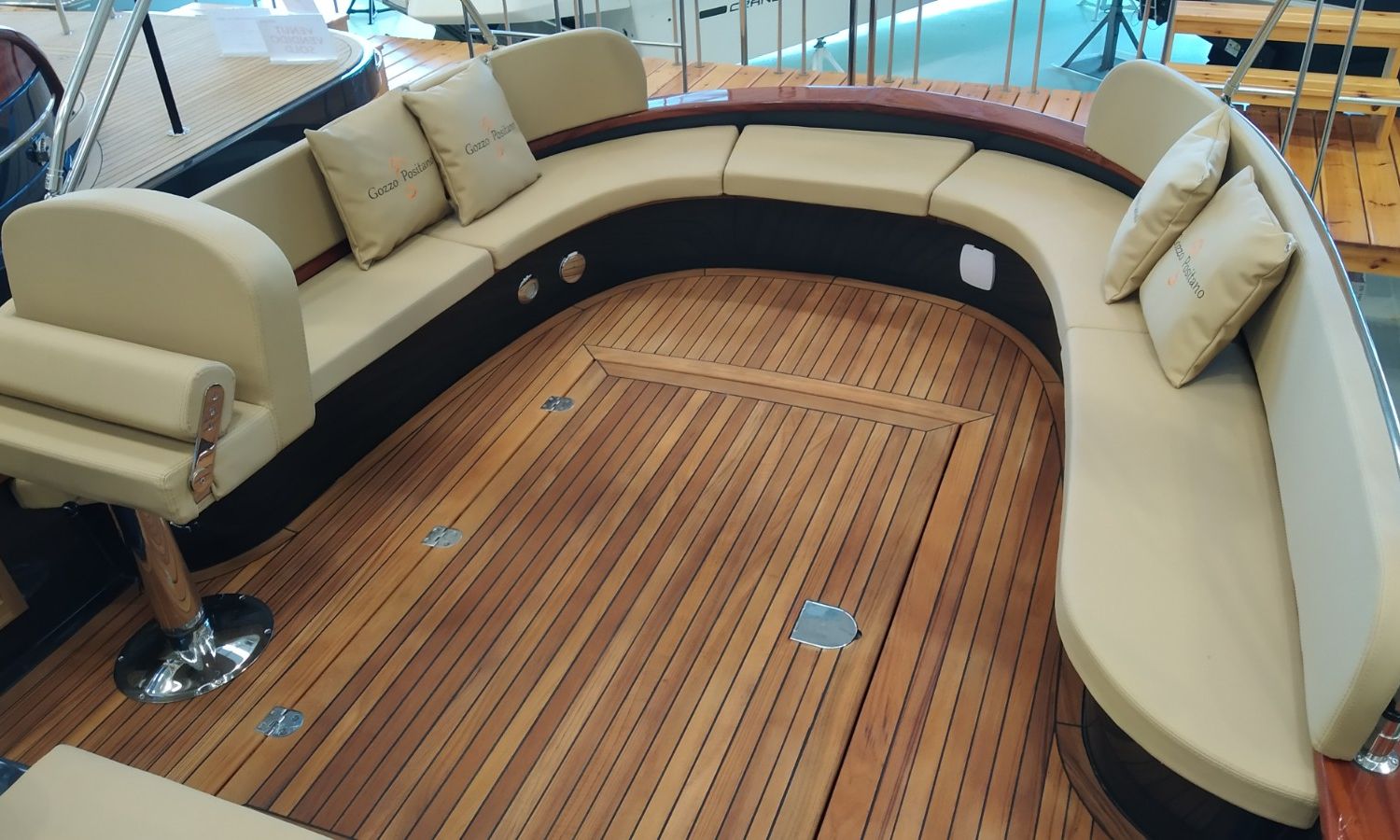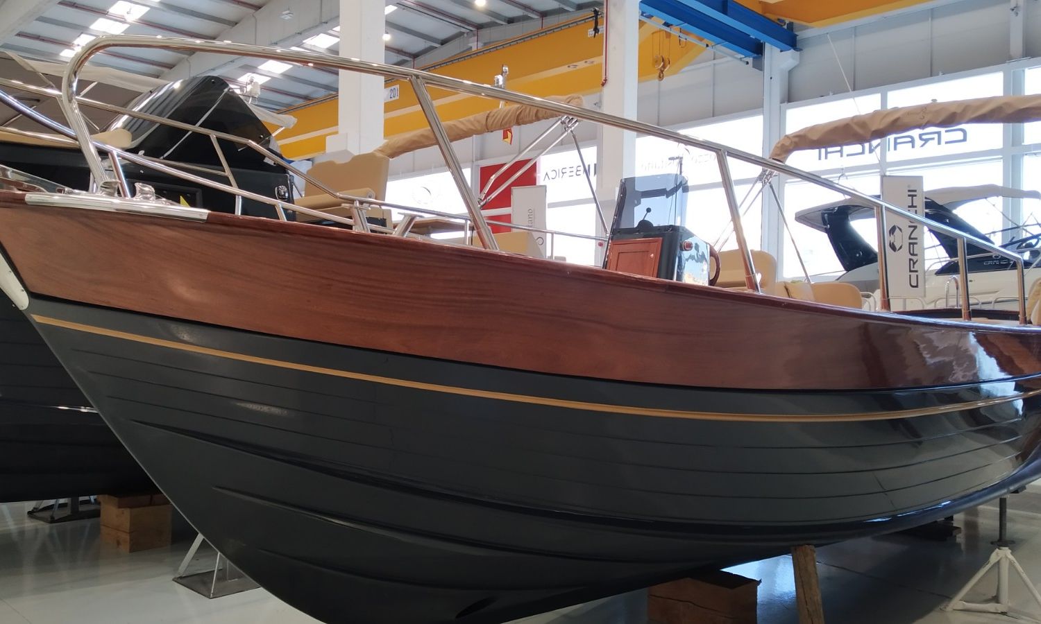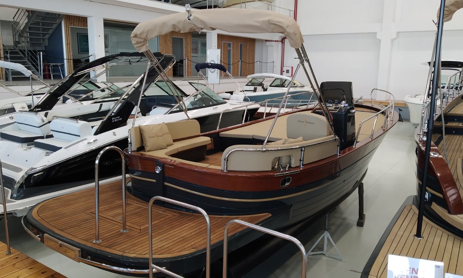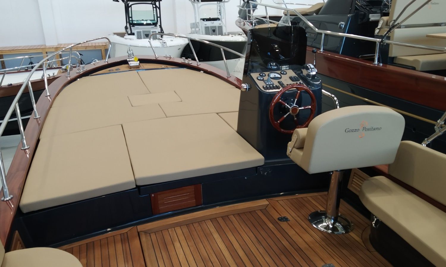 Boat being produced. Delivery February 2026. Stock photos, colours and equipment may not correspond exactly to the offered unit. Model Positano 27 of the Neapolitan shipyard Gozzo Positano of 8,22 meters in total length. Boat with big bathing platform and cabin.AST-Nº 02