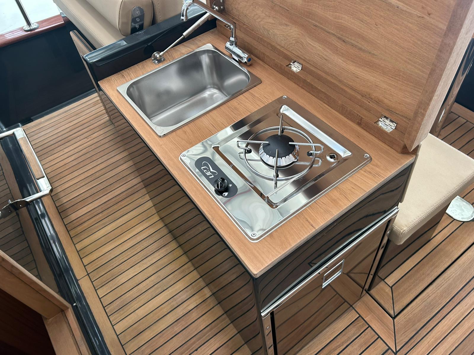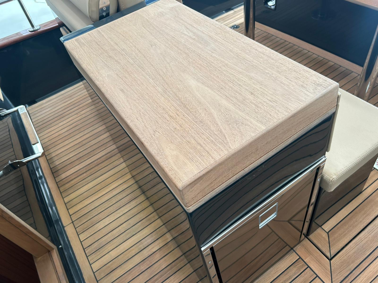 Parasol awning - Bathin platform - Stern shower - Stern sundeck - Port socket 220 v. - Battery charger - Cockpit table - Fridge 12 v. - Teak - Gps/Plotter/Deep finder - Electronic control - Bow thruster - Audio system - Compass - Antifouling.Boat description