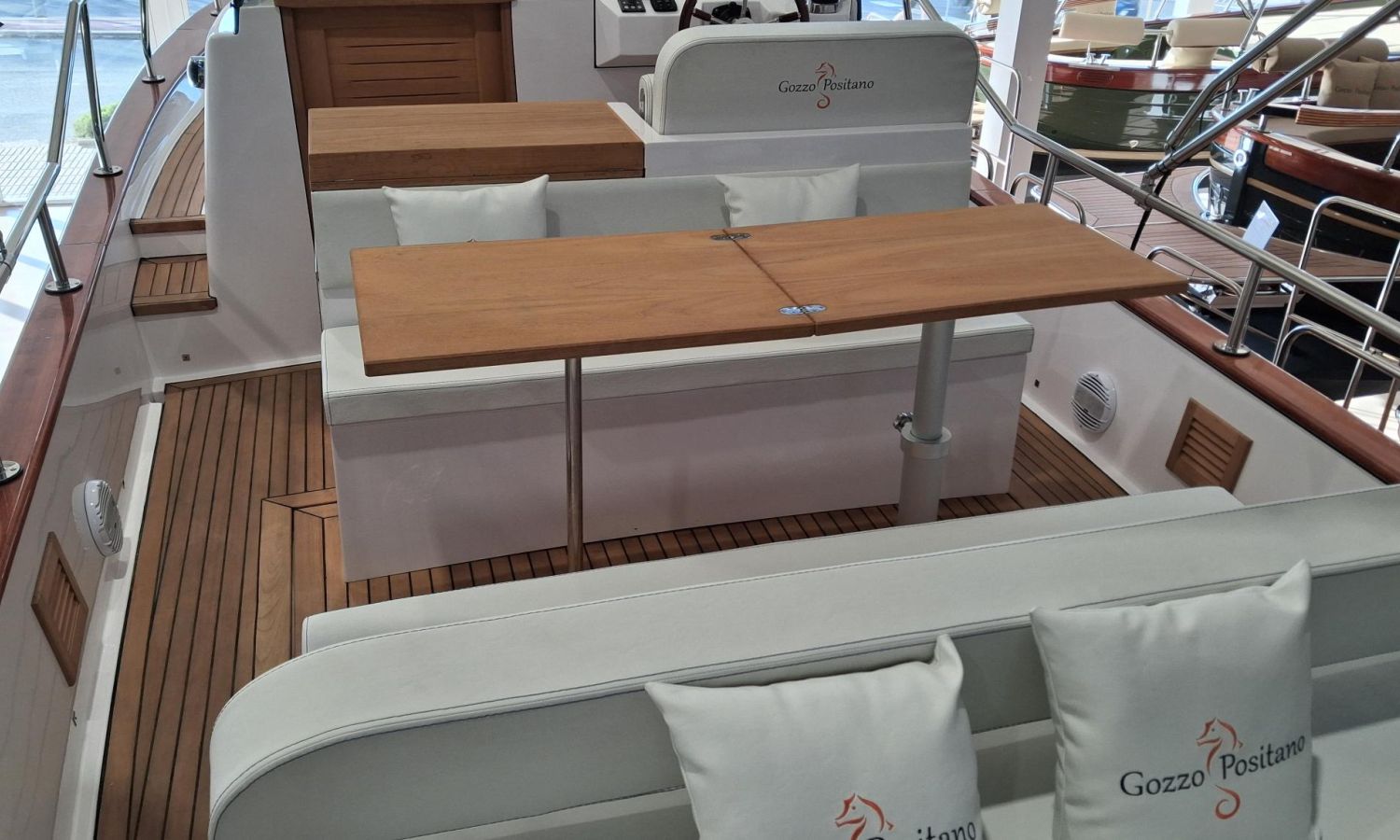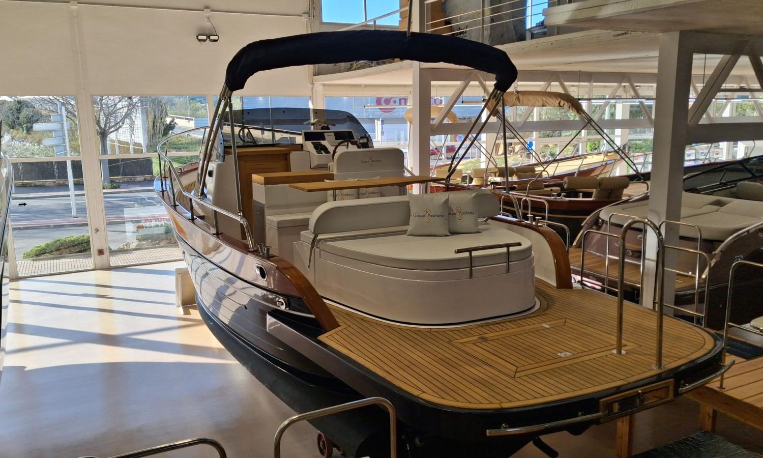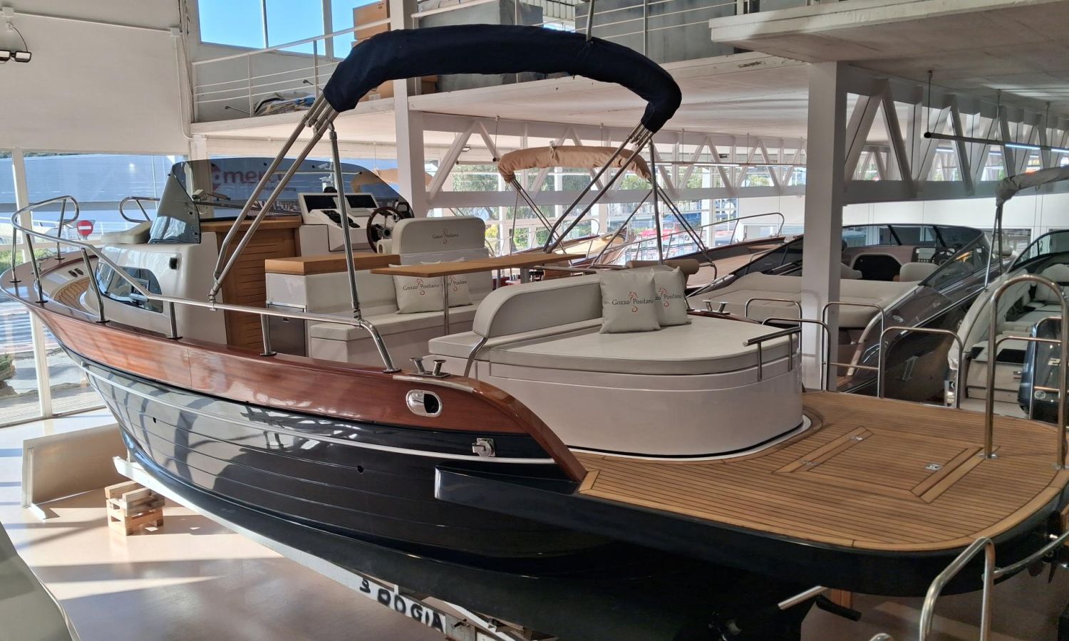 Boat in stock. Immediate delivery. Stock photos, some accessories may not correspond to the offered unit. Model Positano 28 Sole of the Neapolitan shipyard Gozzo Positano of 8,60 meters in total length. Boat with big bathing platform and spacious layout.PAL-Nº N2803