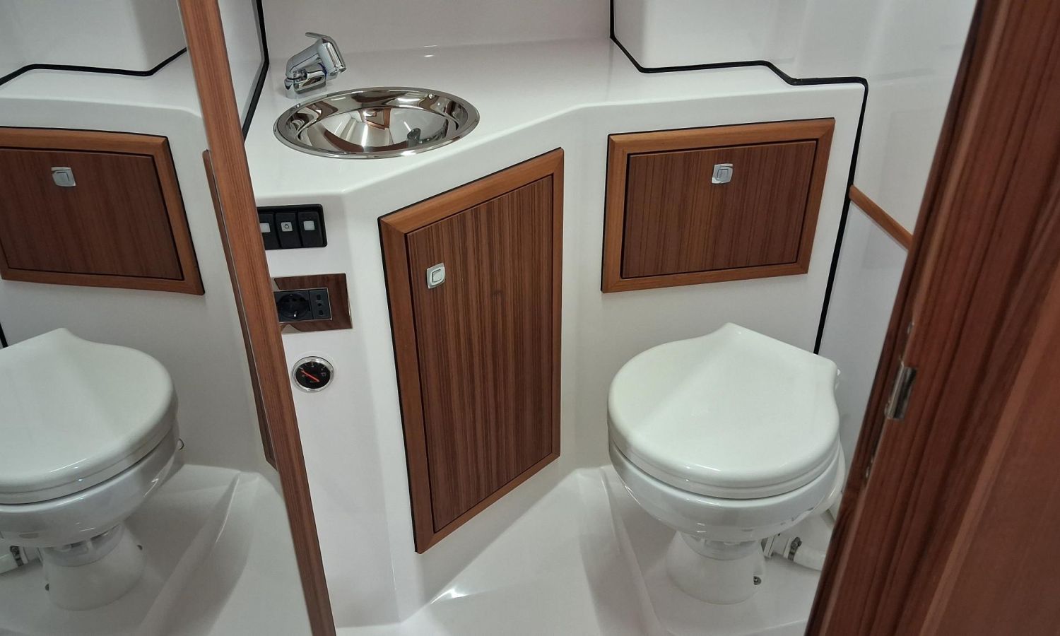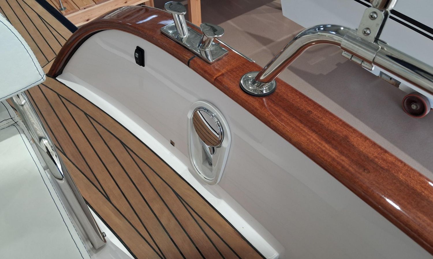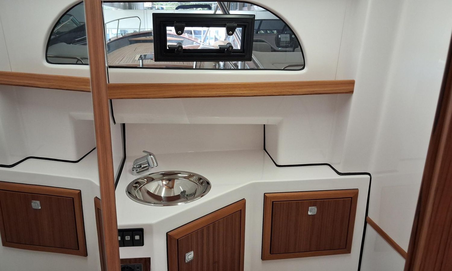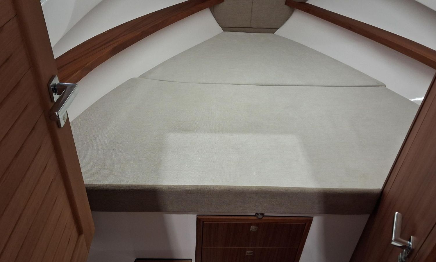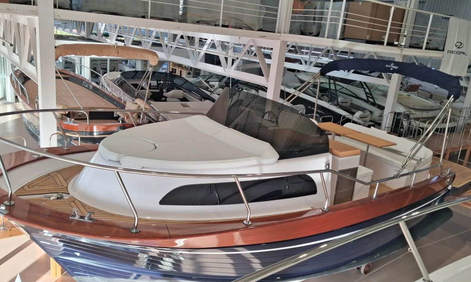 Bimini top with SS arch - Electric anchor winch, anchor and chain - Cockpit refrigerator - Cockpit table - Exterior kitchen and sink - Bow thruster - Exterior deck, seats and aft sunbathing cushions - Console cover - Teak laid stern platform with bathing ladder - Battery charger and shore power 220 V - Stereo system and speakers - 2 microperforated bimini top upgrade (1 back and 1 side) - GPS Garmin 7"- Cockpit led lighting - Preparation, launching and delivery with sea trial - Transport shipyard to Costa Brava.Boat description