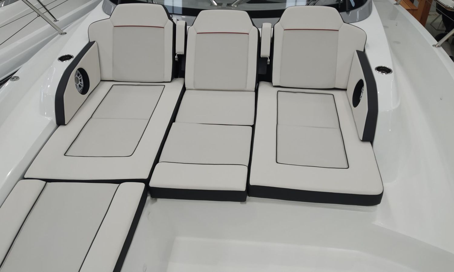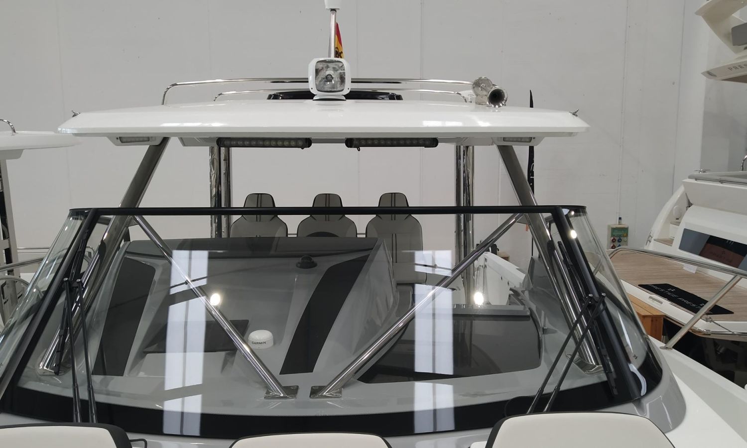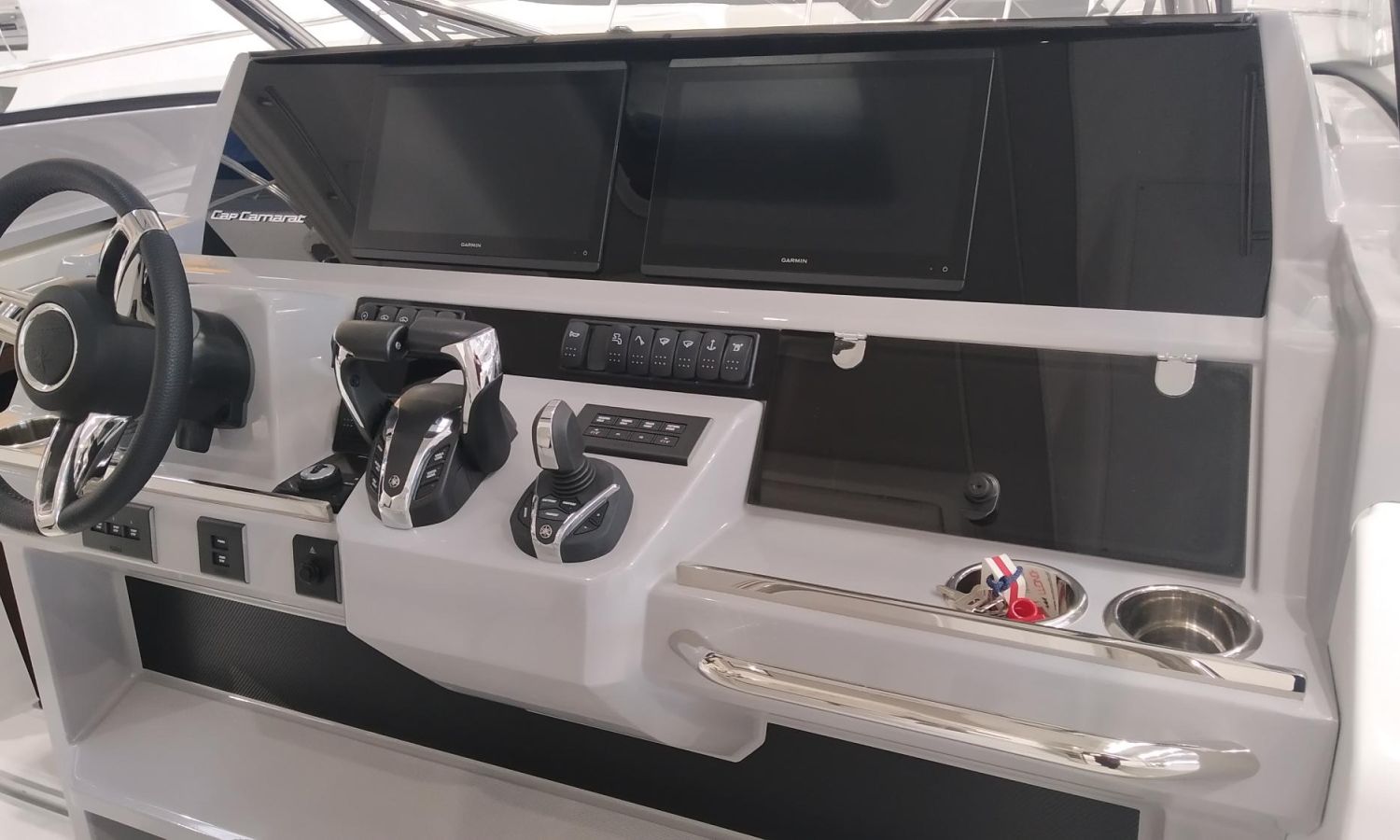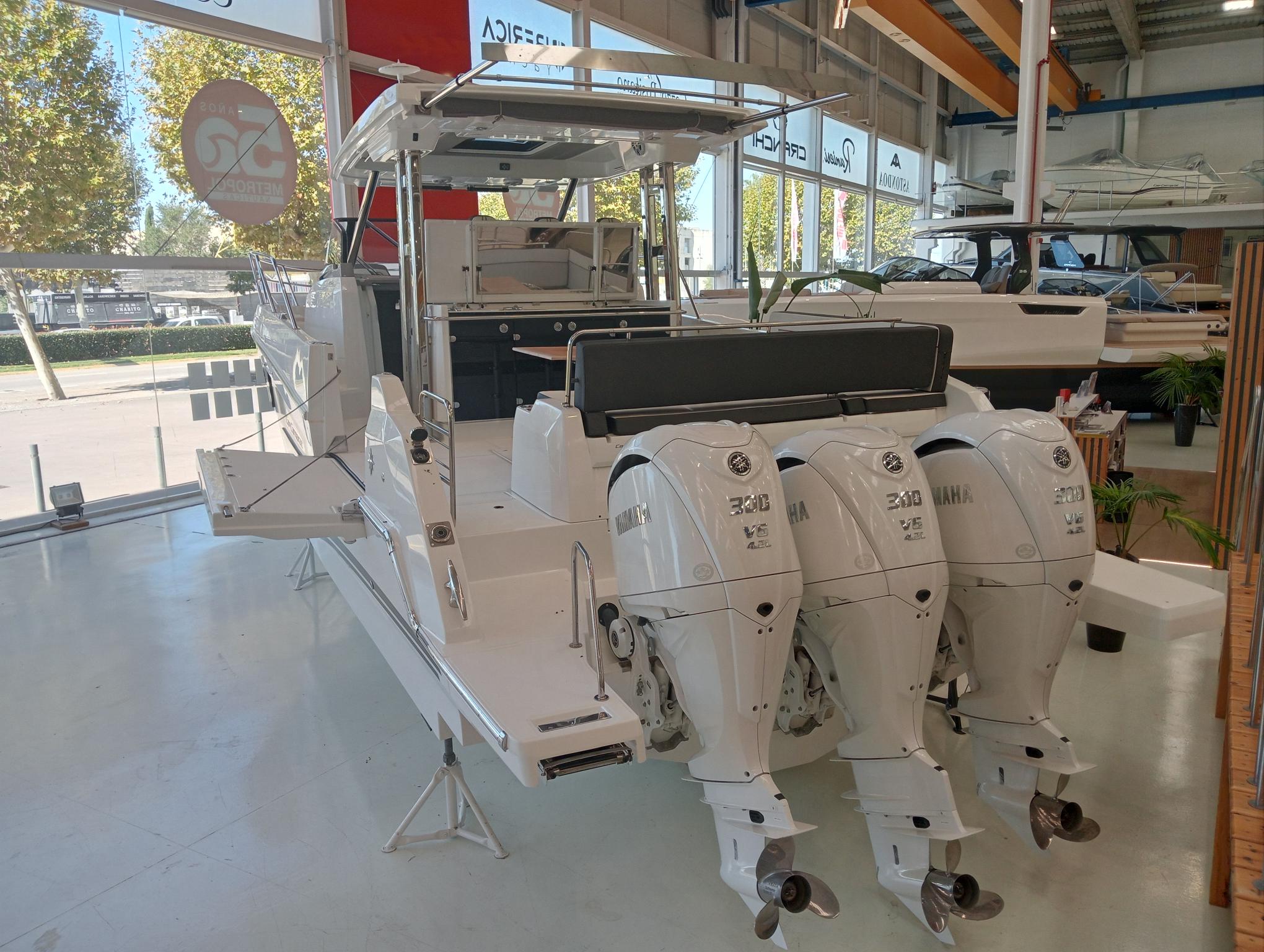 TVANTENNA, PREMIUM AUDIO PACK FOR BOATWITH HARD TOP, PREFITFOR TV INSALOON, PREFITFOR TV INCOCKPIT, UPHOLSTERY INSALOONPVC MARLINPUREWHITE, SET OFPROTECTIVE COVERS, HARD TOPWITH LOWWINDSCREEN, DARK SMOKESLIDING SUNPROTECTIONELECTRIC SURESHADE", DARK SMOKESUNSHADEFOR FRONT COCKPITSUNWORKER, STAINLESSSTEEL BOWPROTECTOR, AIS800 TRANSCEIVER GARMIN, ELECTRONIC PACK GARMINUPGRADED 8416, TRIM LEVELPREMIERE, BOWTHRUSTER, DECKWATER INLET, SKI MAST, 2 ROD HOLDERS, ELECTRIC DECKWASH PUMP, INVERTER 12/230V 2000VA50HZ, 2FRONT HEADLIGHTS ONTHE ROOF(2 LED LIGHT BARS), BOWPLATFORMWITH LADDER, COCKPIT GRILL 220V, ICE MAKER 220V/50HZ, TEAK COCKPITTABLEWITH TELESCOPIC LEGSFOR SUNBATH SET UP, AUTOMATIC TRIM TABSZIPWAKE, STORAGE RACK ONTHE ROOF, REMOVABLESWIM LADDER FOR LATERALTERRACE, 2WINDSCREENWIPERSANDWASHER Mandatory for the hardtopversion with high windscreen. ", FRONTSUNDECK, COCKPIT UPHOLSTERY SYLVERTEX ICE DIAMANTE CARBON, DOUBLE BERTH INSALOONIN MARILPUREWITHE, 2ND COCKPITFRIDGE49L, CERAMIC HOB FOR INTERIOR GALLEY 220V, FILLING CUSHIONFORAFT CABINKING SIZE BED, PRE-WIRING FOR MICROWAVE OVEN, PRE-RIGGING YAMAHA 3X 300 SBW ELECTRIC ENGINE, UPGRADE YAMAHAJOYSTICK HELMMASTER 3X300 SBW, SHIPYARD-COAST-BRAVA TRANSPORT, INSTALLATION MOTOR INCLUDED.
