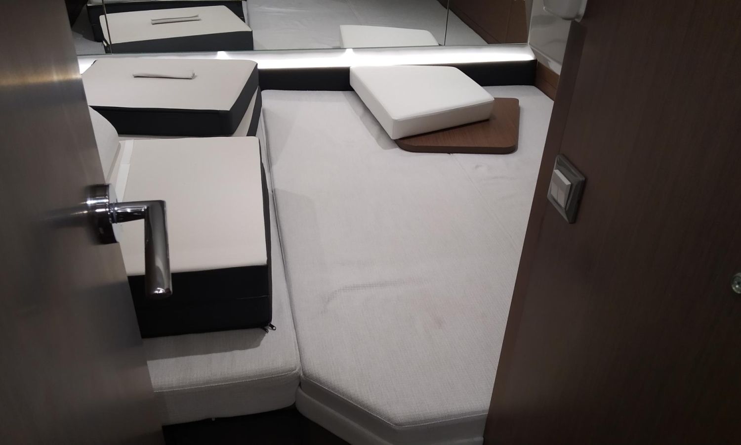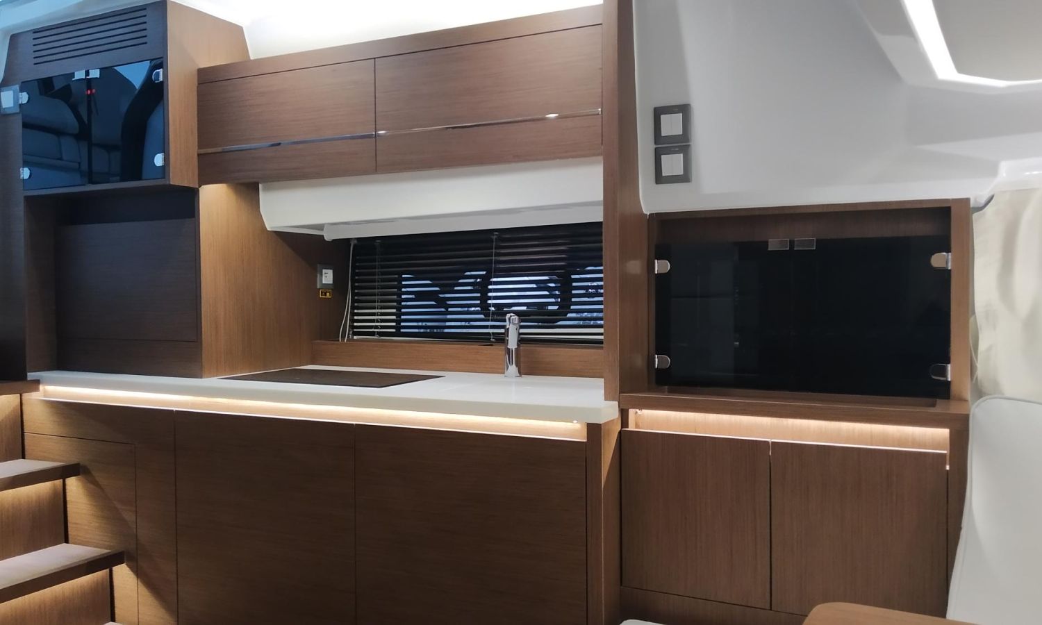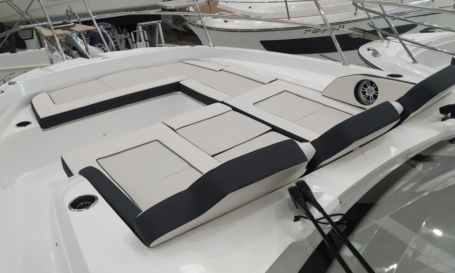 TVANTENNA, PREMIUM AUDIO PACK FOR BOATWITH HARD TOP, PREFITFOR TV INSALOON, PREFITFOR TV INCOCKPIT, UPHOLSTERY INSALOONPVC MARLINPUREWHITE, SET OFPROTECTIVE COVERS, HARD TOPWITH LOWWINDSCREEN, DARK SMOKESLIDING SUNPROTECTIONELECTRIC SURESHADE", DARK SMOKESUNSHADEFOR FRONT COCKPITSUNWORKER, STAINLESSSTEEL BOWPROTECTOR, AIS800 TRANSCEIVER GARMIN, ELECTRONIC PACK GARMINUPGRADED 8416, TRIM LEVELPREMIERE, BOWTHRUSTER, DECKWATER INLET, SKI MAST, 2 ROD HOLDERS, ELECTRIC DECKWASH PUMP, INVERTER 12/230V 2000VA50HZ, 2FRONT HEADLIGHTS ONTHE ROOF(2 LED LIGHT BARS), BOWPLATFORMWITH LADDER, COCKPIT GRILL 220V, ICE MAKER 220V/50HZ, TEAK COCKPITTABLEWITH TELESCOPIC LEGSFOR SUNBATH SET UP, AUTOMATIC TRIM TABSZIPWAKE, STORAGE RACK ONTHE ROOF, REMOVABLESWIM LADDER FOR LATERALTERRACE, 2WINDSCREENWIPERSANDWASHER Mandatory for the hardtopversion with high windscreen. ", FRONTSUNDECK, COCKPIT UPHOLSTERY SYLVERTEX ICE DIAMANTE CARBON, DOUBLE BERTH INSALOONIN MARILPUREWITHE, 2ND COCKPITFRIDGE49L, CERAMIC HOB FOR INTERIOR GALLEY 220V, FILLING CUSHIONFORAFT CABINKING SIZE BED, PRE-WIRING FOR MICROWAVE OVEN, PRE-RIGGING YAMAHA 3X 300 SBW ELECTRIC ENGINE, UPGRADE YAMAHAJOYSTICK HELMMASTER 3X300 SBW, SHIPYARD-COAST-BRAVA TRANSPORT, INSTALLATION MOTOR INCLUDED.