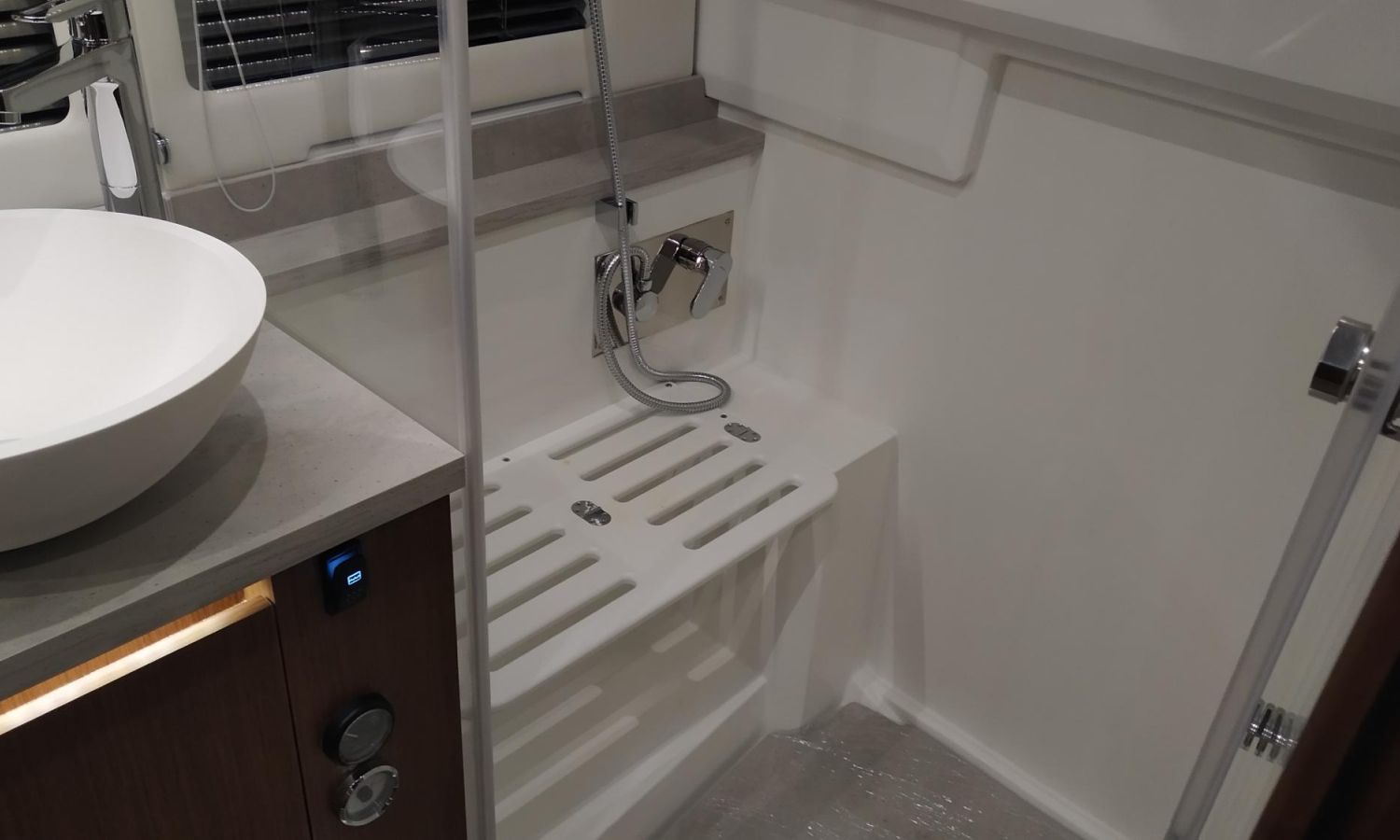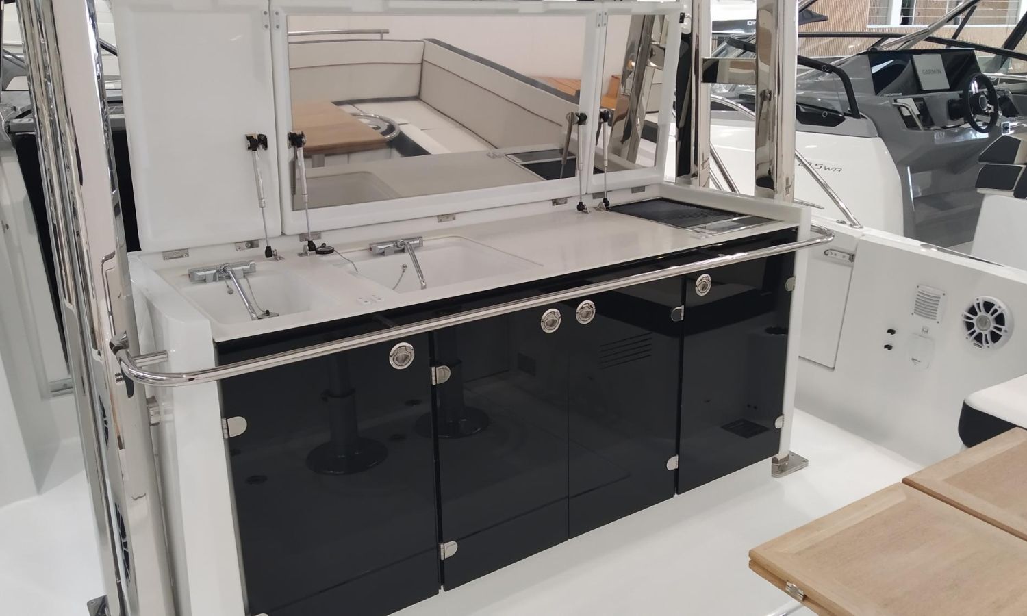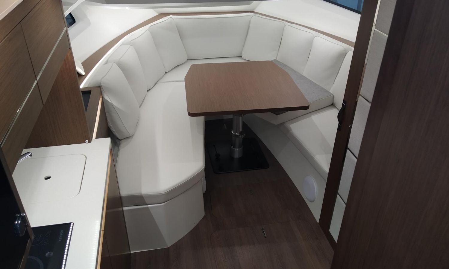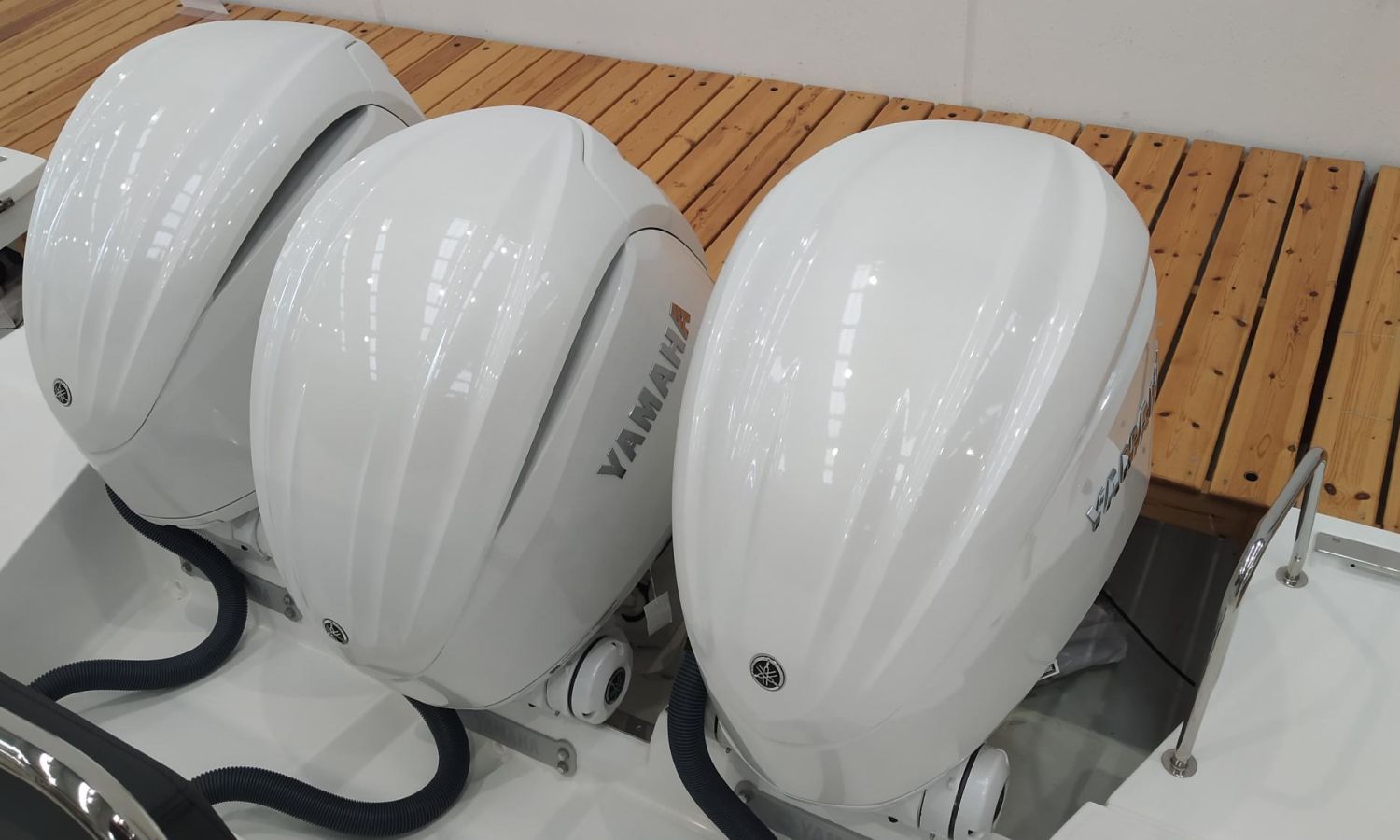 TVANTENNA, PREMIUM AUDIO PACK FOR BOATWITH HARD TOP, PREFITFOR TV INSALOON, PREFITFOR TV INCOCKPIT, UPHOLSTERY INSALOONPVC MARLINPUREWHITE, SET OFPROTECTIVE COVERS, HARD TOPWITH LOWWINDSCREEN, DARK SMOKESLIDING SUNPROTECTIONELECTRIC SURESHADE", DARK SMOKESUNSHADEFOR FRONT COCKPITSUNWORKER, STAINLESSSTEEL BOWPROTECTOR, AIS800 TRANSCEIVER GARMIN, ELECTRONIC PACK GARMINUPGRADED 8416, TRIM LEVELPREMIERE, BOWTHRUSTER, DECKWATER INLET, SKI MAST, 2 ROD HOLDERS, ELECTRIC DECKWASH PUMP, INVERTER 12/230V 2000VA50HZ, 2FRONT HEADLIGHTS ONTHE ROOF(2 LED LIGHT BARS), BOWPLATFORMWITH LADDER, COCKPIT GRILL 220V, ICE MAKER 220V/50HZ, TEAK COCKPITTABLEWITH TELESCOPIC LEGSFOR SUNBATH SET UP, AUTOMATIC TRIM TABSZIPWAKE, STORAGE RACK ONTHE ROOF, REMOVABLESWIM LADDER FOR LATERALTERRACE, 2WINDSCREENWIPERSANDWASHER Mandatory for the hardtopversion with high windscreen. ", FRONTSUNDECK, COCKPIT UPHOLSTERY SYLVERTEX ICE DIAMANTE CARBON, DOUBLE BERTH INSALOONIN MARILPUREWITHE, 2ND COCKPITFRIDGE49L, CERAMIC HOB FOR INTERIOR GALLEY 220V, FILLING CUSHIONFORAFT CABINKING SIZE BED, PRE-WIRING FOR MICROWAVE OVEN, PRE-RIGGING YAMAHA 3X 300 SBW ELECTRIC ENGINE, UPGRADE YAMAHAJOYSTICK HELMMASTER 3X300 SBW, SHIPYARD-COAST-BRAVA TRANSPORT, INSTALLATION MOTOR INCLUDED.