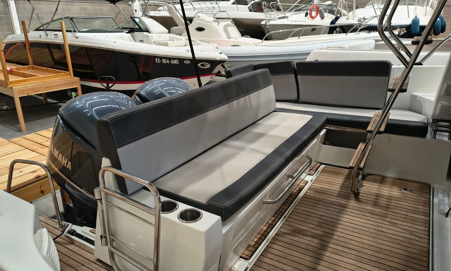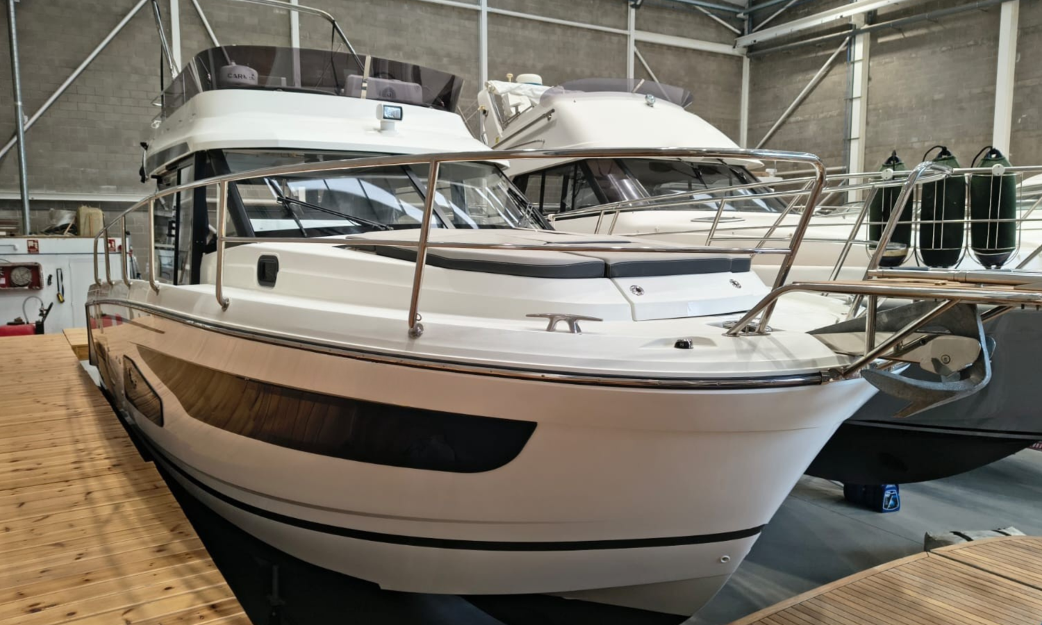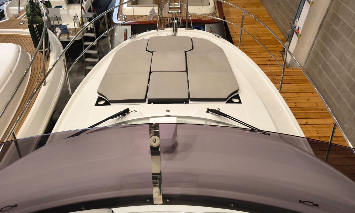 Seakeeper 2 - Equipment level Premiere - Audio pack Fusion - Sun-bath awning in the bathtub - Bimini on the Flyng Bridge - Electronic pack Garmin - VHF radio - Radar - Autopilot - Comfort pack Fly version - Mooring kit - Grounding kit - Deck projector - Bow thruster with double control (Fly and Helm) - Bow ladder with wooden platform - Table on the Fly + cushion for Chaise Lounge - Sun bath on Fly - Sun bath on bow with adjustable backs - Electric flaps - Tables in bathtub - Mattress for 3 cabin - Double bed complement in the living room - High storage cupboard in the kitchen - High storage cupboard in the living room - High storage cupboards in the bow cabin - Teak platforms and bathtub - Teak fore deck - Antifoulig paint.Boat description