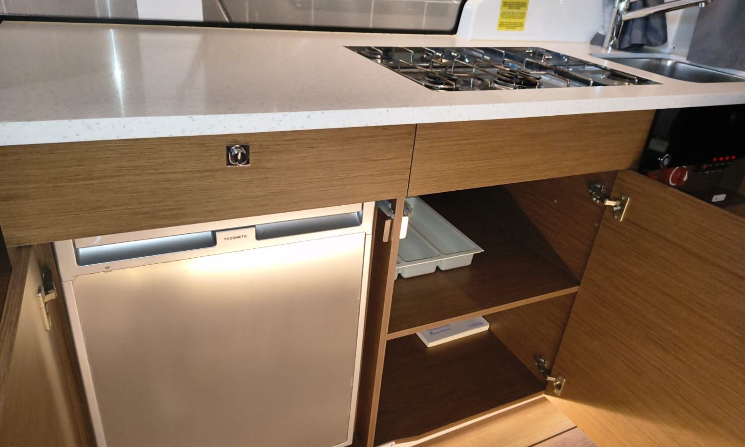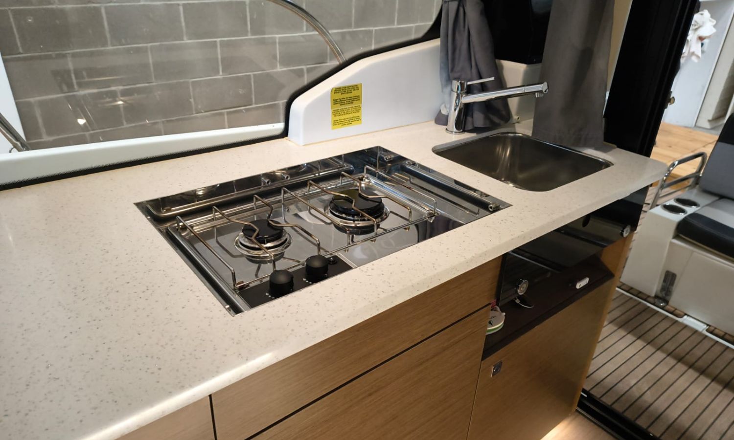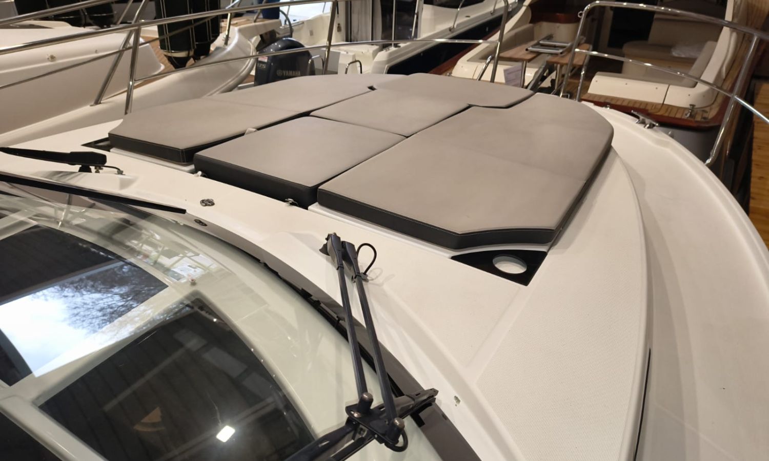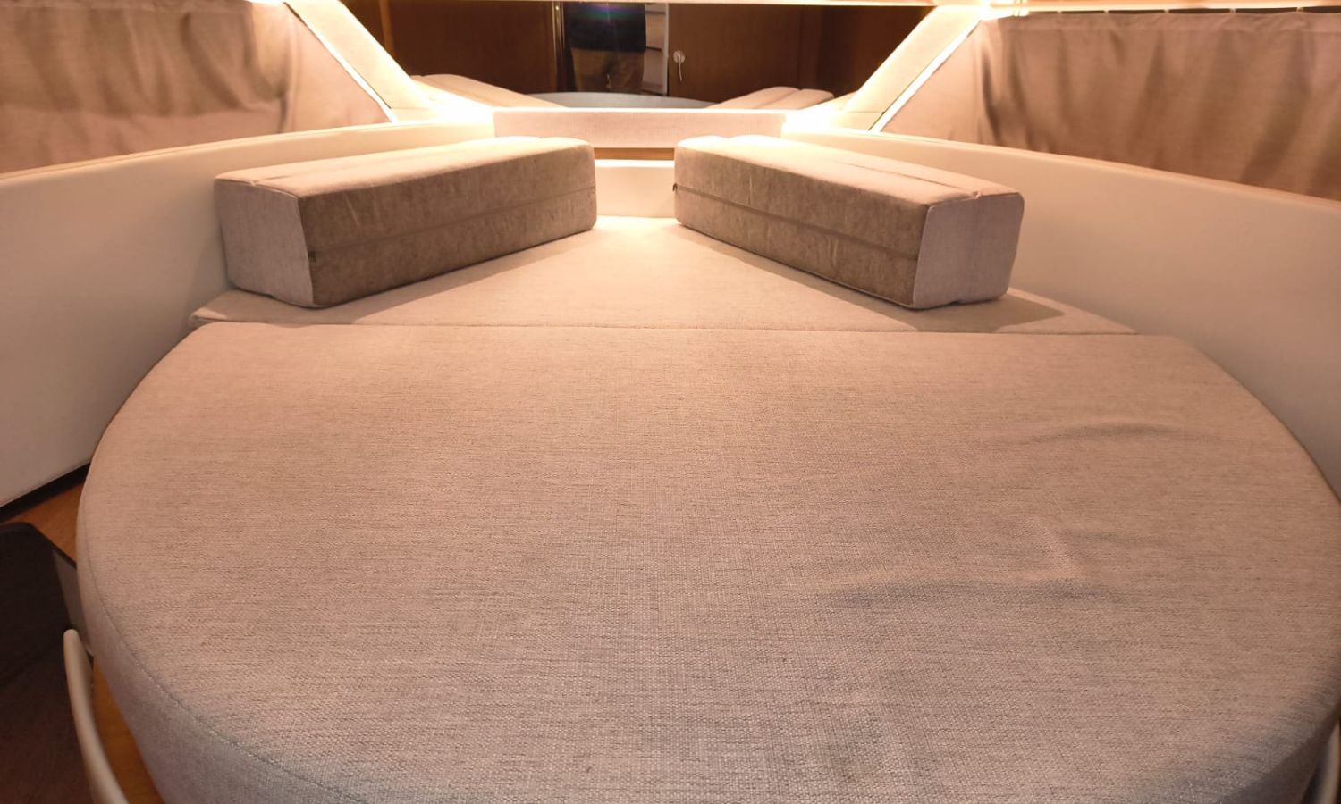 Seakeeper 2 - Equipment level Premiere - Audio pack Fusion - Sun-bath awning in the bathtub - Bimini on the Flyng Bridge - Electronic pack Garmin - VHF radio - Radar - Autopilot - Comfort pack Fly version - Mooring kit - Grounding kit - Deck projector - Bow thruster with double control (Fly and Helm) - Bow ladder with wooden platform - Table on the Fly + cushion for Chaise Lounge - Sun bath on Fly - Sun bath on bow with adjustable backs - Electric flaps - Tables in bathtub - Mattress for 3 cabin - Double bed complement in the living room - High storage cupboard in the kitchen - High storage cupboard in the living room - High storage cupboards in the bow cabin - Teak platforms and bathtub - Teak fore deck - Antifoulig paint.Boat description