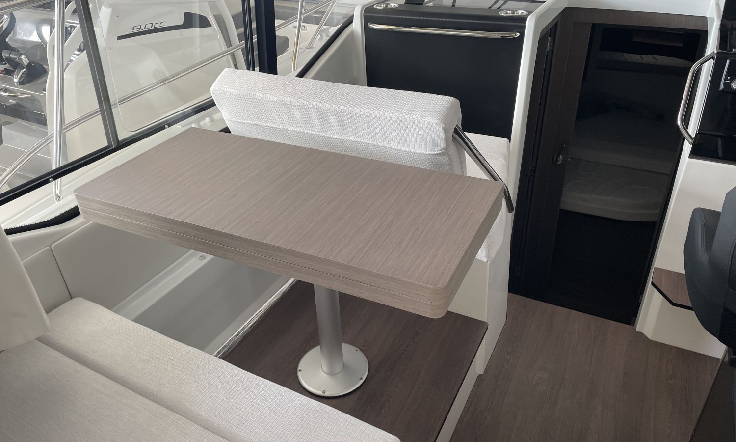 Equipment level Premiere - Comfort Pack - Mooring Kit - Mooring Kit - Fusion RA210 Audio Pack - Interior Curtains - Jumbo Pure Lounge Upholstery - Garmin Enhanced Electronic Pack - Garmin 215 VHF Radio - U-shaped bathtub lounge with table that can be transformed into a solarium - Double bed complement in the living room - Ladder for chest on bath floor - Sun deck cushions bow with Lounge Chairs - Extra sun deck XXL - Zipwake automatic flaps - Luggage rack in timonera roof - High storage cabinets in the bow cabin - High stowage cabinets in the kitchen - Claxon - Bow ladder with wooden platform - Swivel pilot seat - Deck projector - Pre-Rigging Yamaha 2x 250 SBW electric engines - Transport from the shipyard- Costa-Brava - Preparation, assembly, launching and delivery with tests at sea included - Antifouling paint.Boat description