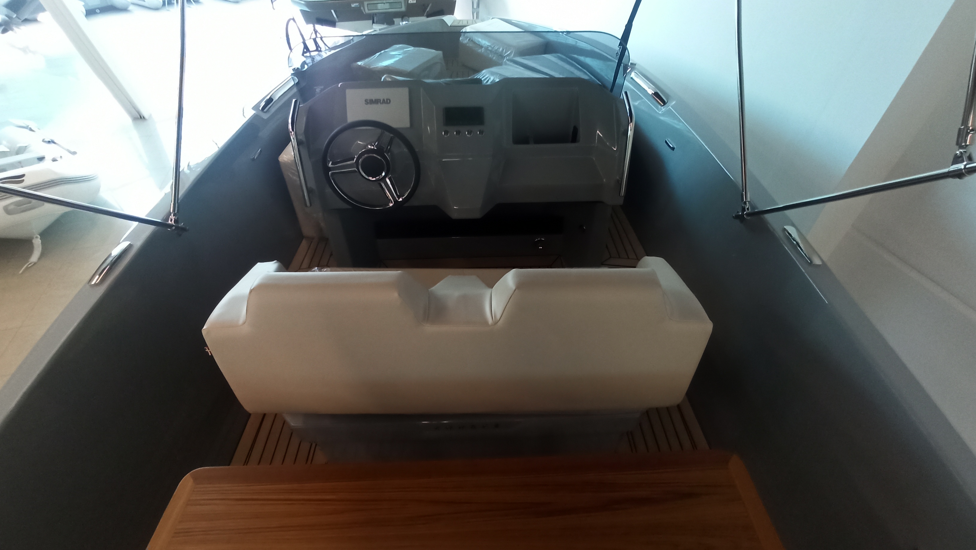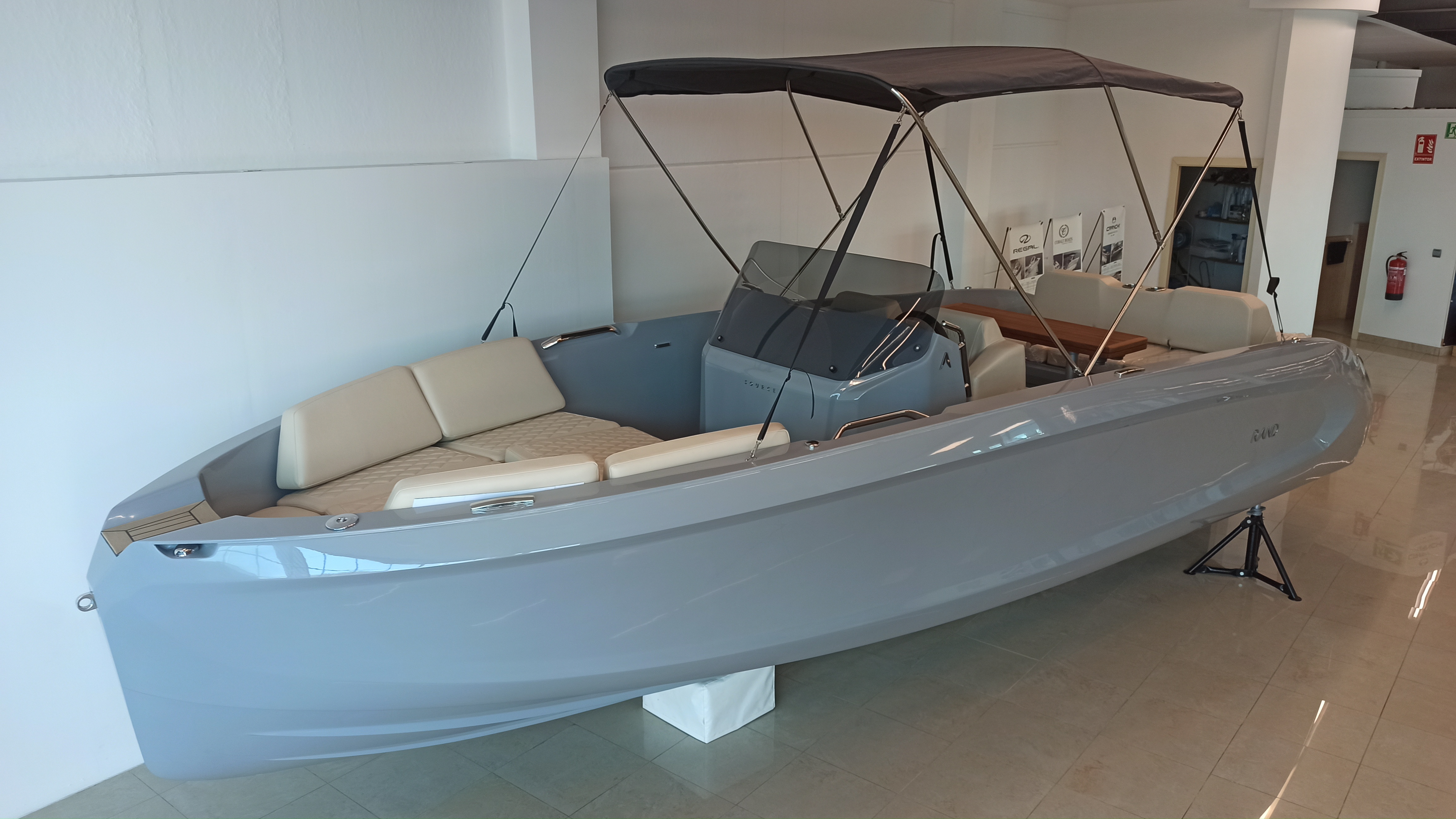 HULL COLOUR TITANIUM - DIAMOND CREEM UPHOLSTERY - WATER SPORTS HOOK - 4 STAINLESS STEEL CUP HOLDERS ON COCKPIT TABLE - STERN SHOWER - FENDERS + BRACKETS - LED LIGHTING IN COCKPIT - PREMIUM BATHING LADDER - BOW SUNDECK - BATTERY CHARGER - SUNDECK IN COCKPIT - FRIDGE IN BOW HATCH - BIMINI TOP - AUTOMATIC FLAPS-,SHIPYARD TRANSPORT - COSTA-BRAVA - MOTOR INSTALLATION + PRE-RIGGING -Boat description