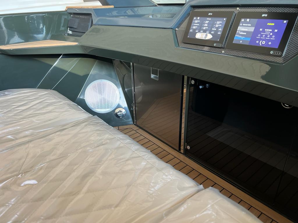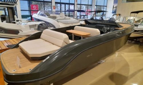 BLACK OLIVE (RAL 6015) COLOUR HULL - DIAMOND LEATHER UPHOLSTERY CREAM (BG 3151) - ELECTRIC ANCHOR WINDLASS + ANCHORAGE KIT - TWO 7" RAYMARINE SCREENS ON DASHBOARD WITH DOMOTIC SYSTEM - SKI HOOK - COASTER - COCKPIT SHOWER - LED LIGHTS IN COCKPIT - FENDERS - PREMIUM BATHING LADDER - LUXE FRIDGE - HAIMA AWNING - ANCHOR AWNING - BOW THRUSTER - B&W AUDIO SYSTEM - AUTOMATIC FIRE EXTINGUISHER - TEAK IN BATH AND BATH PLATFORM - SHIPYARD-COSTA-BRAVA TRANSPORT.Boat description