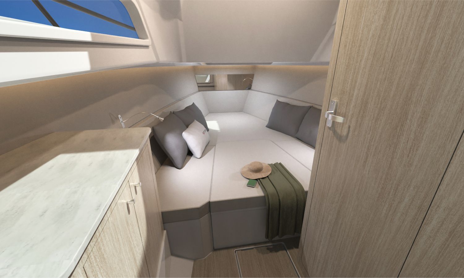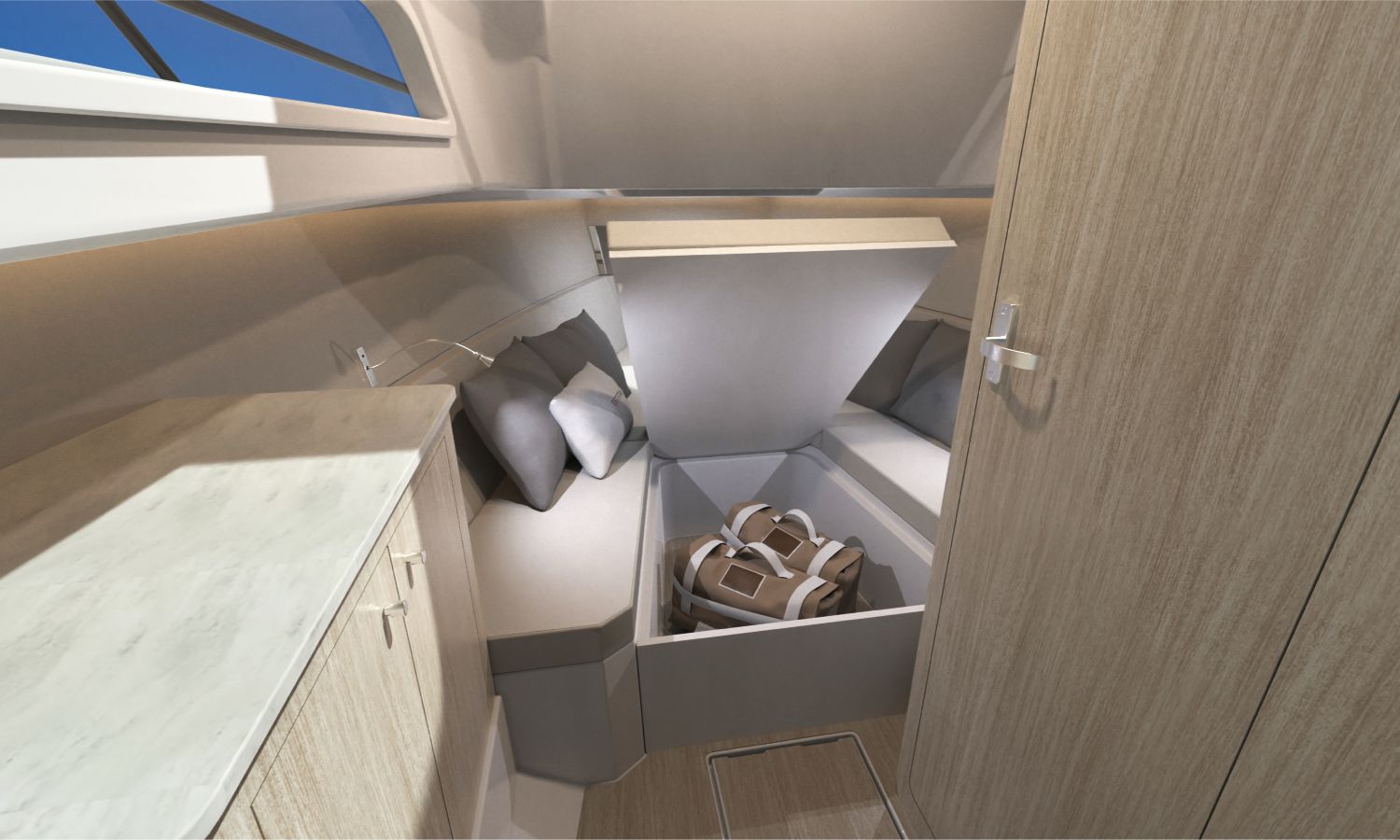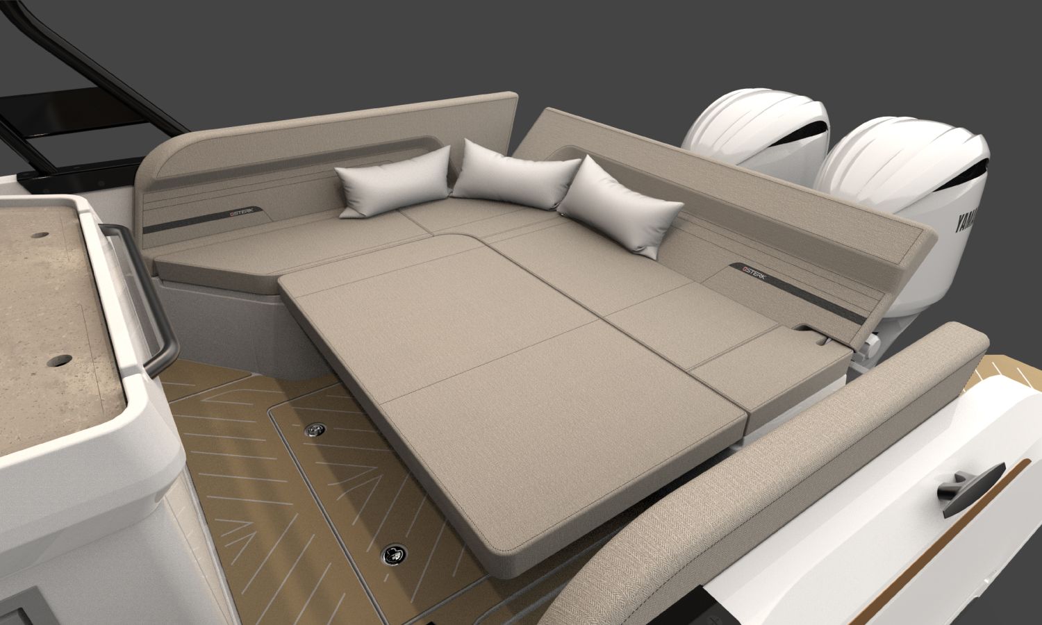 Electric windlass with anchor and chain - Bow thruster - Leaning post in cockpit with sink, refrigerator and gas stove - GRP T-Top, POLISHED frame with navigation lights - Ski mast - Storage space instead of table in interior cabin - Bathroom with toilet and holding tank - Foldable side seat in portside cockpit - Compass - Q Display 210 electronic equipment - Depth sounder - Nautical chart - Stern boom for T-Top - Console and cockpit seat covers - Mooring kit - Builder's certificate - Transport from the shipyard to the Costa Brava - Preparation, assembly and launch with sea trials - Antifouling paint.Boat description