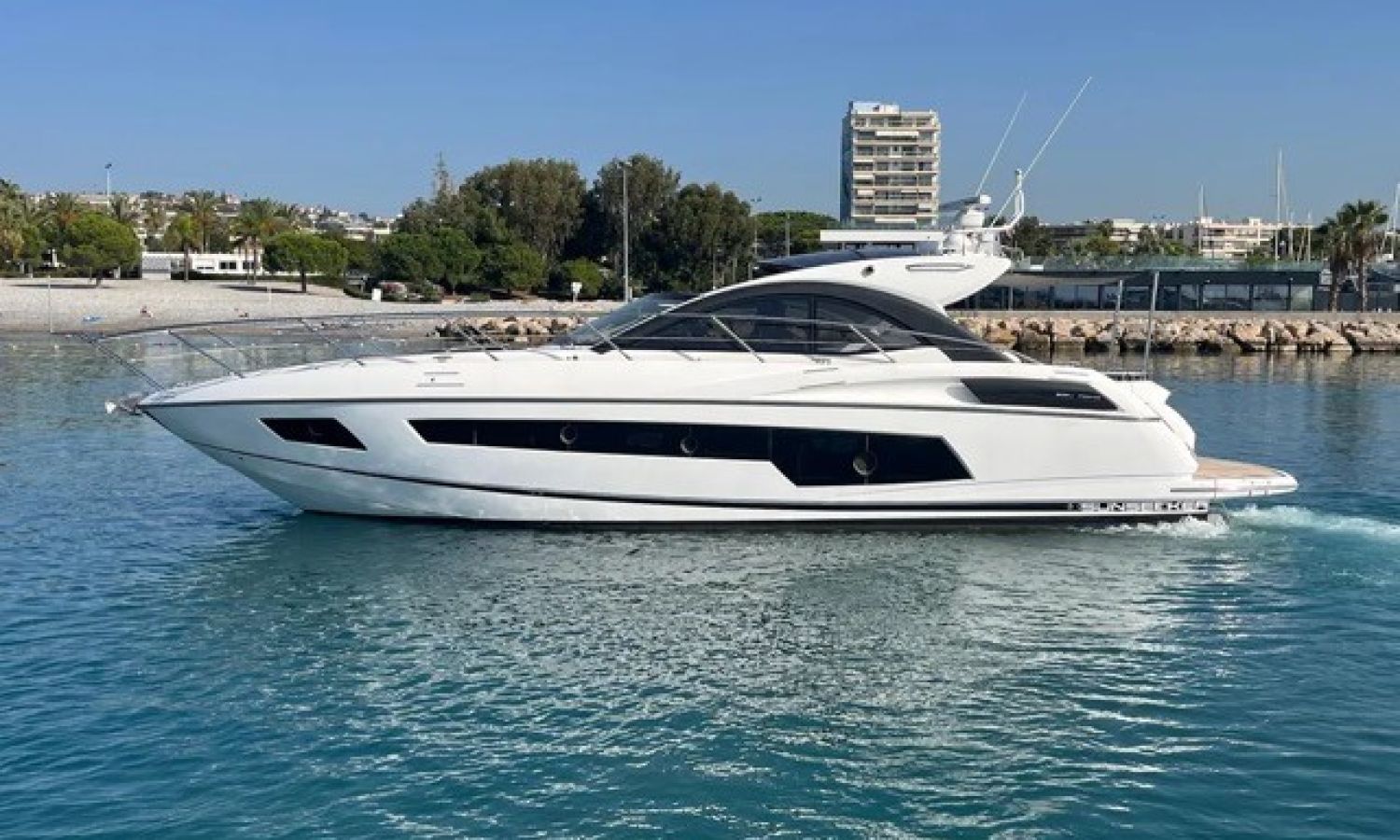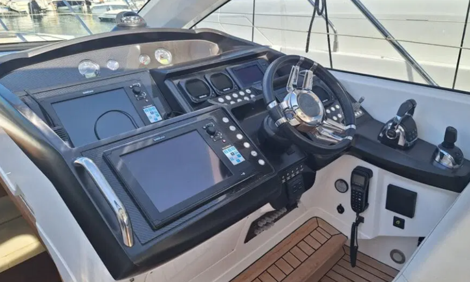Bathing platform - Hydraulic gangway - Hard Top - Teak - Fridge - Bow solarium - Sallon table - Electronic controls - Joystick dynamic positioning system - Bow thruster - Gps/Plotter/Deep finder - VHF - Compass - Autopilot - Audio equipement - Radar - Air conditioning - Generator - Heating - Port socket - Battery charger - Lights - Electric toilet - Electric windlass.Boat description