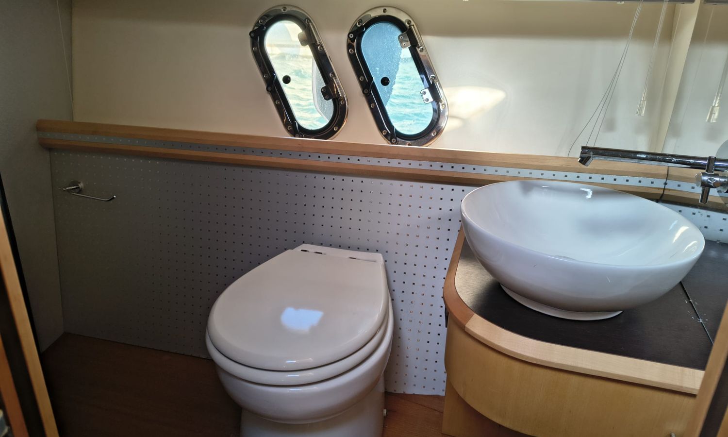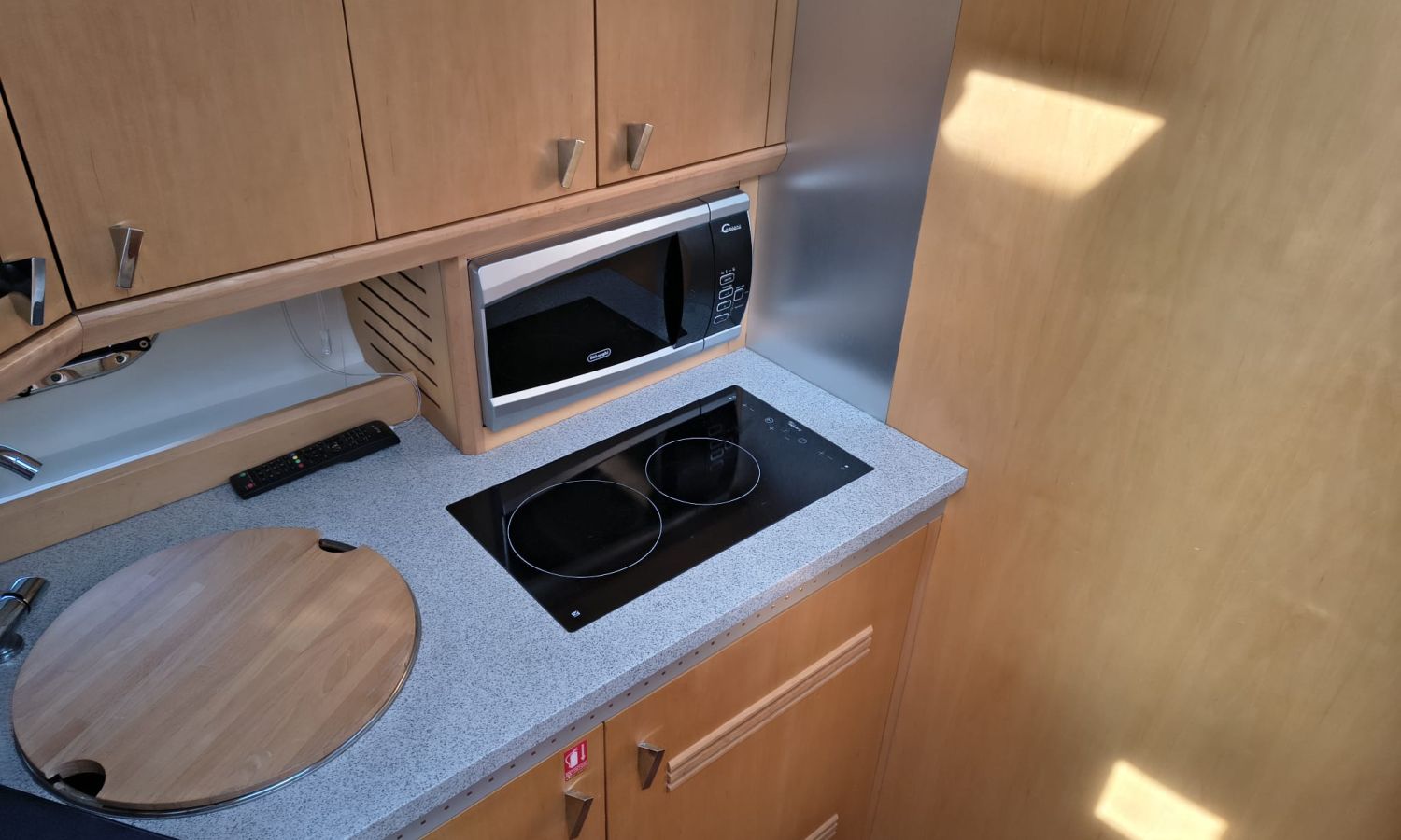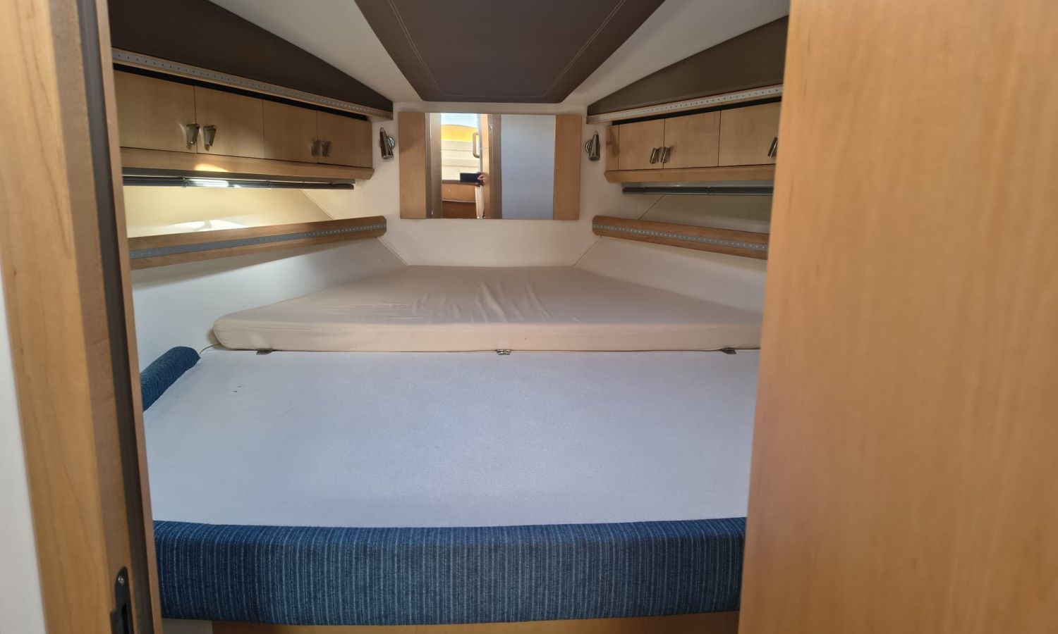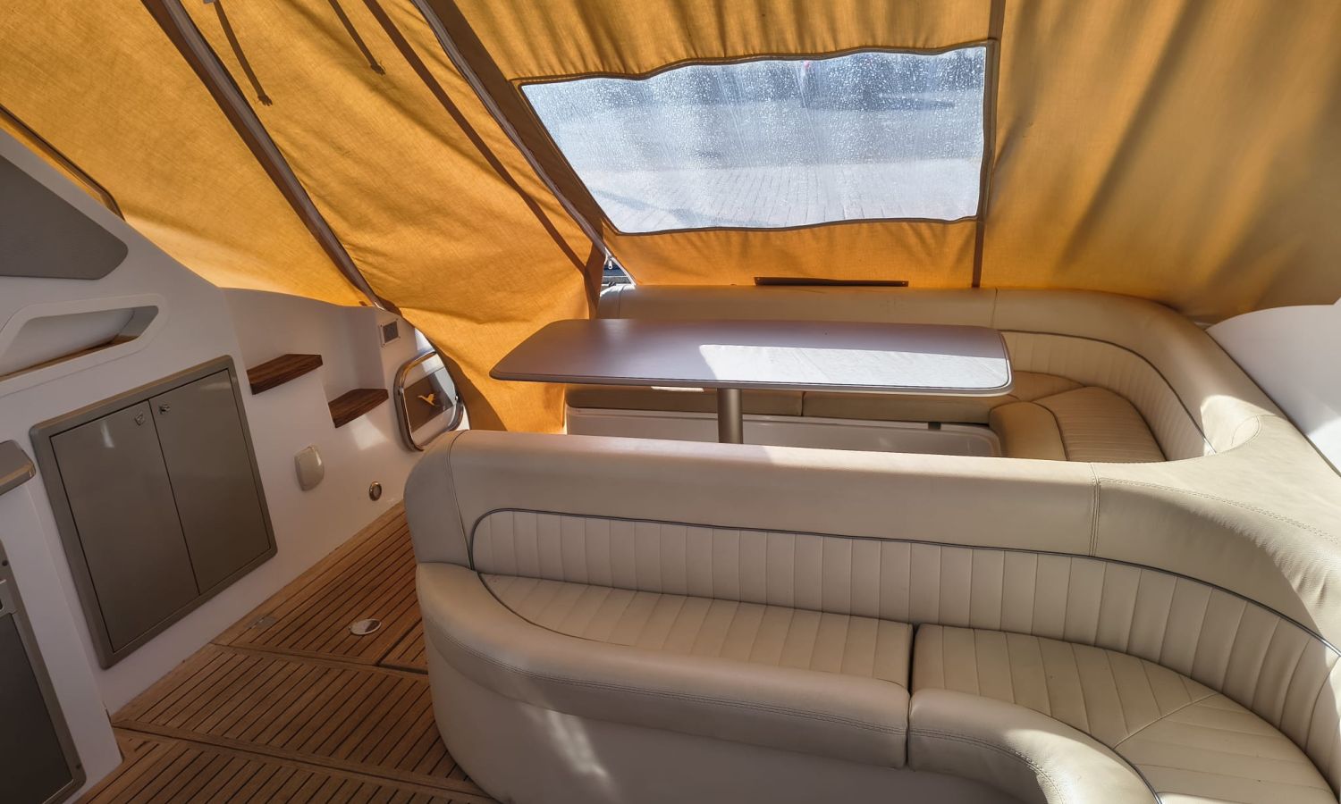 Hard Top - Toldo bimini - Hélice de proa y popa - Flaps - Toma de puerto 220 V - Cargador de baterías - Generador - Solárium de proa - WC con depósito de aguas negras - 2 Cabinas - Molinete eléctrico - Pasarela hidráulica - Mesa en la bañera - Mueble bar con fregadero - Suelo en teca - VHF - GPS/Plotter/Sonda - Piloto automático - Mandos electrónicos - Yacht controller - Equipo de audio - Flaps - Ducha en popa - Vitro - Nevera 12 V/220 V - Microondas - Toma de agua exterior.