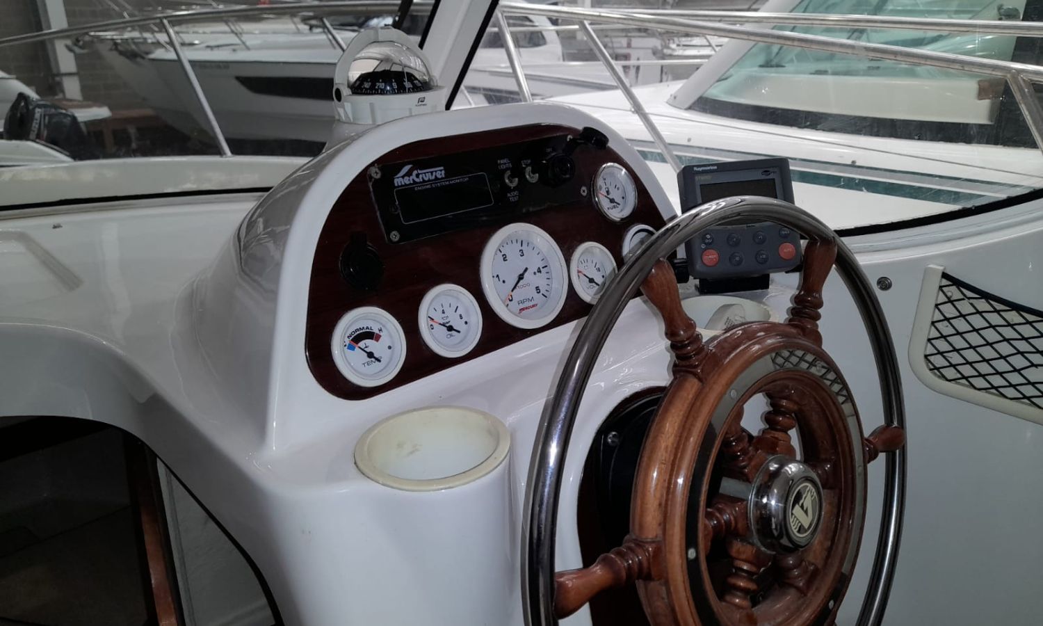 Molinete de ancla eléctrico - Ducha en popa - Hélice de proa - Wc marino - Gps/Plotter - Sonda - Vhf - Piloto automático - Equipo de audio - Toma de puerto 220 v. - Cargador baterías - Porta cañas - Plataforma de baño.Descripción embarcación