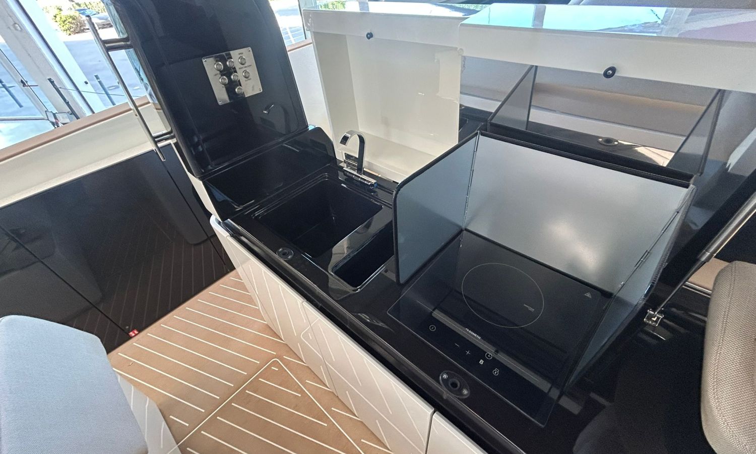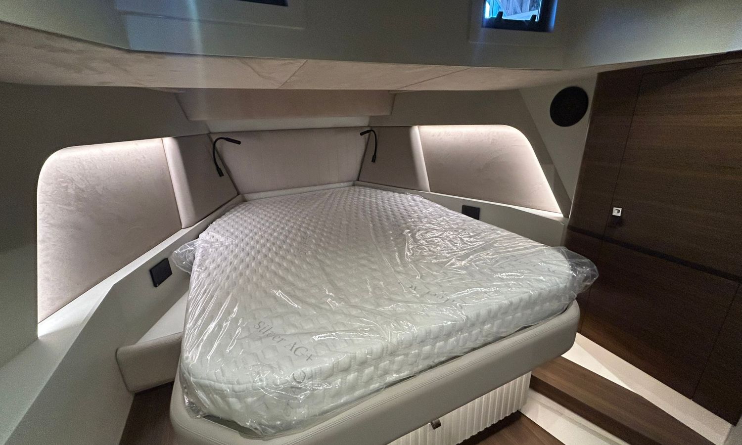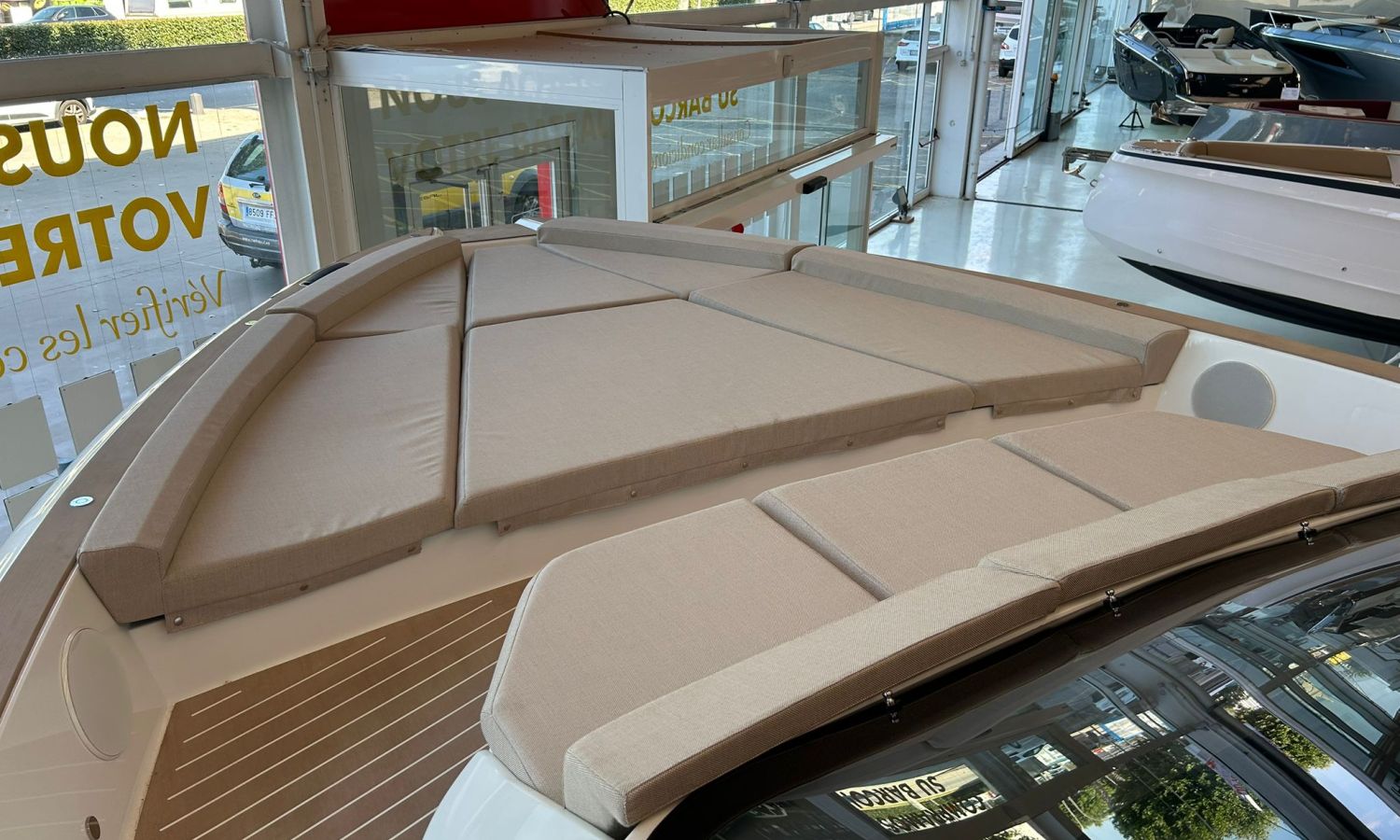 Pintura sólo línea de belleza - Color casco bajo línea de belleza (antracita) - Hard top con pintura en fibra de carbono y sistema de luces - Toldo parasol a popa con palos de carbono - Nevera en bañera - Segunda nevera en bañera - Horno microondas - Doble pantalla Glass Cockpit Simrad Chartplotter GPS 15 - Joystick Volvo Penta - Piloto automático Simrad - VHF Simrad - Sistema de sonido estéreo JL - Hélice de proa - Mando a distancia molinete con contador cadena - Inverter 2000 W - Fijación para ducha de popa en palo de carbono -Preparación, botadura y entrega con prueba de mar - Transporte de astillero a Costa Brava.Descripción embarcación