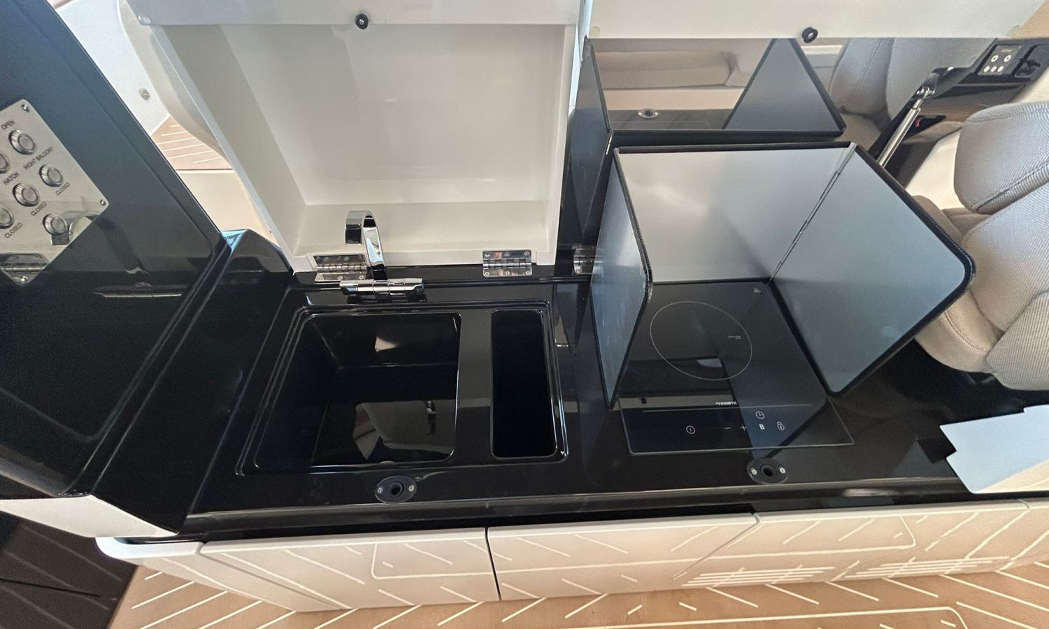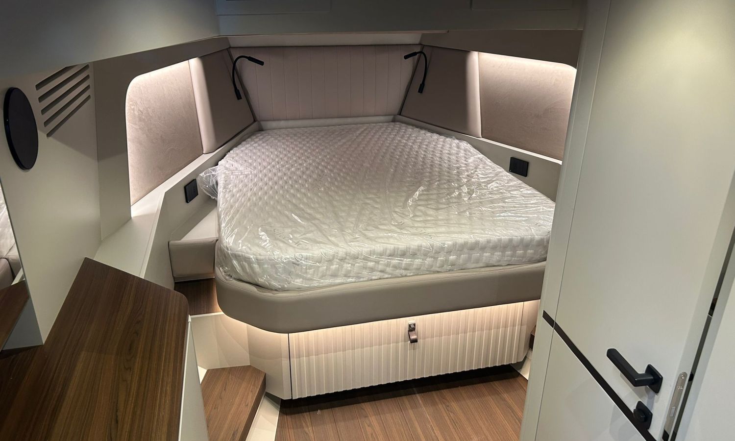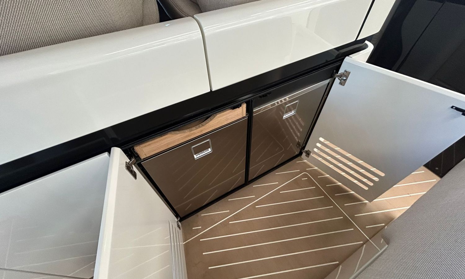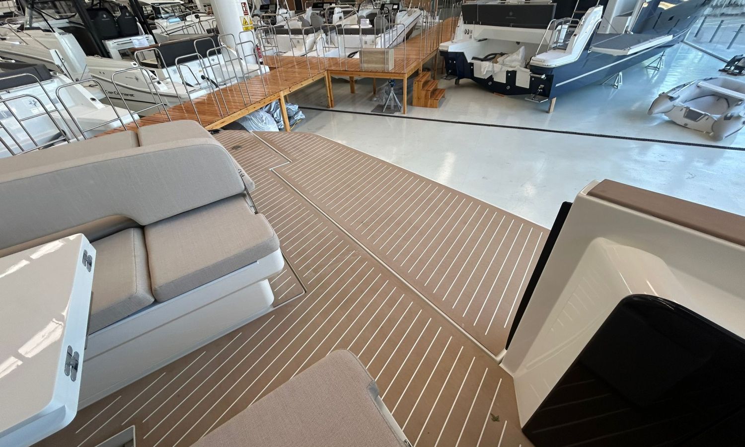 Pintura sólo línea de belleza - Color casco bajo línea de belleza (antracita) - Hard top con pintura en fibra de carbono y sistema de luces - Toldo parasol a popa con palos de carbono - Nevera en bañera - Segunda nevera en bañera - Horno microondas - Doble pantalla Glass Cockpit Simrad Chartplotter GPS 15 - Joystick Volvo Penta - Piloto automático Simrad - VHF Simrad - Sistema de sonido estéreo JL - Hélice de proa - Mando a distancia molinete con contador cadena - Inverter 2000 W - Fijación para ducha de popa en palo de carbono -Preparación, botadura y entrega con prueba de mar - Transporte de astillero a Costa Brava.Descripción embarcación