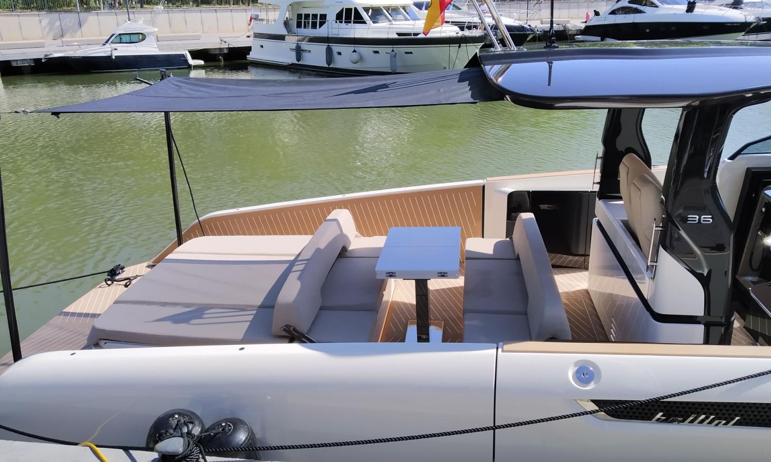 Embarcación en fabricación. Entrega mayo 2026. Fotos de archivo, los colores y el equipamiento pueden no corresponder exactamente a la unidad ofrecida. Modelo Astor 36 del prestigioso astillero italiano Bellini, de 11,30 m de eslora total. Barco con hard top y gran solárium a popa. Interiores de diseño moderno y gran habitabilidad.AST-Nº 20
