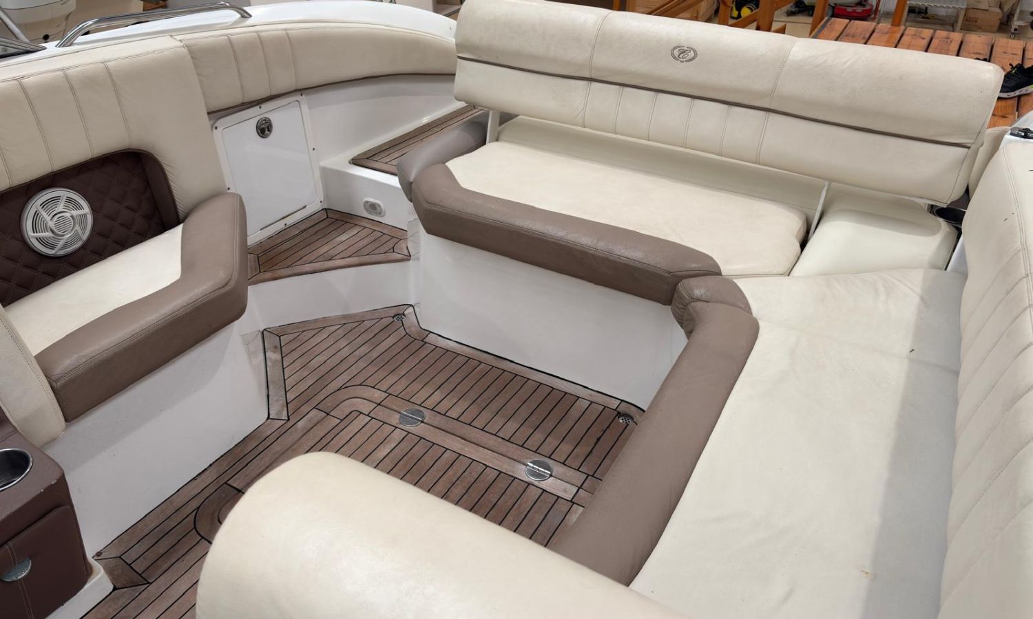 Toldo parasol - Plataforma de baño con escalera - Ducha en popa - Teca - Solarium de popa - Gps/Plotter/Sonda - Vhf - Solarium de proa - Equipo audio - Molinete de ancla electrico - Wc marino - Lona de fondeo - Antifouling.Descripción embarcación