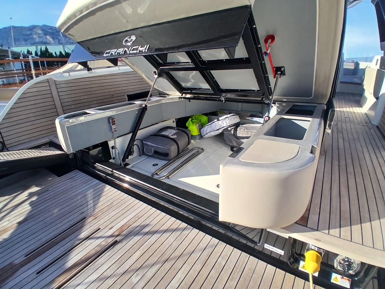 Embarcación en stock. Entrega inmediata. Modelo A 46 LT del prestigioso astillero italiano Cranchi, de 14,25 m de eslora total. Barco con hard top y gran solárium a popa. Interiores de diseño moderno y gran habitabilidad.DEN-Nº 7865