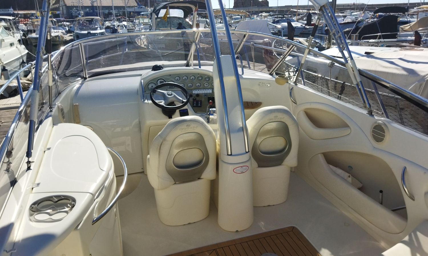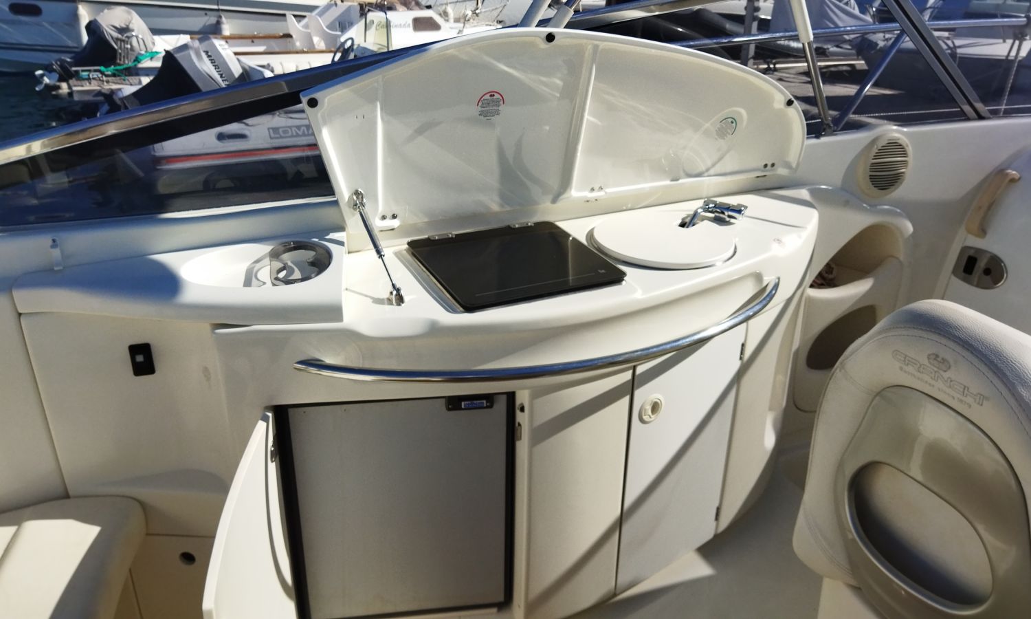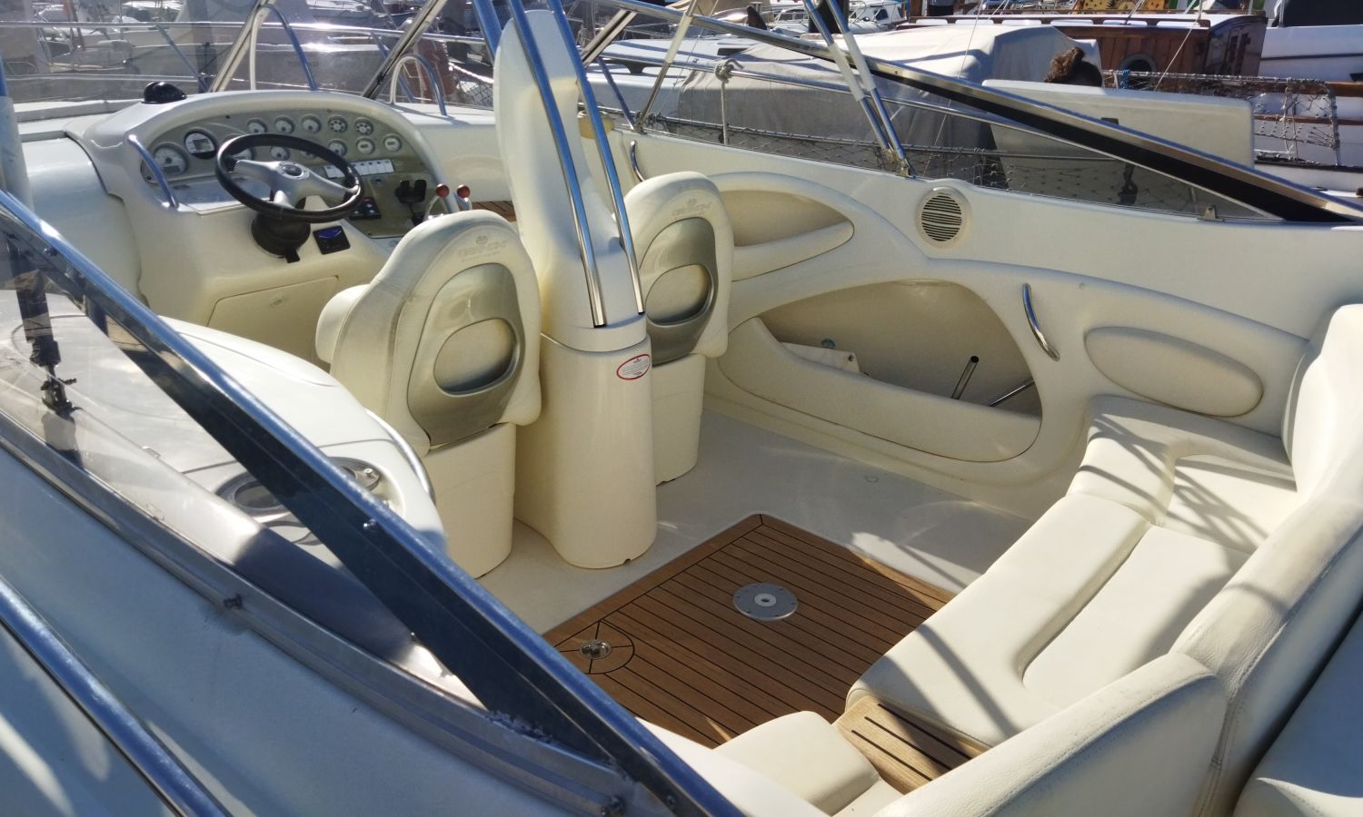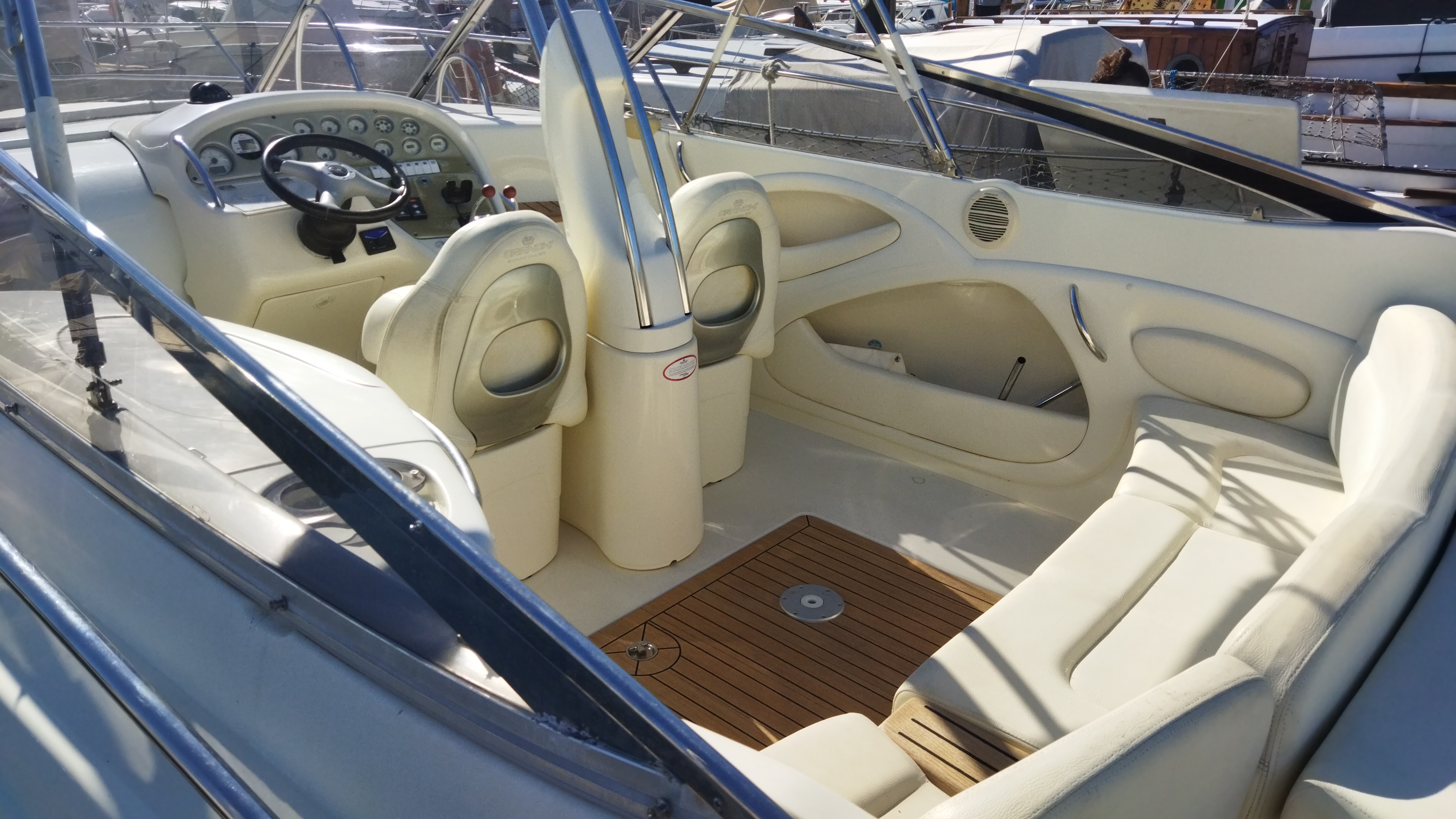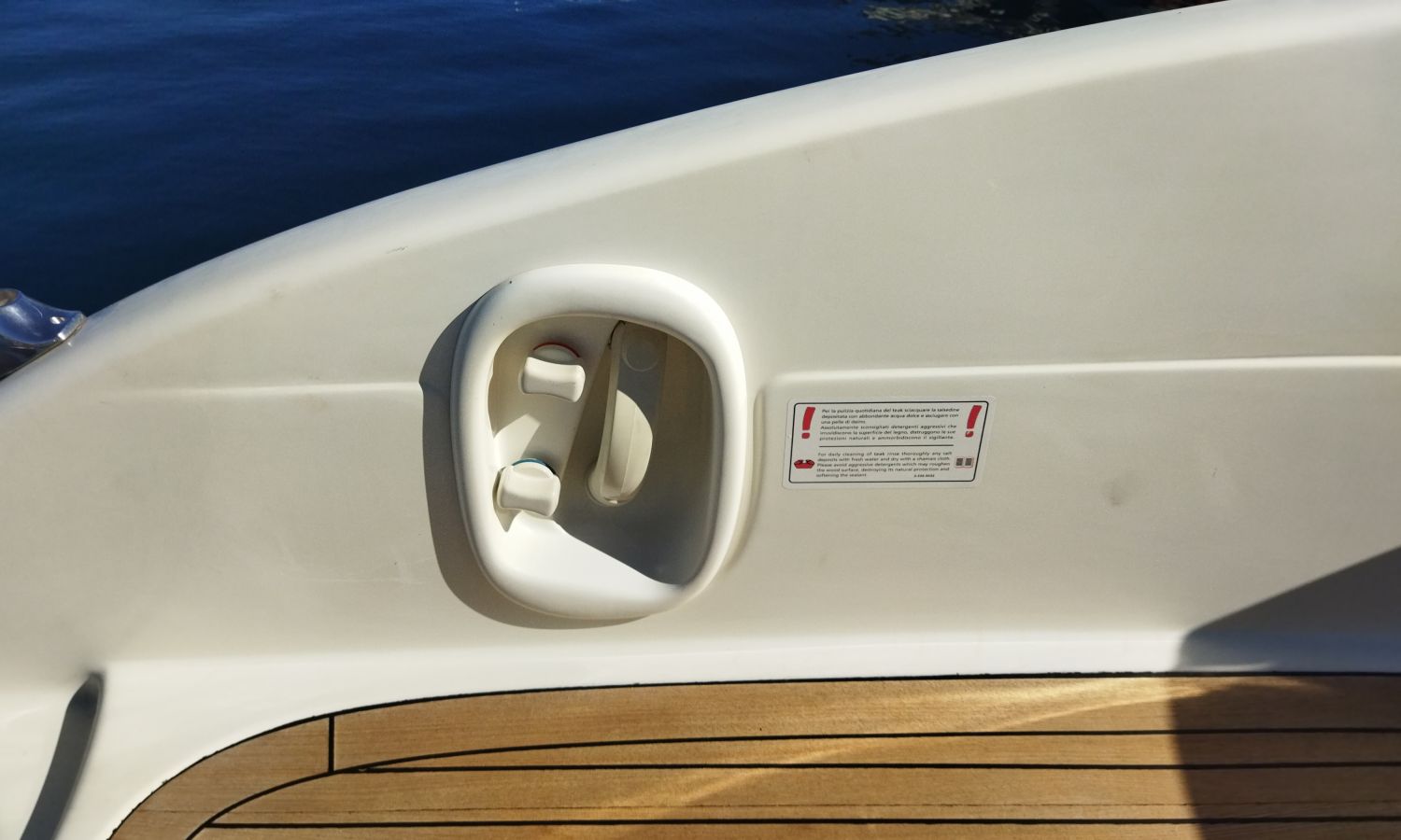 Lona de fondeo - Capota sol - Molinete electrico - Cada y ancla - Radio CD - Toma corriente puerto - Frigorifico exterior - Mesa bañera - Fregadero mueble exterior - Ducha popa - Water electrico - depósito aguas negras.Descripción embarcación
