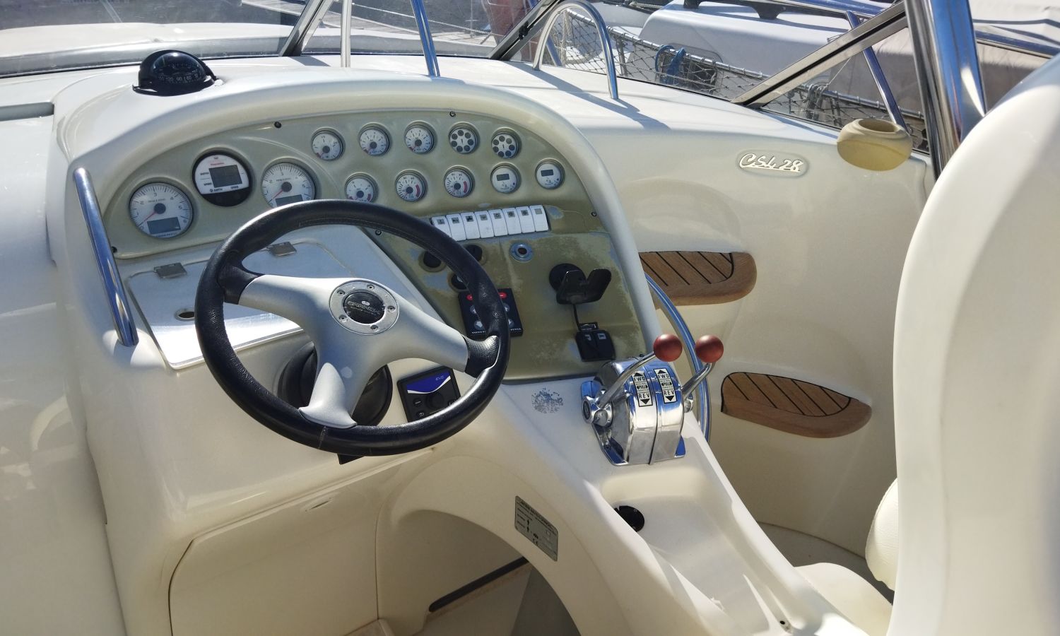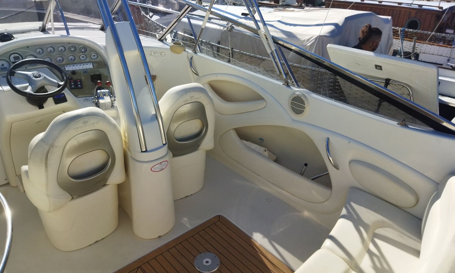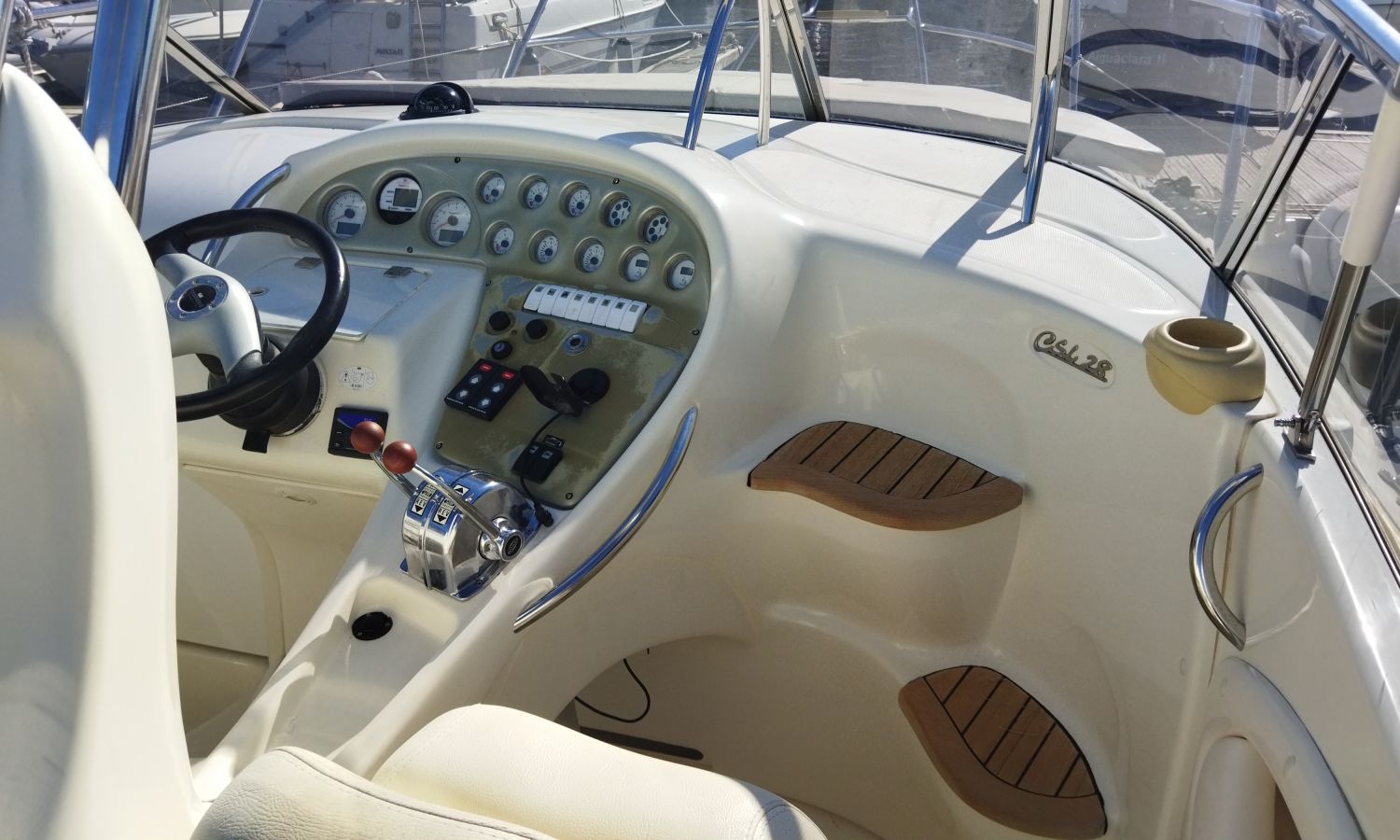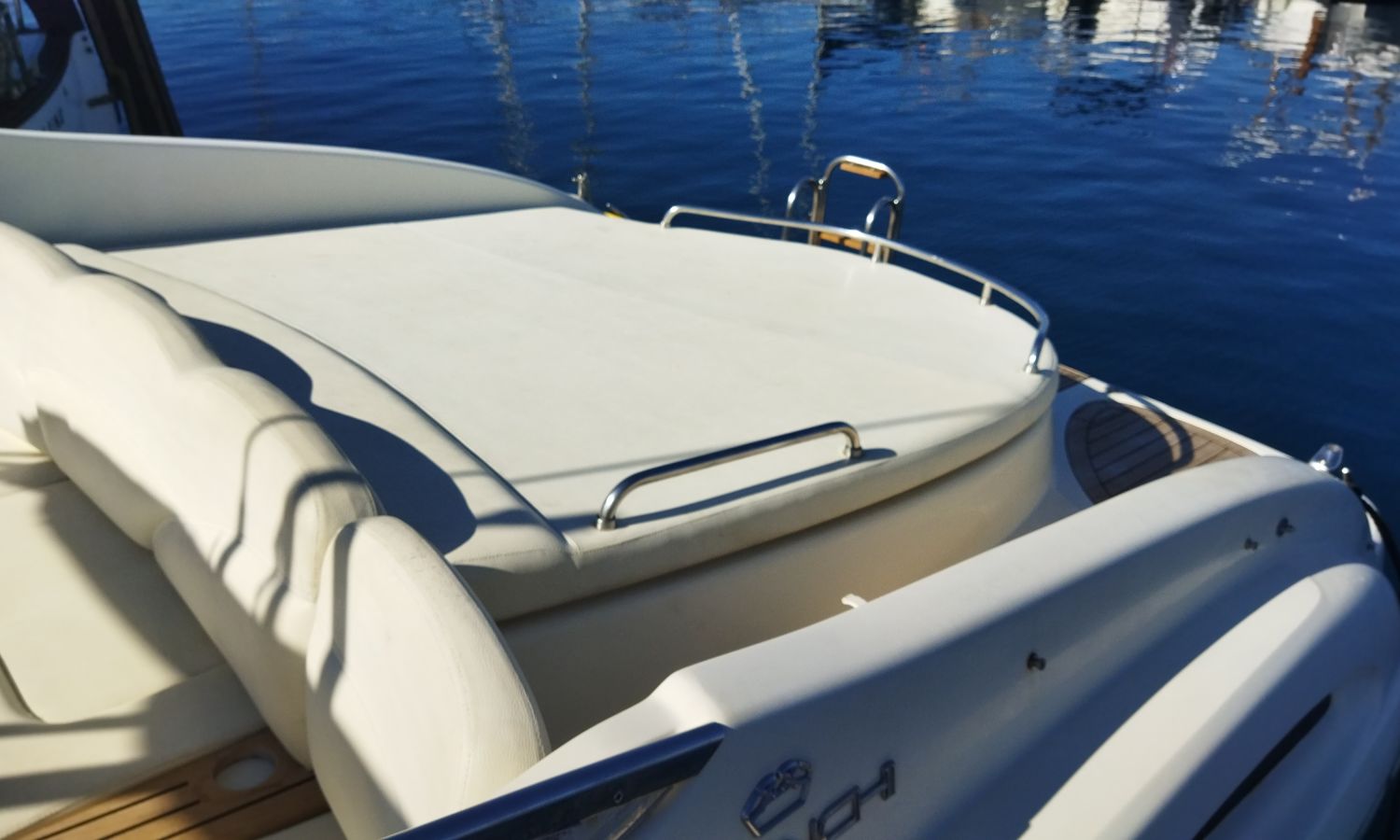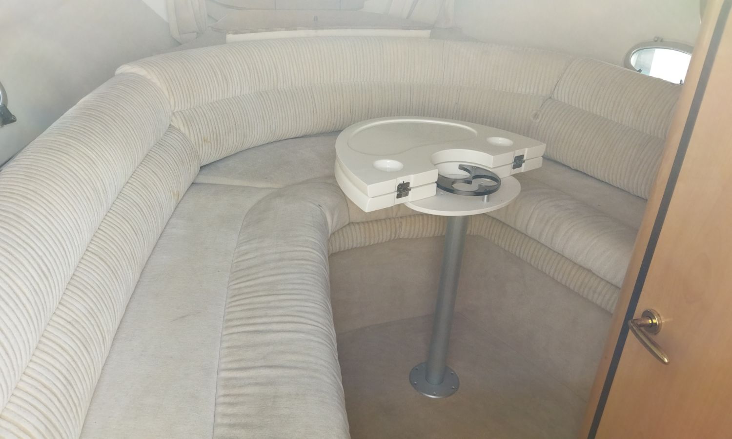 Lona de fondeo - Capota sol - Molinete electrico - Cada y ancla - Radio CD - Toma corriente puerto - Frigorifico exterior - Mesa bañera - Fregadero mueble exterior - Ducha popa - Water electrico - depósito aguas negras.Descripción embarcación