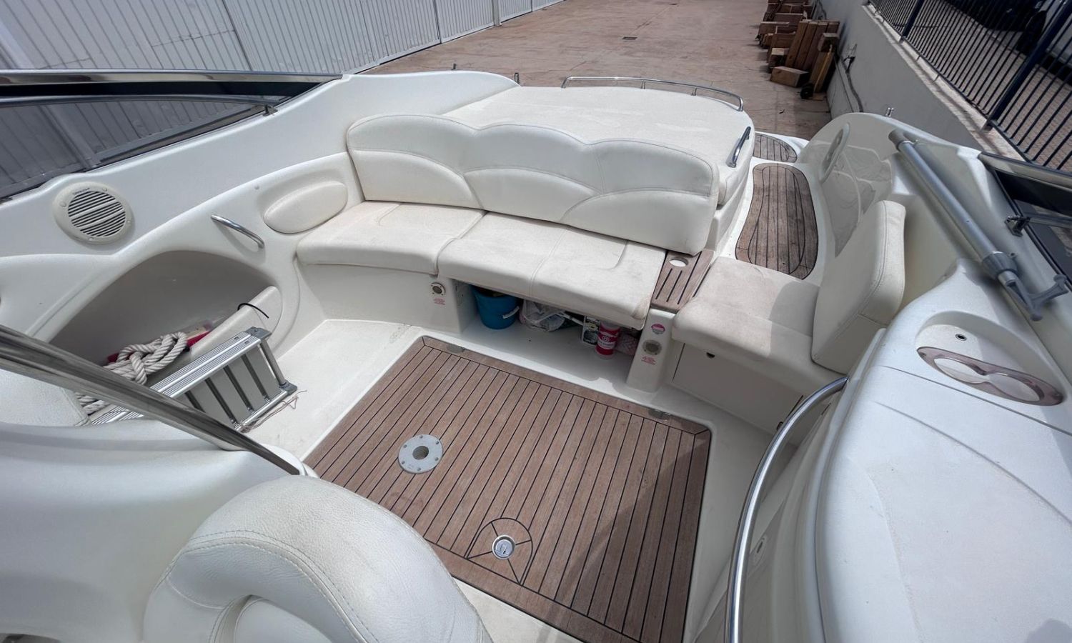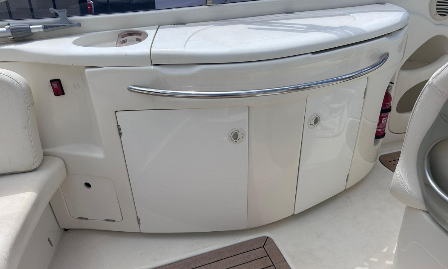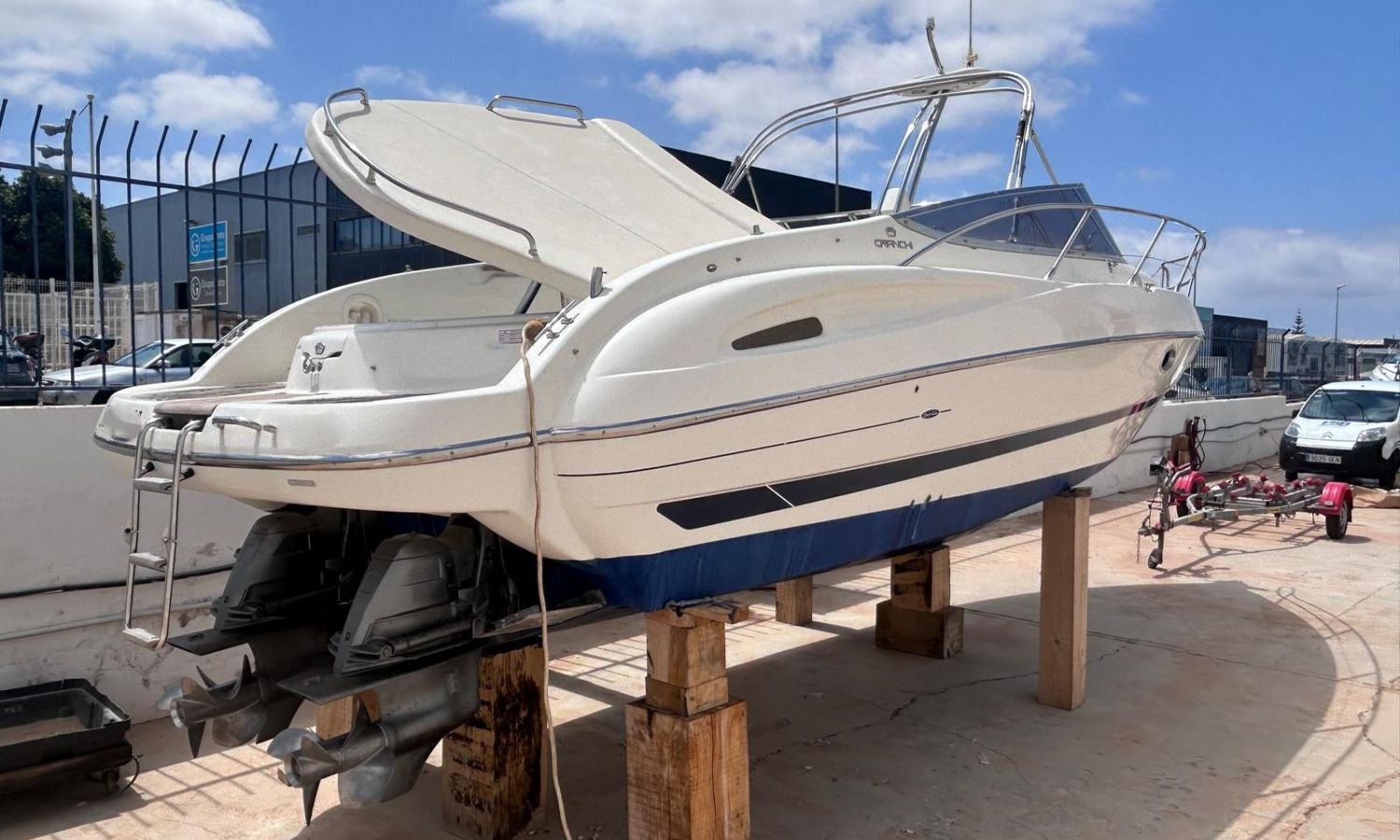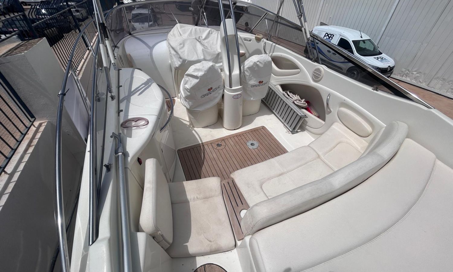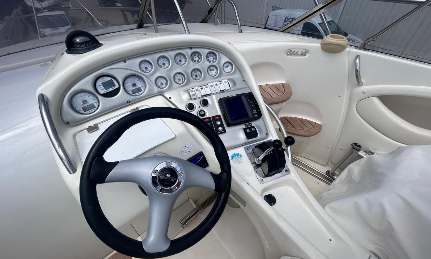 Sofá comedor salón - Wc eléctrico con lavabo y ducha - Equipo audio - Ducha popa - Solárium de proa - Solárium de popa con apertura hidráulica para acceso motor - Cargador de baterias - Toma de puerto - Mesa en la bañera - Molinete de ancla eléctrico - Teca en plataforma de baño - Toldo bimini - Antifouling.