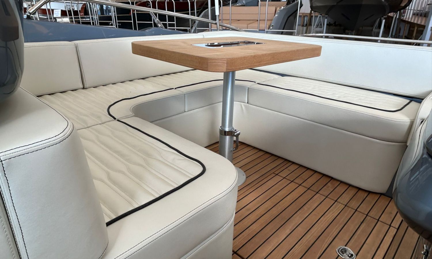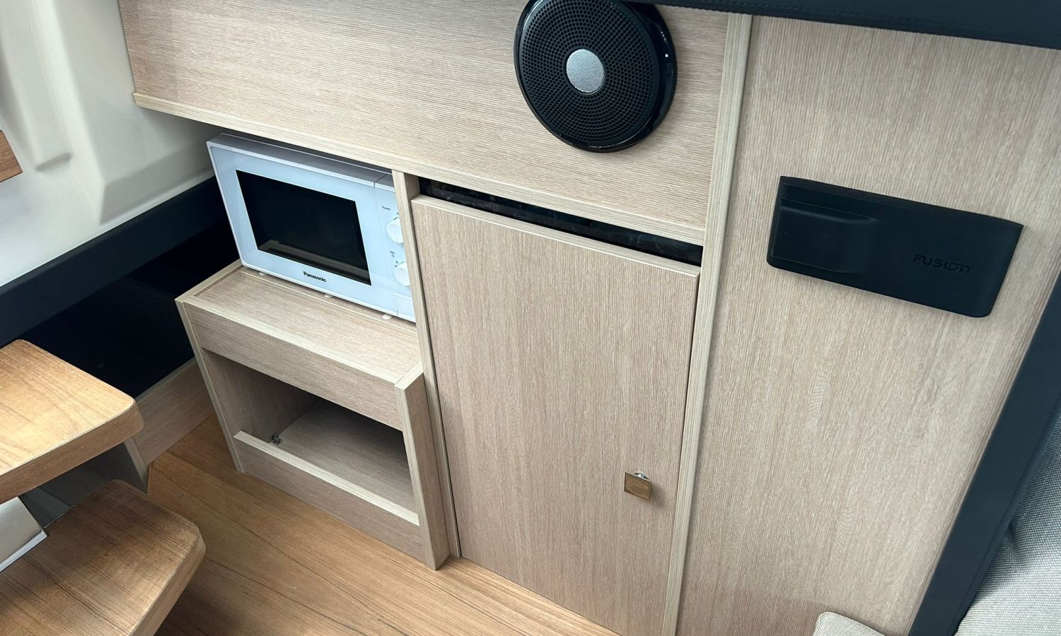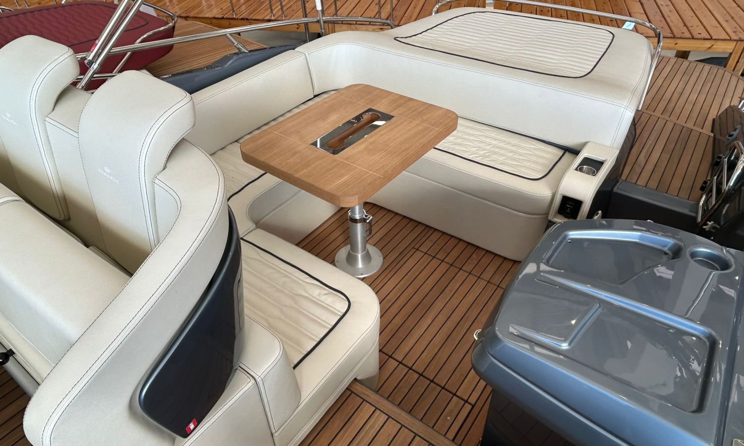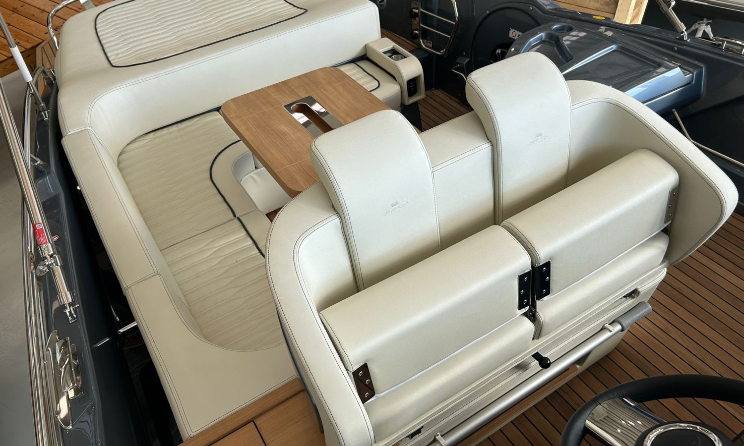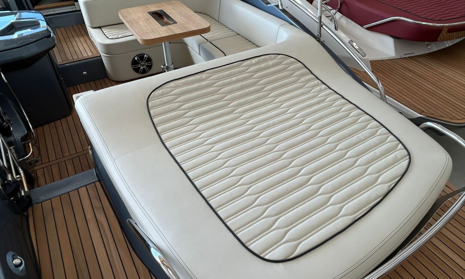 Depósito de aguas negras - Capota sol con arcos y tela - Colchoneta de proa y cobertura - Hélice de proa - Horno microondas con mueble - Nevera bañera 42 l - GPS/Plotter Garmin - Instalación eléctrica 230 V con cargador de baterías, resistencia eléctrica en calentador, reductor presión agua y cable toma puerto 32 A - Mueble armario con puerta - Radio Fusion Bluetooth/USB con 2 altavoces, amplificador, subwoofer y mando a distancia en bañera y un altavoz en la cabina - 2 altavoces suplementarios en la proa - Mesa interior convertible en cama - Superficie de teka en trancaniles laterales - Bañera en teka - Mando a distancia molinete con cuentametros cadena - Lona de fondeo - Molinete eléctrico con cadena y ancla Ultramarine 12 Kg - Certificado CE y declaración de conformidad - Tapicería exterior Silvertex (color alternativo al estándar) - Casco y cubierta lacados - Transporte.Descripción embarcación