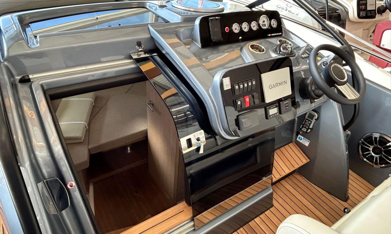 Embarcación en stock. Entrega inmediata. Modelo Endurance 30 del astillero italiano Cranchi de 9,85 metros de eslora total. Barco con cómoda plataforma de baño, distribución espaciosa, cabinada y solárium popa.EMP-Nº 7900