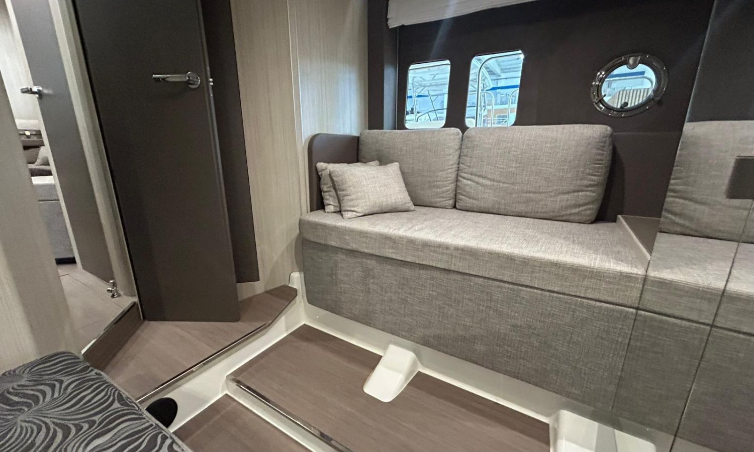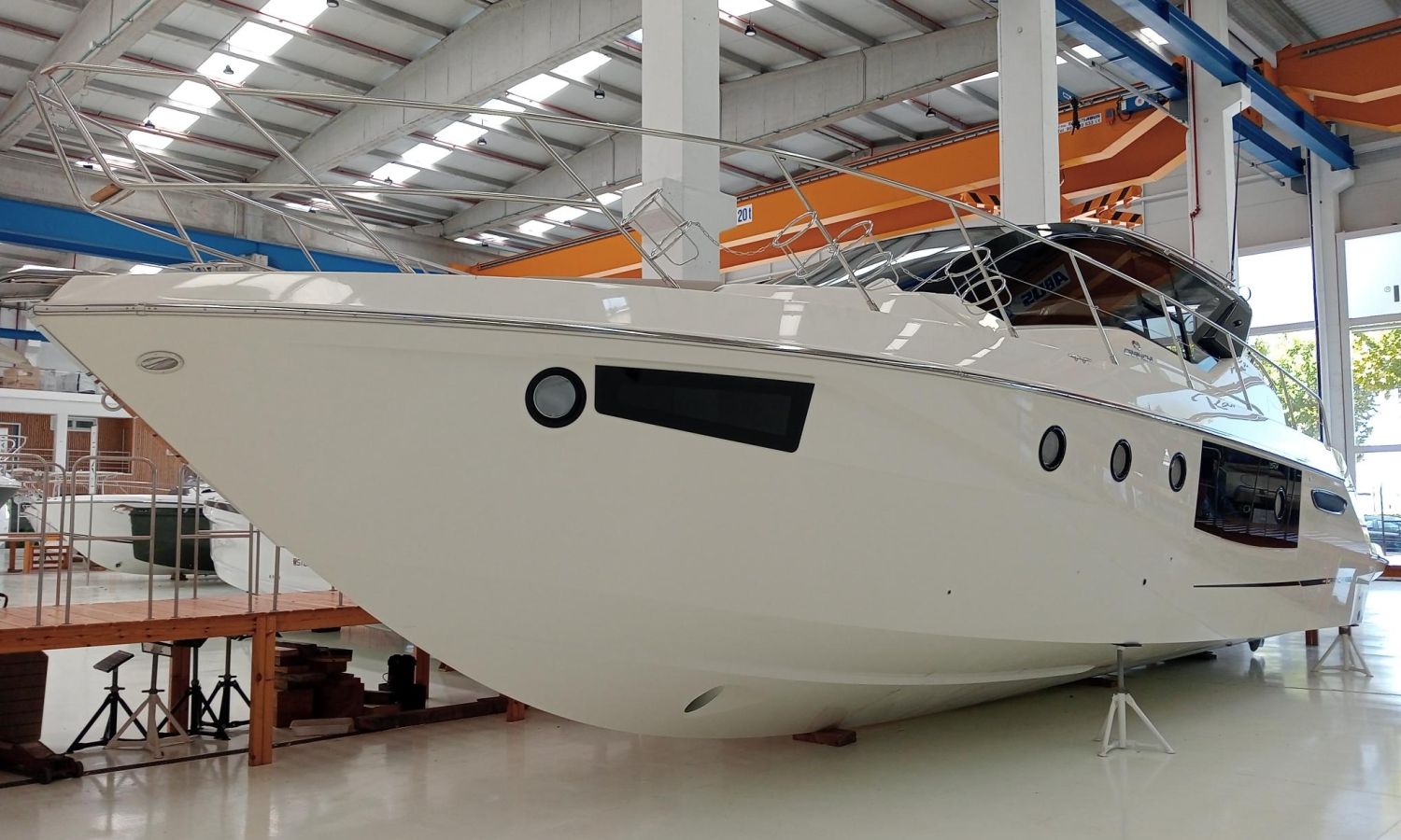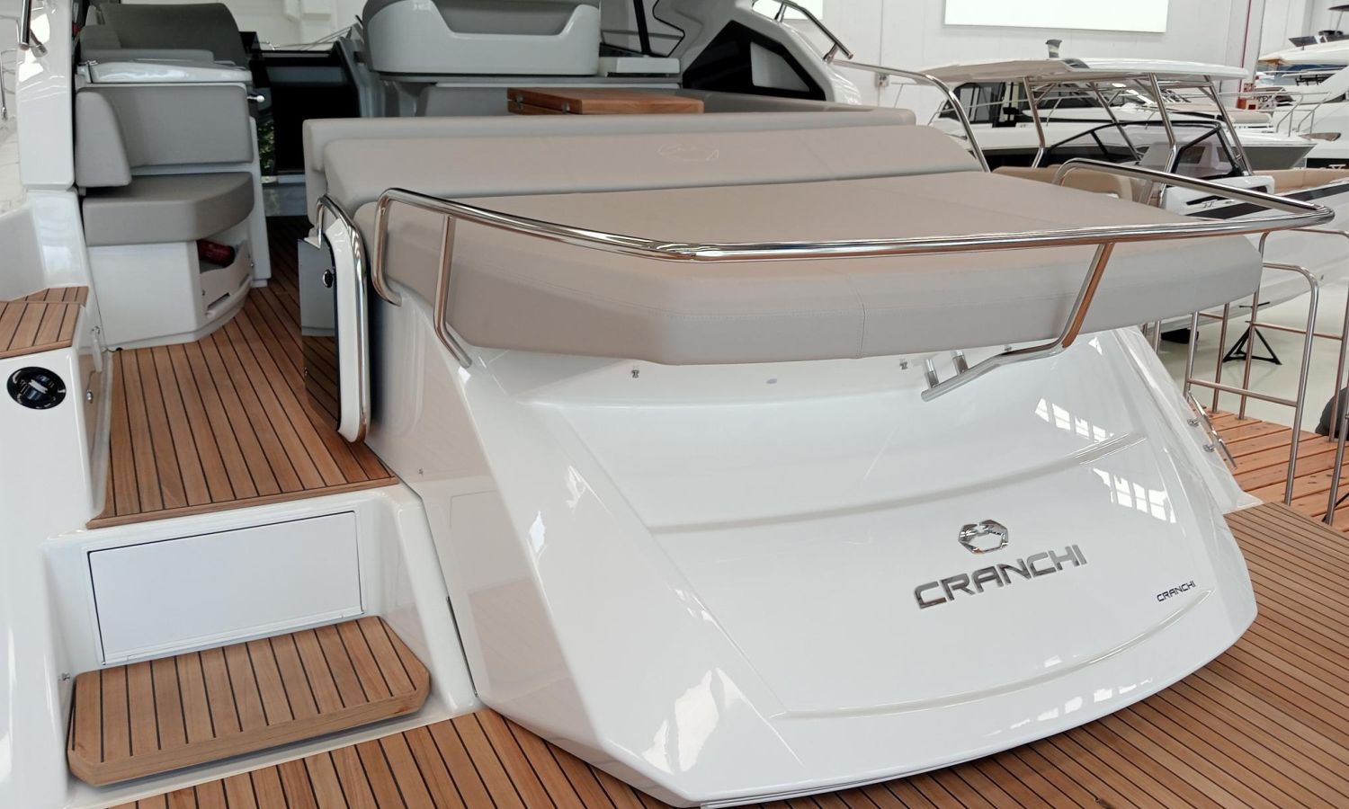 Embarcación en stock. Entrega inmediata. Modelo M 44 HT del prestigioso astillero Cranchi. Eslora total de 13.82 m y casco de color blanco con hard top negro. Dispone de una gran habitabilidad interior, amplia plataforma de baño hidráulica y garaje.EMP-Nº 7964