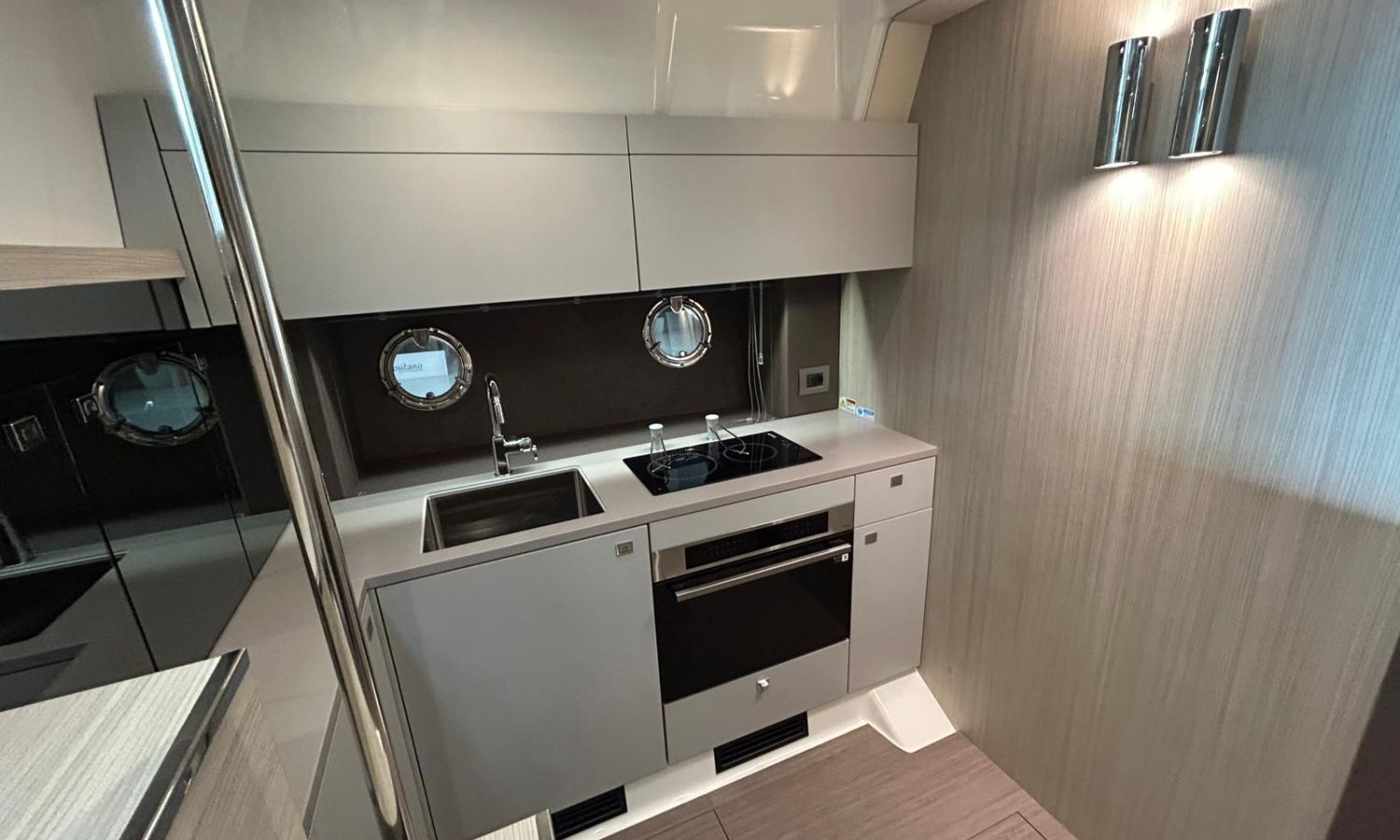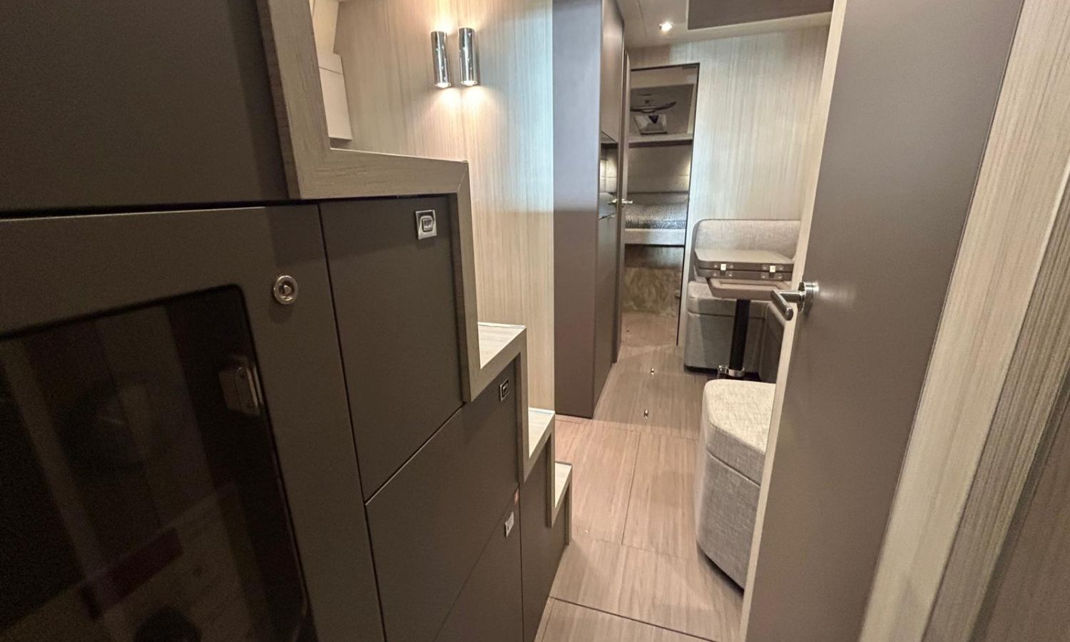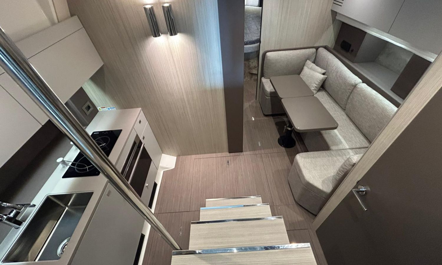 Embarcación en stock. Entrega inmediata. Modelo M 44 HT del prestigioso astillero Cranchi. Eslora total de 13.82 m y casco de color blanco con hard top negro. Dispone de una gran habitabilidad interior, amplia plataforma de baño hidráulica y garaje.EMP-Nº 7964