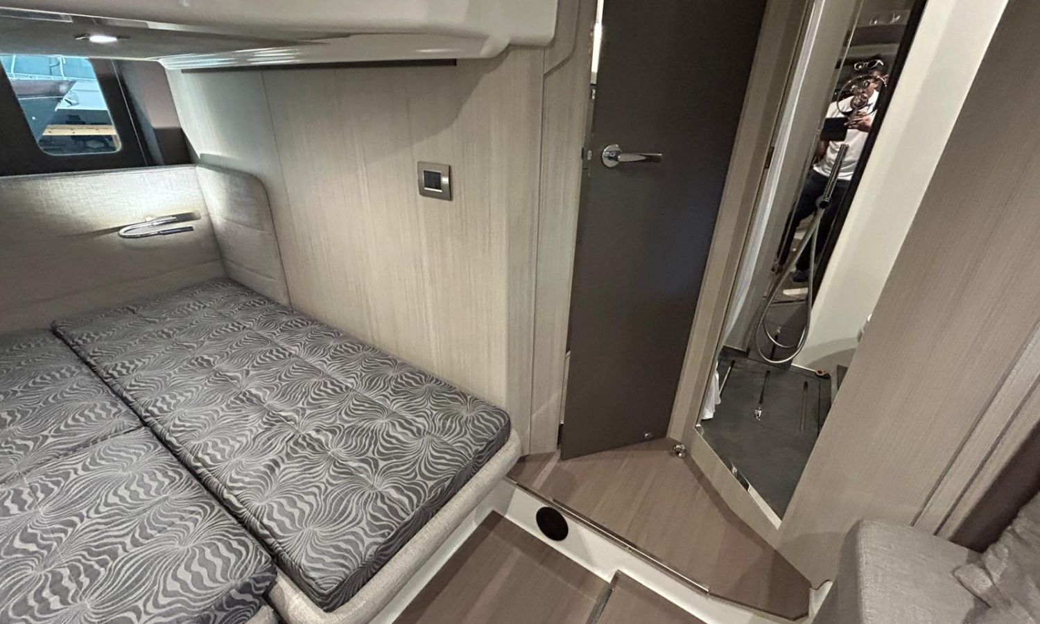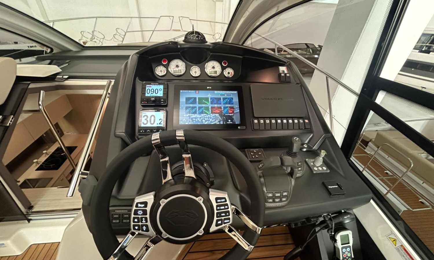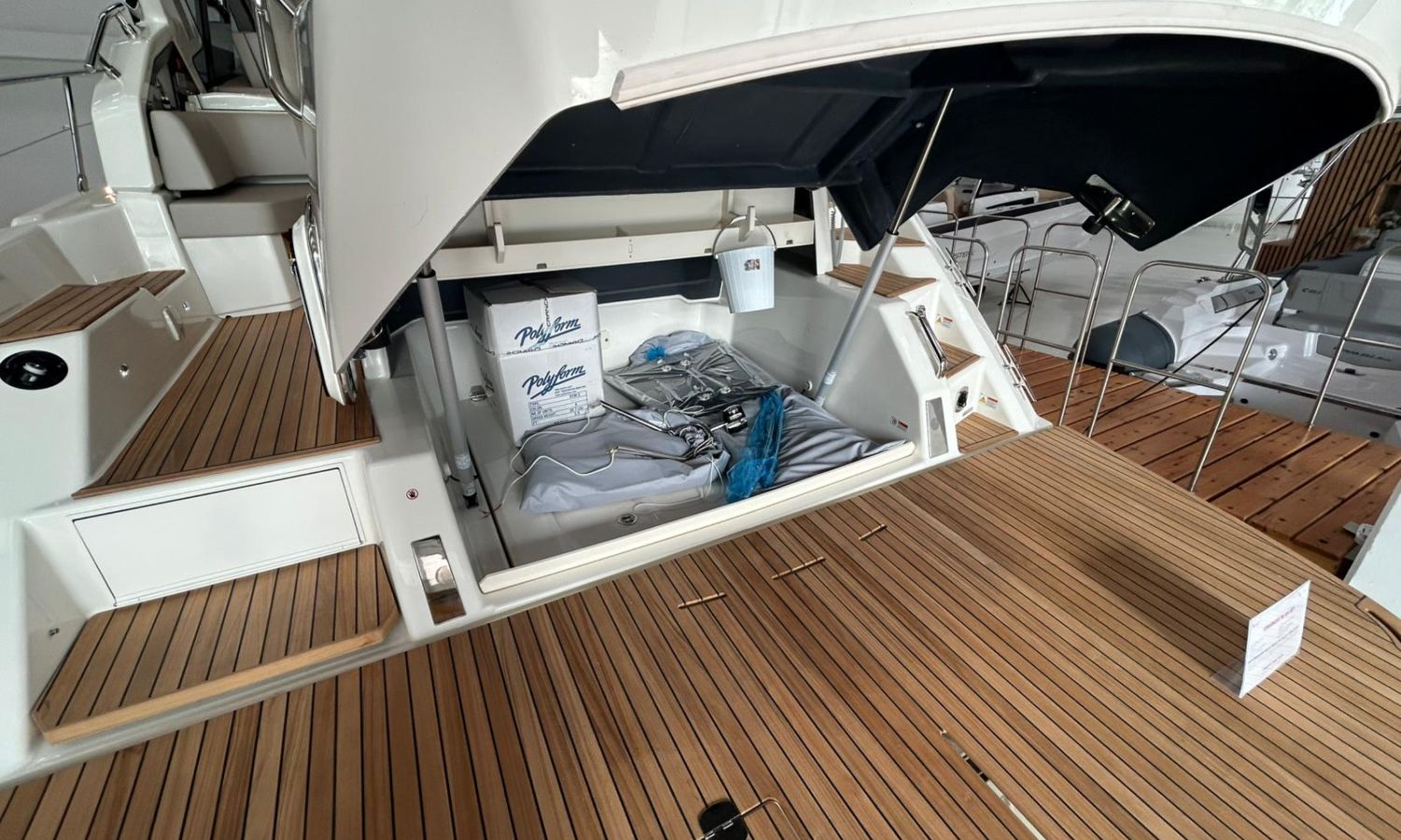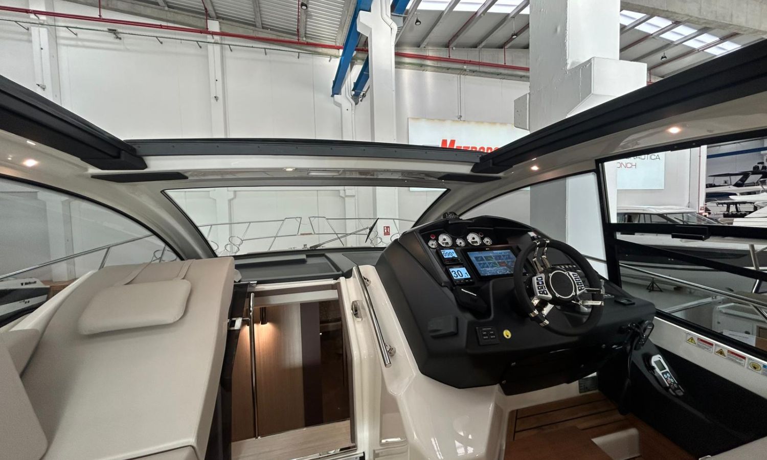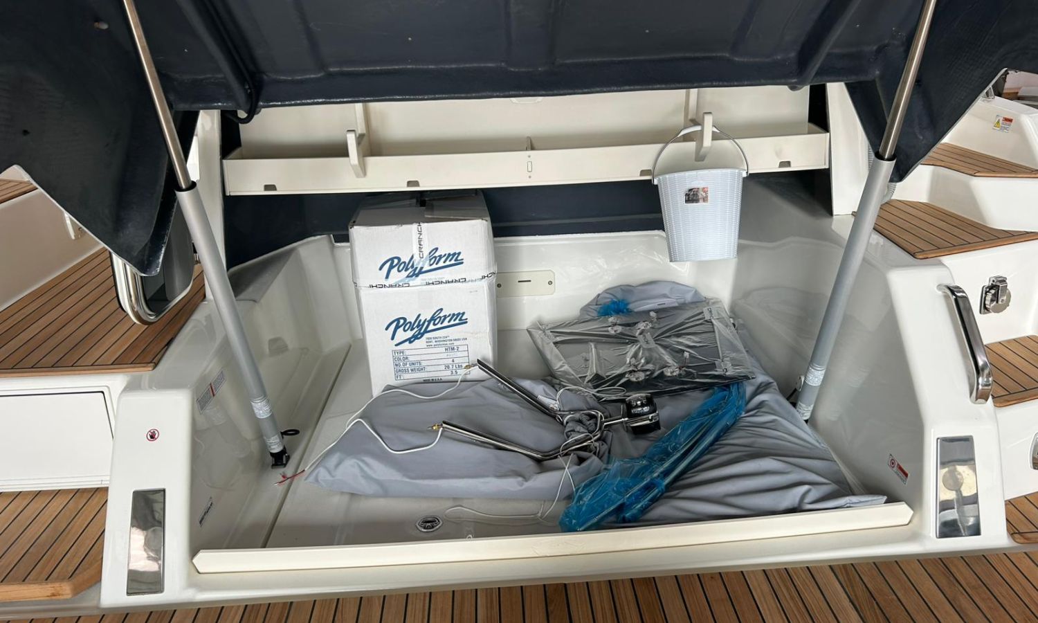 Depósito de aguas negras - Aire acondicionado 16.000 BTU con bomba de calor - Capota completa de popa - Hélice de proa con extintor automático - Frigorífico en bañera - GPS + Chartplotter - Generador 8 kW - Pasarela hidráulica - Plataforma elevadora plegable en teka para posición de conducción - Piloto automático - Plataforma de popa hidráulica subida/bajada - Bañera en teka - VHF / DSC - Copia certificado CE y declaración de conformidad - Lona soft top (color alternativo al estándar) - Hard top de color lacado - Preparación, botadura, entrega y prueba de mar. Tranporte astillero a Costa Brava.Descripción embarcación