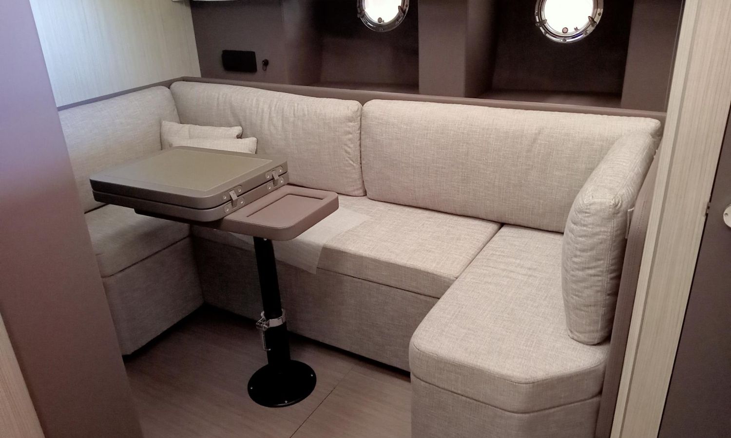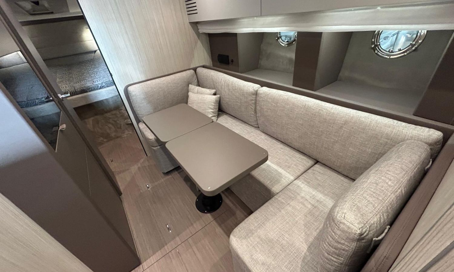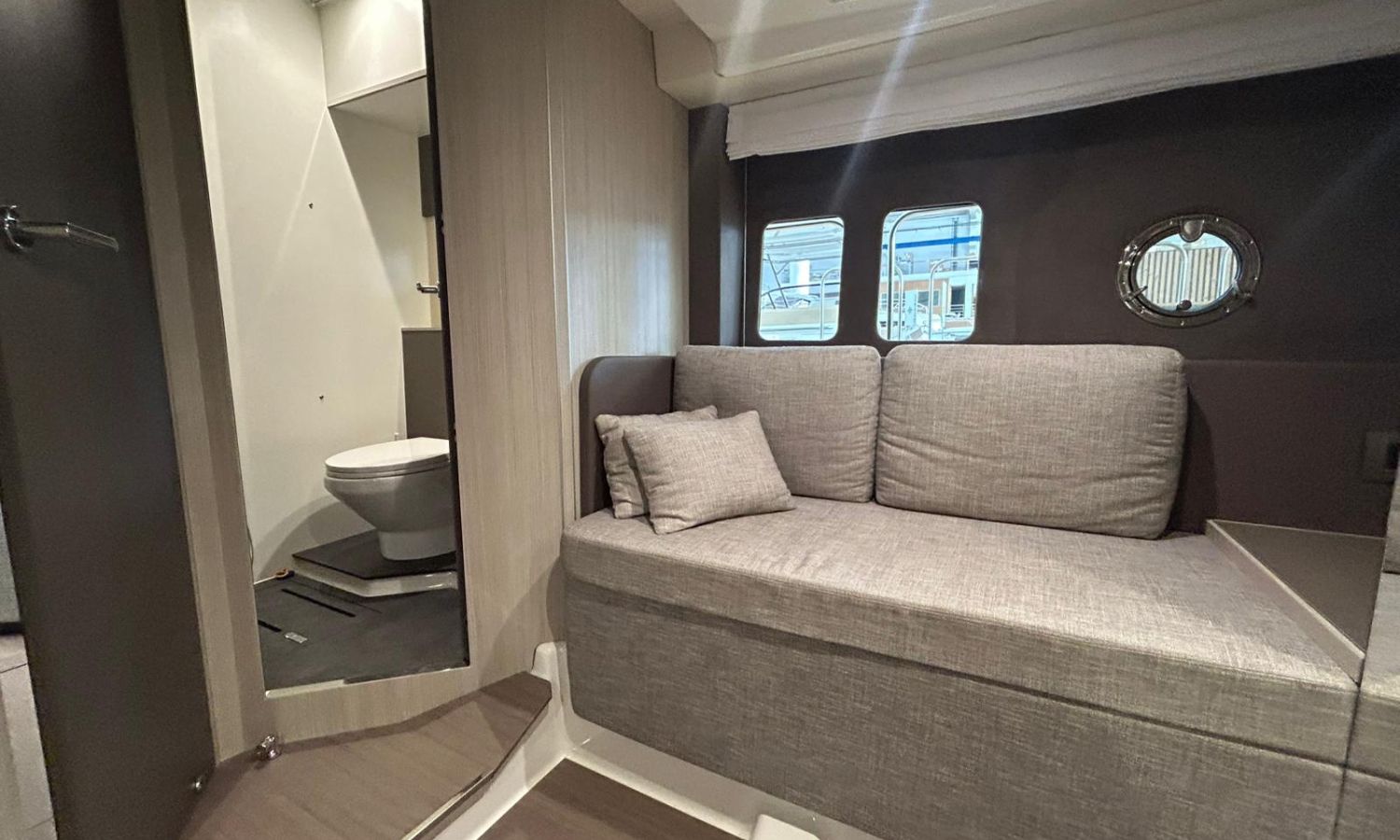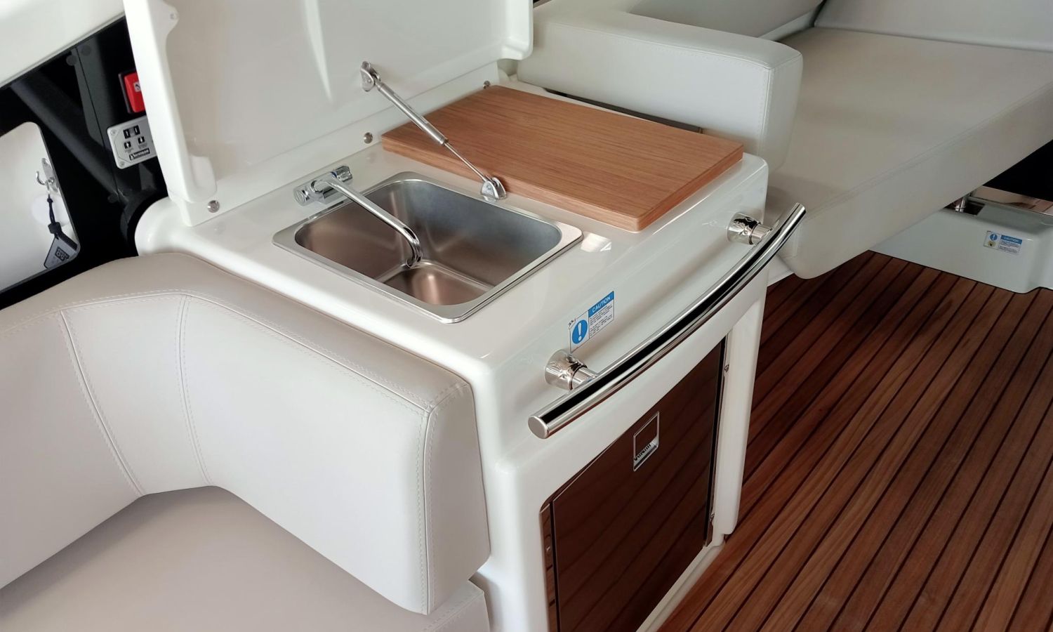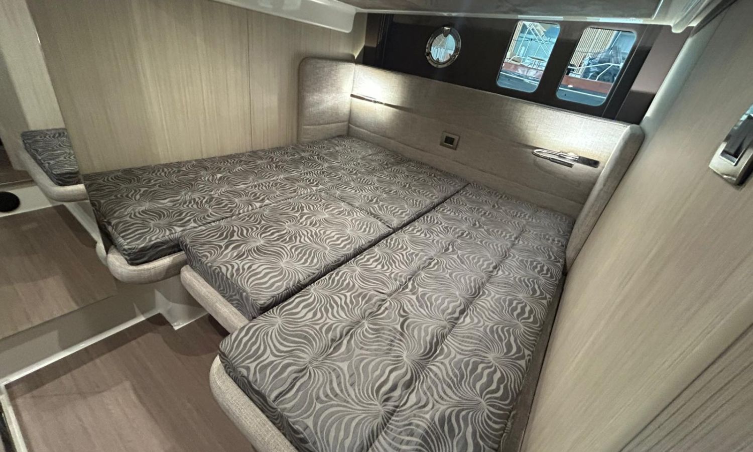 Depósito de aguas negras - Aire acondicionado 16.000 BTU con bomba de calor - Capota completa de popa - Hélice de proa con extintor automático - Frigorífico en bañera - GPS + Chartplotter - Generador 8 kW - Pasarela hidráulica - Plataforma elevadora plegable en teka para posición de conducción - Piloto automático - Plataforma de popa hidráulica subida/bajada - Bañera en teka - VHF / DSC - Copia certificado CE y declaración de conformidad - Lona soft top (color alternativo al estándar) - Hard top de color lacado - Preparación, botadura, entrega y prueba de mar. Tranporte astillero a Costa Brava.Descripción embarcación