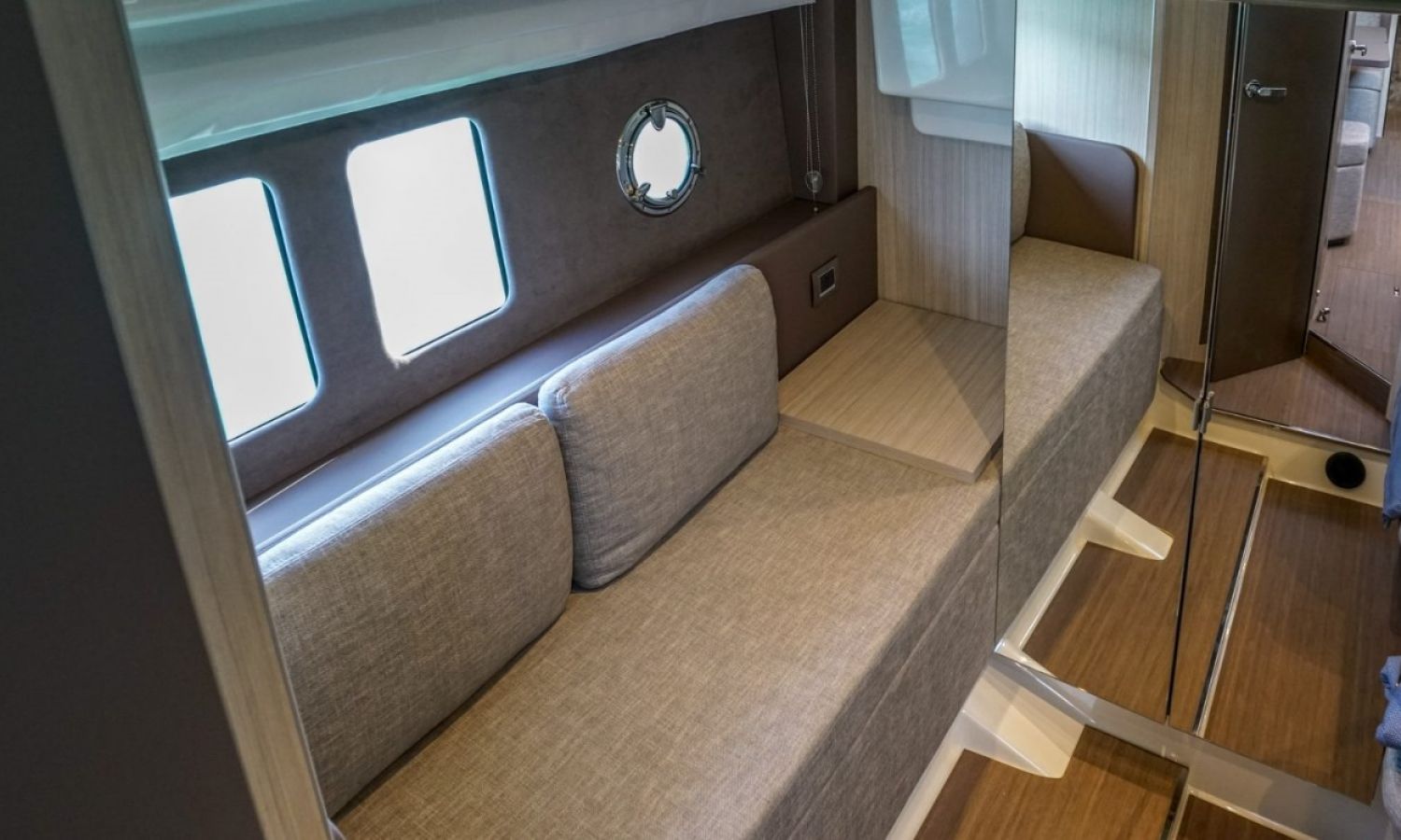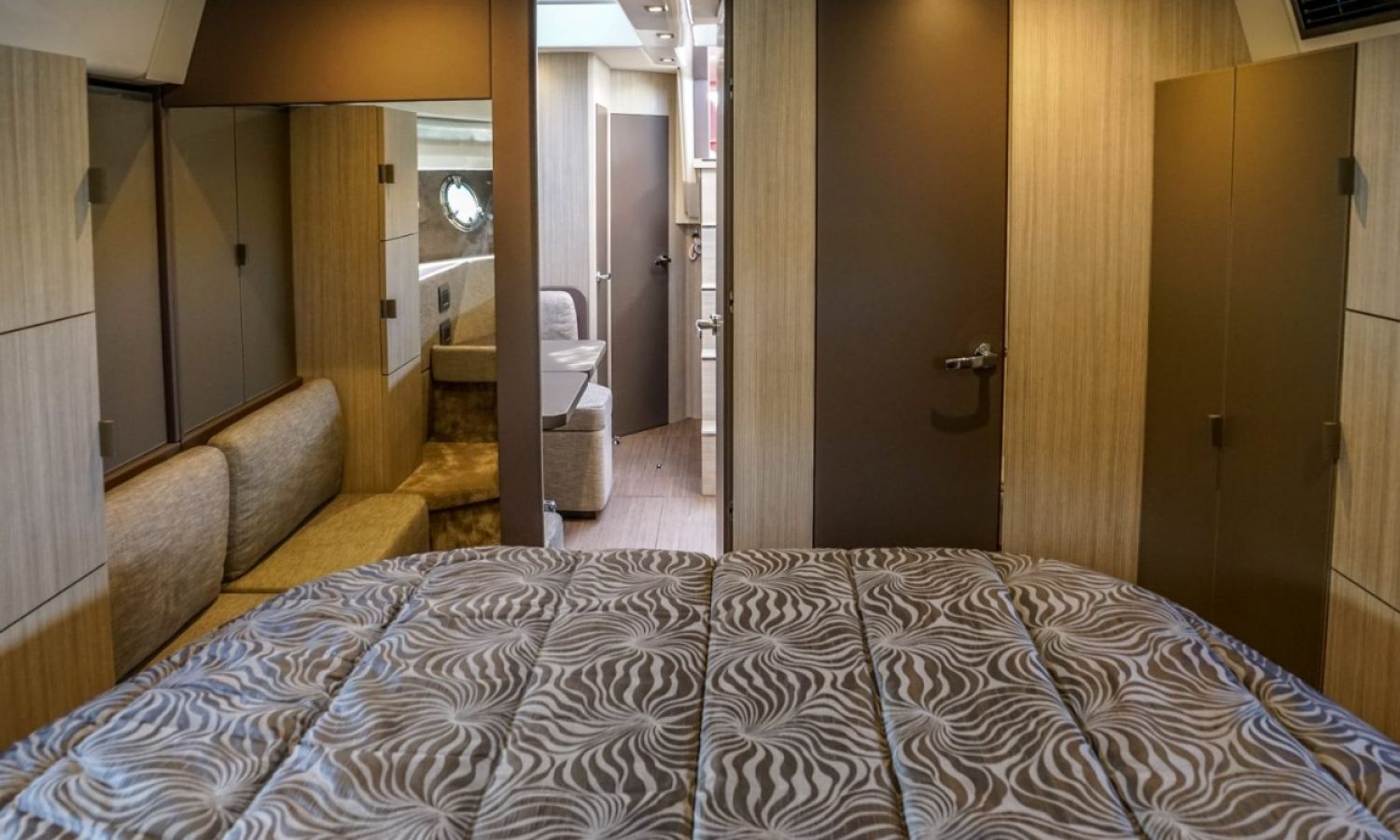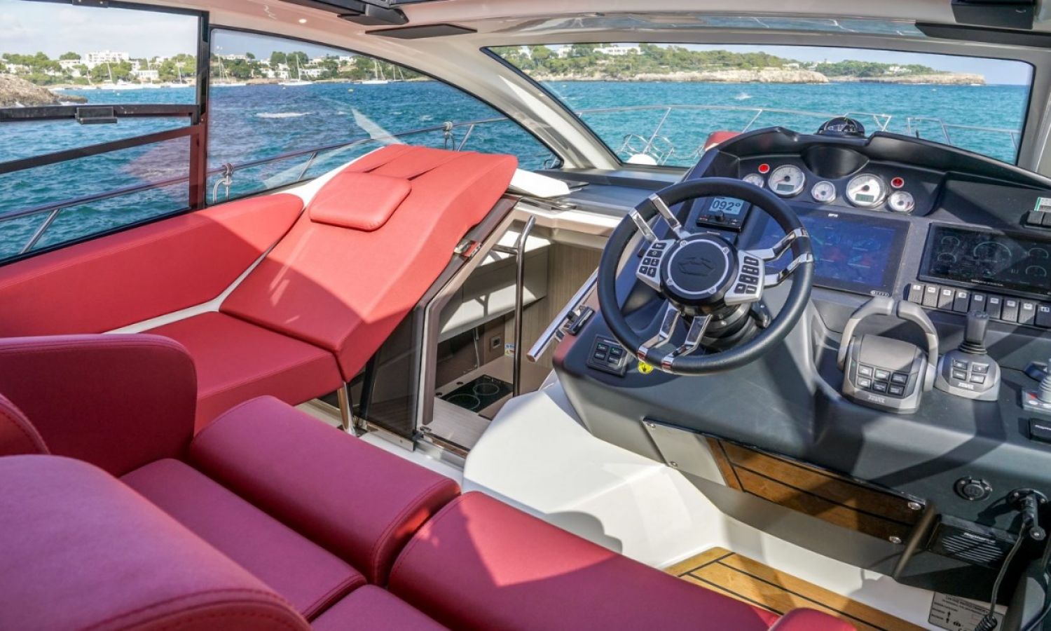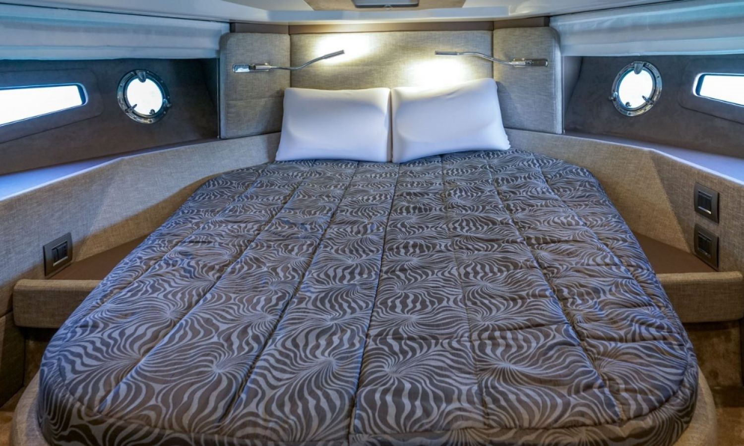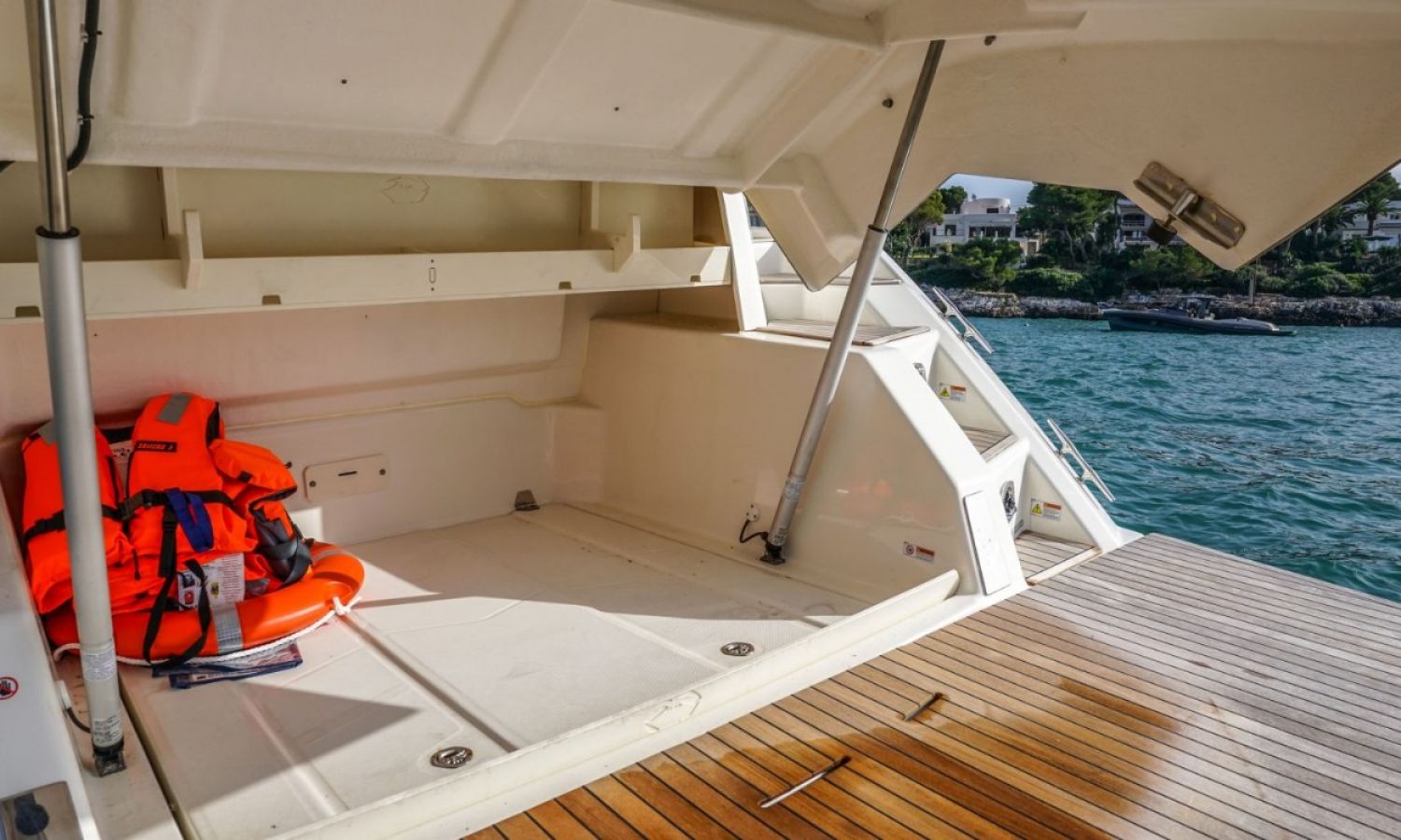 Generador - Hélice de proa - Joystick - Flaps - Toma de puerto 220 V. - Cargador de baterías - Aire acondicionado - Teca en la bañera y plataforma de baño - Mueble-bar con nevera eléctrica y fregadero en la bañera - Molinete de ancla eléctrico - Colchonetas solárium en proa - Ducha en popa - Mesa en la bañera - Mandos motores electrónicos - Gps/Plotter/Sonda/Radar - Piloto automático - Indicador ángulo de timón - Compás - Radio VHF - Equipo de audio - 2 camarotes - 2 baños con WC marinos eléctricos - Depósito de aguas negras - Cocina eléctrica - Microondas.Descripción embarcación