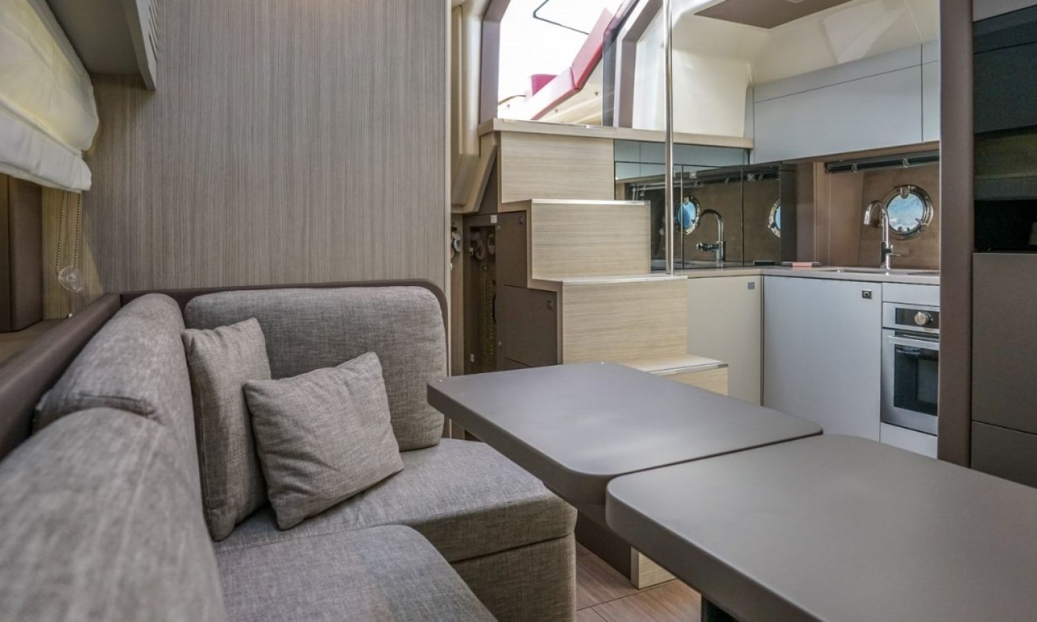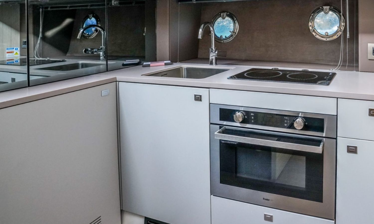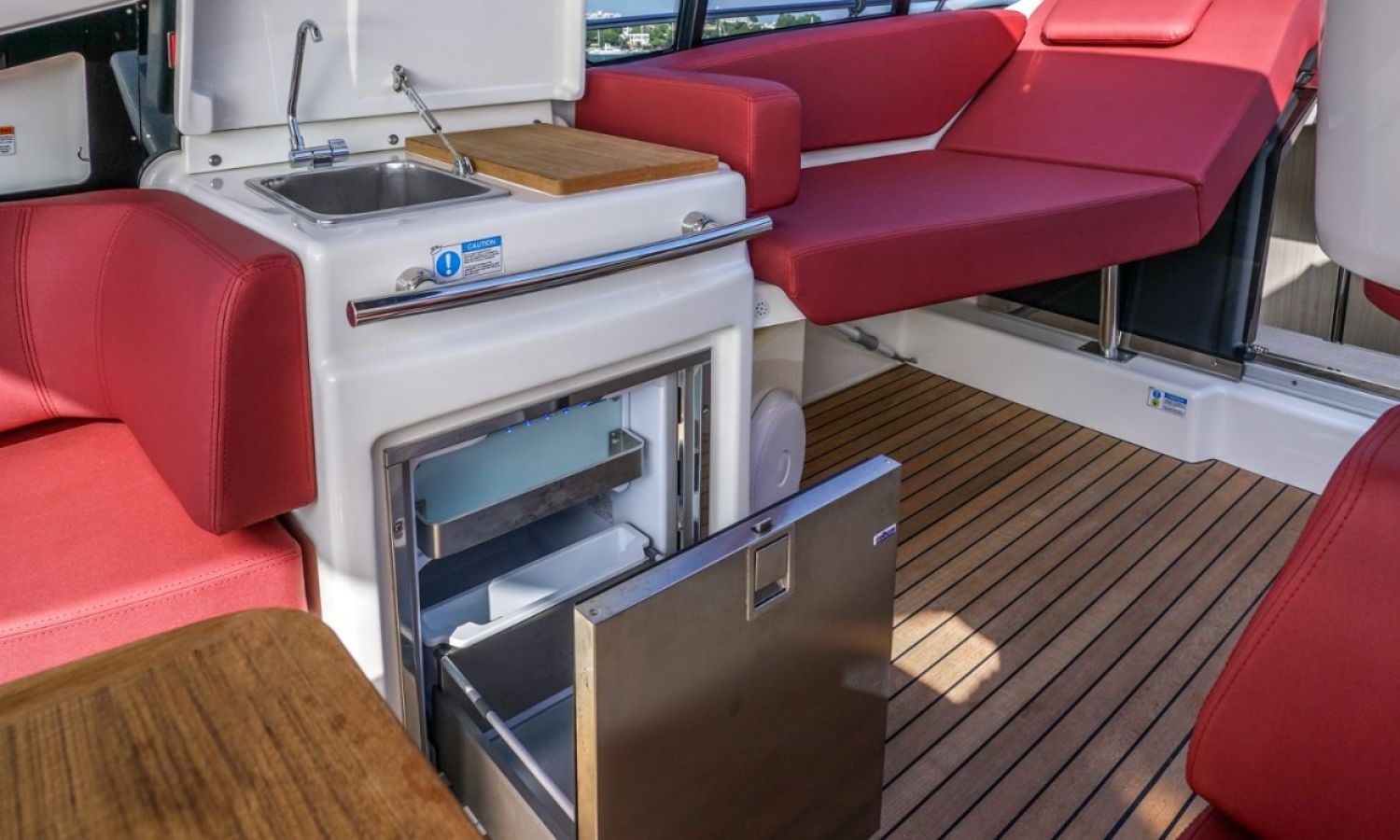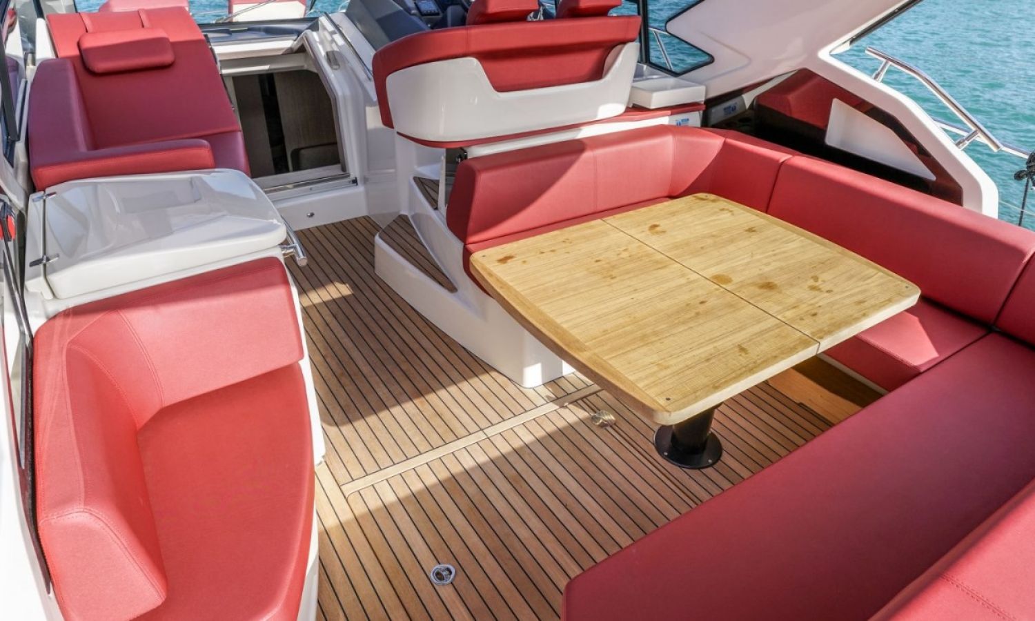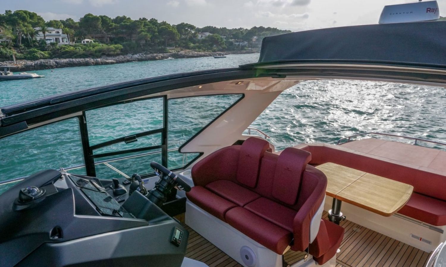 Generador - Hélice de proa - Joystick - Flaps - Toma de puerto 220 V. - Cargador de baterías - Aire acondicionado - Teca en la bañera y plataforma de baño - Mueble-bar con nevera eléctrica y fregadero en la bañera - Molinete de ancla eléctrico - Colchonetas solárium en proa - Ducha en popa - Mesa en la bañera - Mandos motores electrónicos - Gps/Plotter/Sonda/Radar - Piloto automático - Indicador ángulo de timón - Compás - Radio VHF - Equipo de audio - 2 camarotes - 2 baños con WC marinos eléctricos - Depósito de aguas negras - Cocina eléctrica - Microondas.Descripción embarcación
