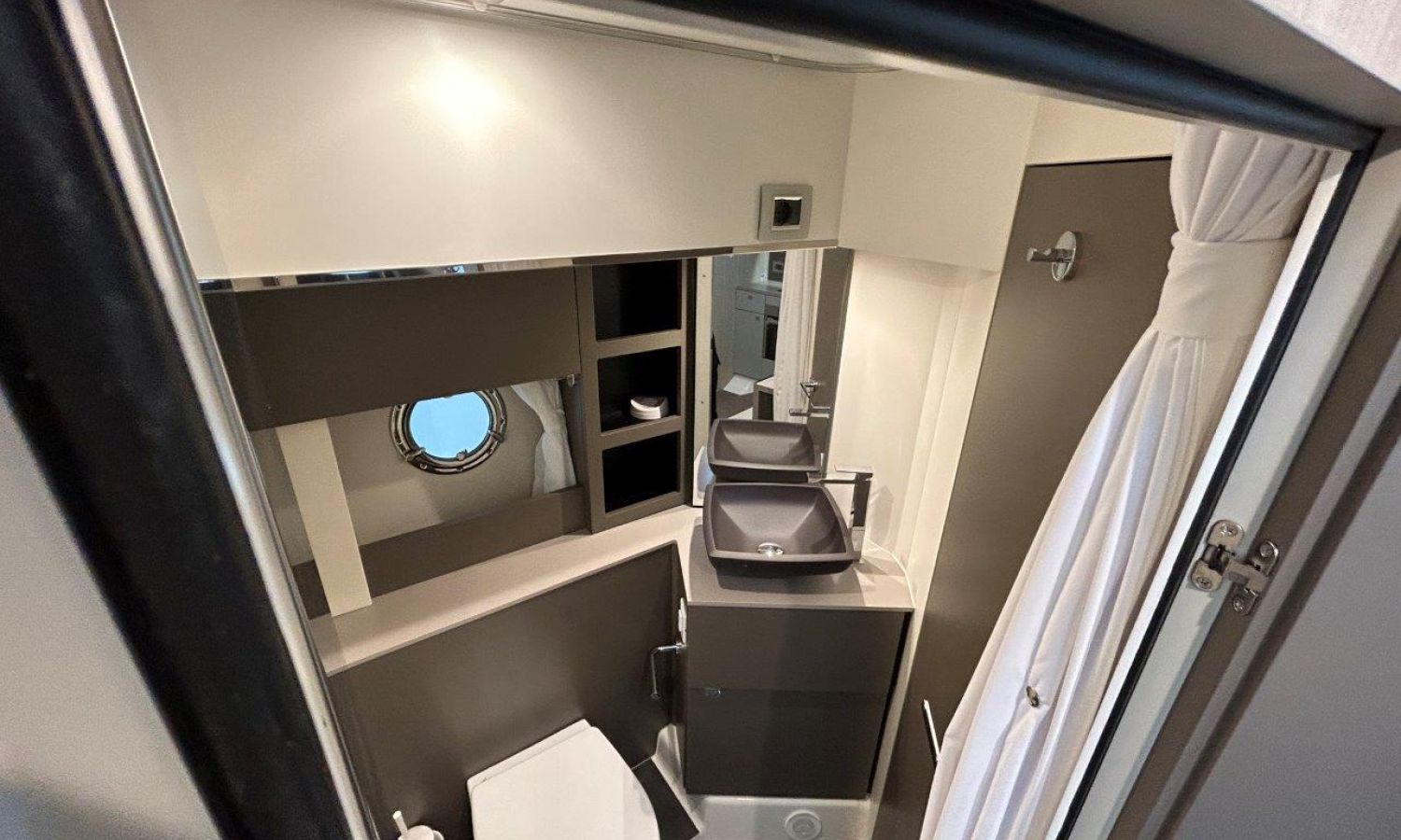 Depósito de aguas negras - Aire acondicionado 16.000 BTU en cabinas con bomba de calor - Aire acondicionado 16.000 BTU refrigeración bañera - Capota completa de popa - Hélice de proa con extintor automático - Frigorífico en bañera - GPS + Chartplotter - Generador 8 kW - Pasarela hidráulica - Plataforma elevadora (reposapiés) plegable en teka para posición de conducción - Piloto automático - Bañera en teka - VHF / DSC - Copia certificado CE y declaración de conformidad - Hard top de color lacado - Preparación, botadura, entrega y prueba de mar - Tranporte astillero a Costa Brava.Descripción embarcación