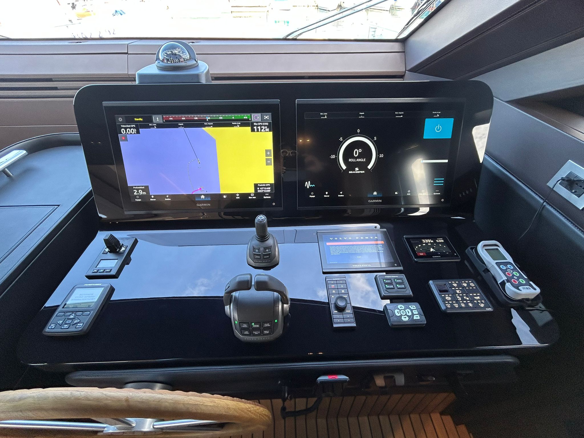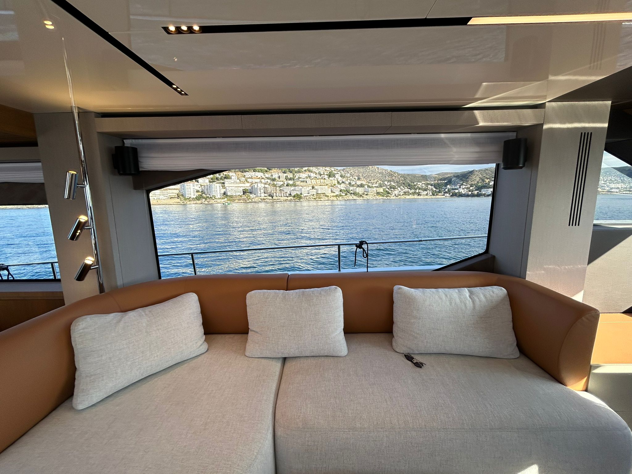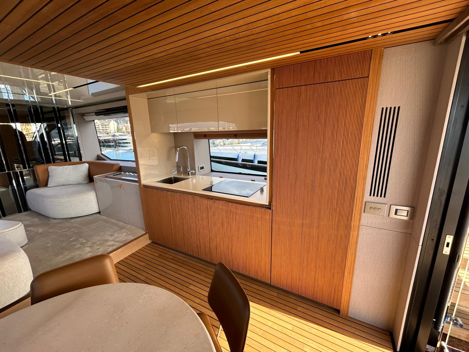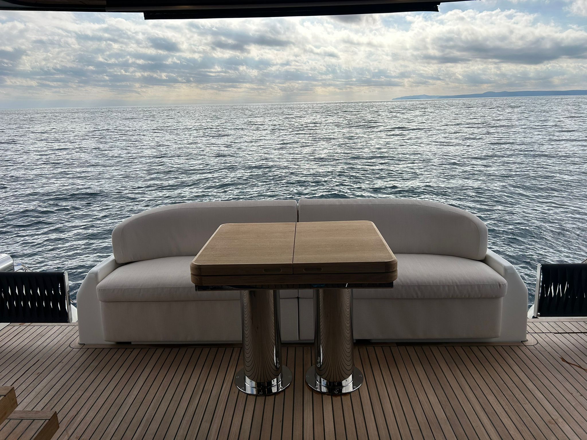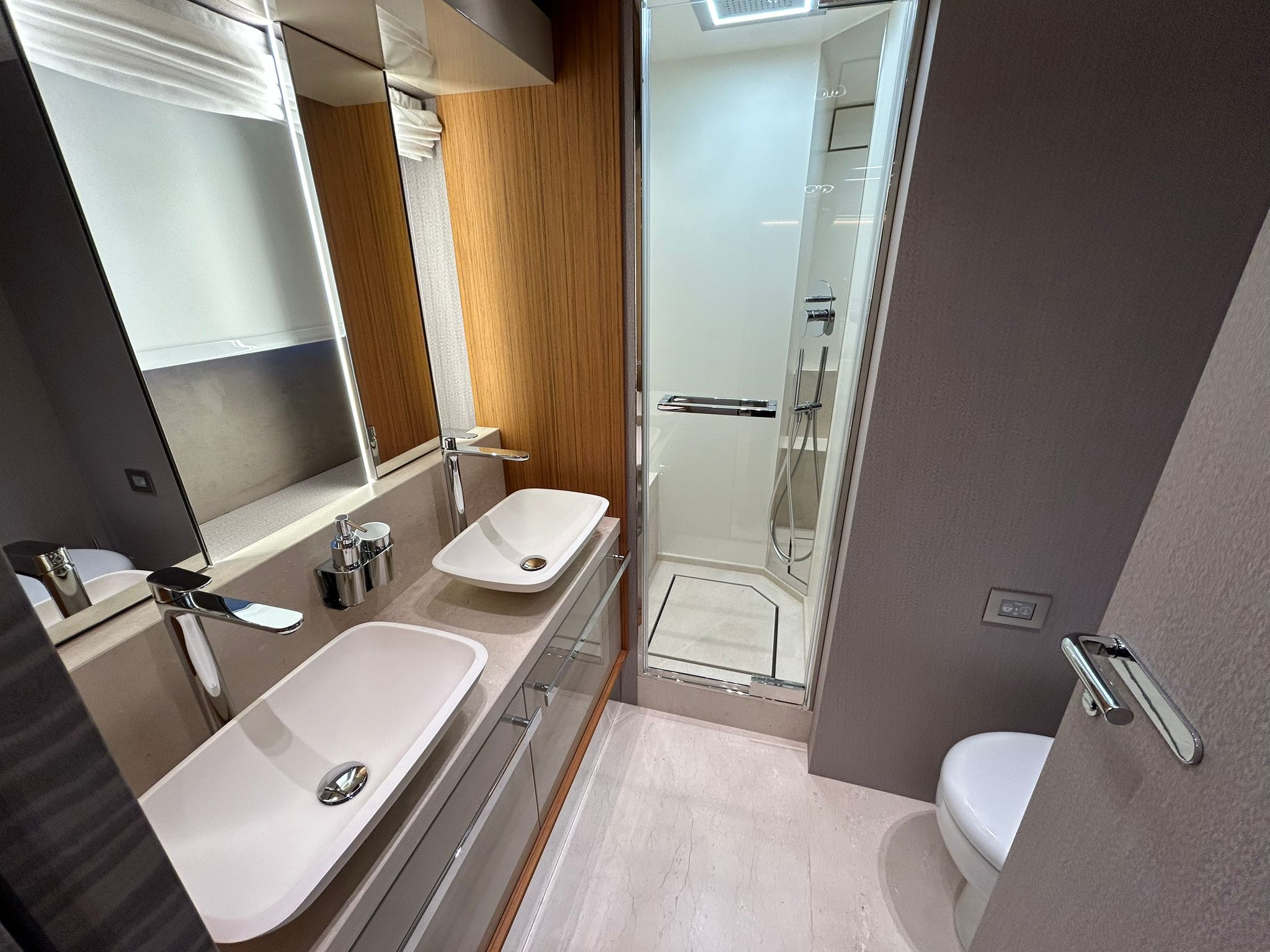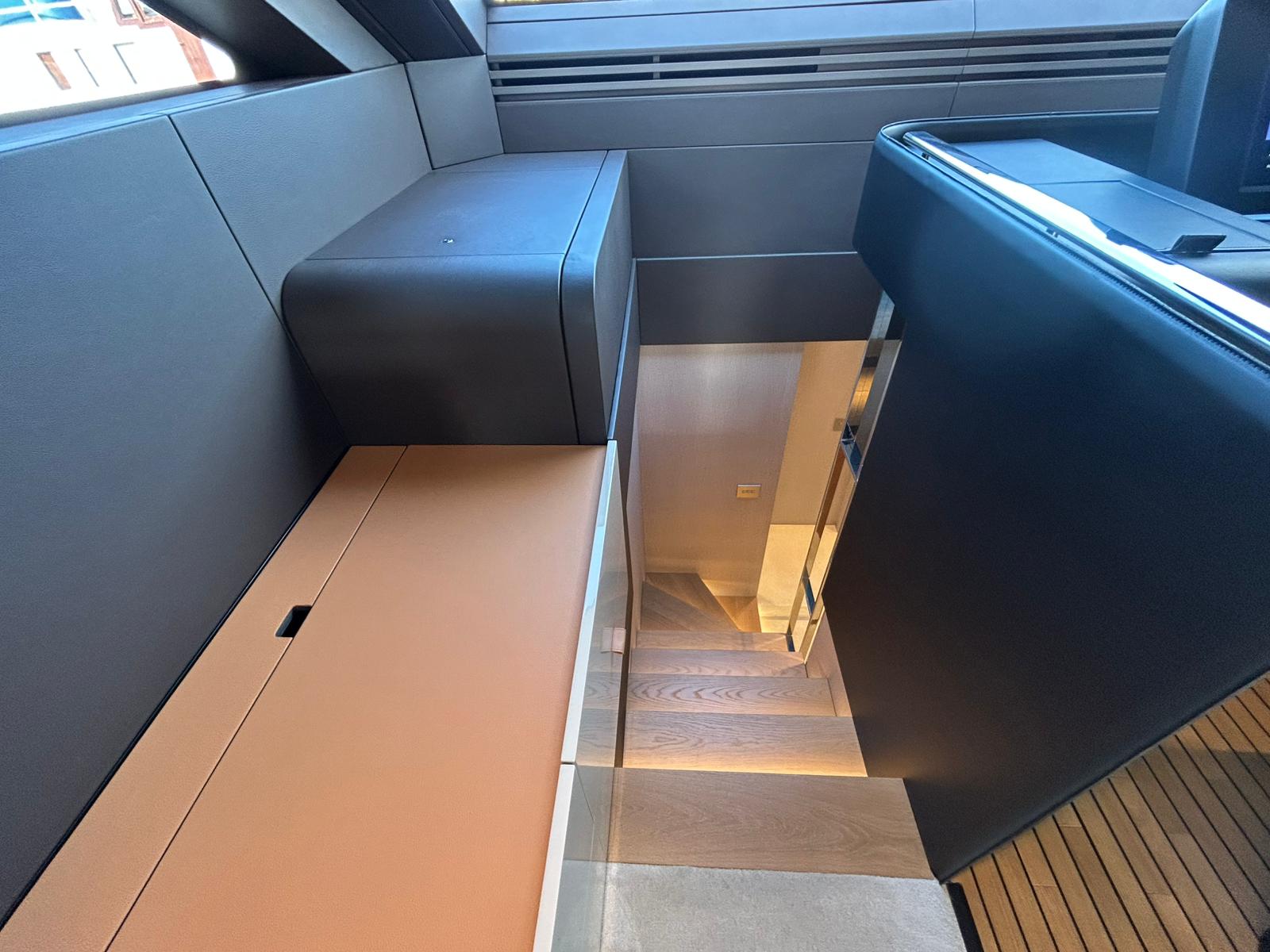 Ancla 60 Kg Ultramarine en acero inoxidable y cadena de acero inoxidable de 100 m - Enrolladores eléctricos cable línea de muelle de 20 m con mando a distancia - Zona de playa a popa: ducha con radio, luces y cargador inalámbrico para smartphone - Lino para 3 camarotes y cabina marinero: set de sábanas, fundas de almohadas, funda de colchón, colcha, toallas, etc. - Bidé en el baño de la cabina del armador - Bimini top de proa con palos de carbono - Cajafuerte electrónica en cabina armador - 6 cabos de amarre - Cobertura para dinette en bañera de popa - Coberturas flybridge - Desalinizadora 160 l/h con mando en cabina y sistema lavado con agua dulce - Hélice de proa proporcional - Faro pirata - Nevera en el sofá de la colchoneta de proa - Suplemento generador de 20,5 kW - Tercer puesto de mando en la bañera - Máquina de hielo con tanque de agua separado - Lavadora y secadora Miele - 7 Luces subacuáticas (3 a popa y 2 a cada lado) - Oscurantes para cristales de proa y laterales - Bimini top de popa vertical - Escotilla eléctrica en la timonería - Pasarela hidráulica telescópica retráctil - Fin Stabilizations System Humphree - Asiento interior copiloto - Puerta de acceso lateral a popa estribor - Puerta de acceso lateral a popa babor - Segunda pantalla plotter 22" en flybridge - Segunda pantalla plotter 22" en cubierta principal - Set de vajilla, vasos y cubiertos para 6 personas - Estabilizador giroscópico Seakeeper 9 - Surround view camera system Garmin - Superficie de teka en los trancaniles laterales proa/popa - Teka en el flybridge - Toldo de popa eléctrico en el flybridge - T-Top flybridge con láminas de apertura eléctrica - TV LED en salón con dispositivo eléctrico retráctil y sistema Home Theatre - TV 55" LED en cabina del armador y radio Bluetooth/USB - TV 43" LED en la cabina VIP y radio Bluetooth/USB - Certificado CE y declaración de conformidad - Transporte, montaje con varada y control general en el Cranchi Marine Test Centre en Venecia - Suplemento transporte T-Top - Decoración interior "Amalfi": combinación de colores de los muebles, suelos de madera, tejidos y mármoles - Pintura de la línea de belleza en el casco de color negro - T-Top lacado negro - 2 Cúpulas vacías para antena satélite TV6/60 cm.Descripción embarcación