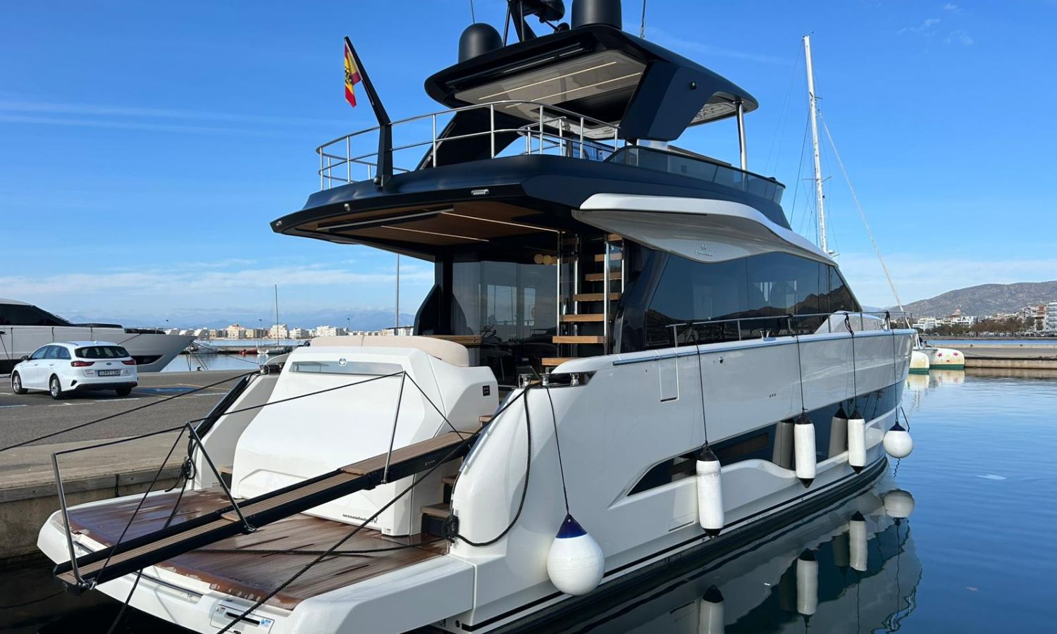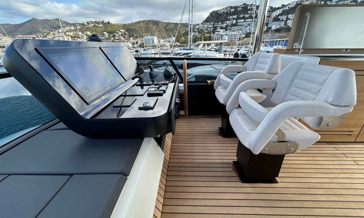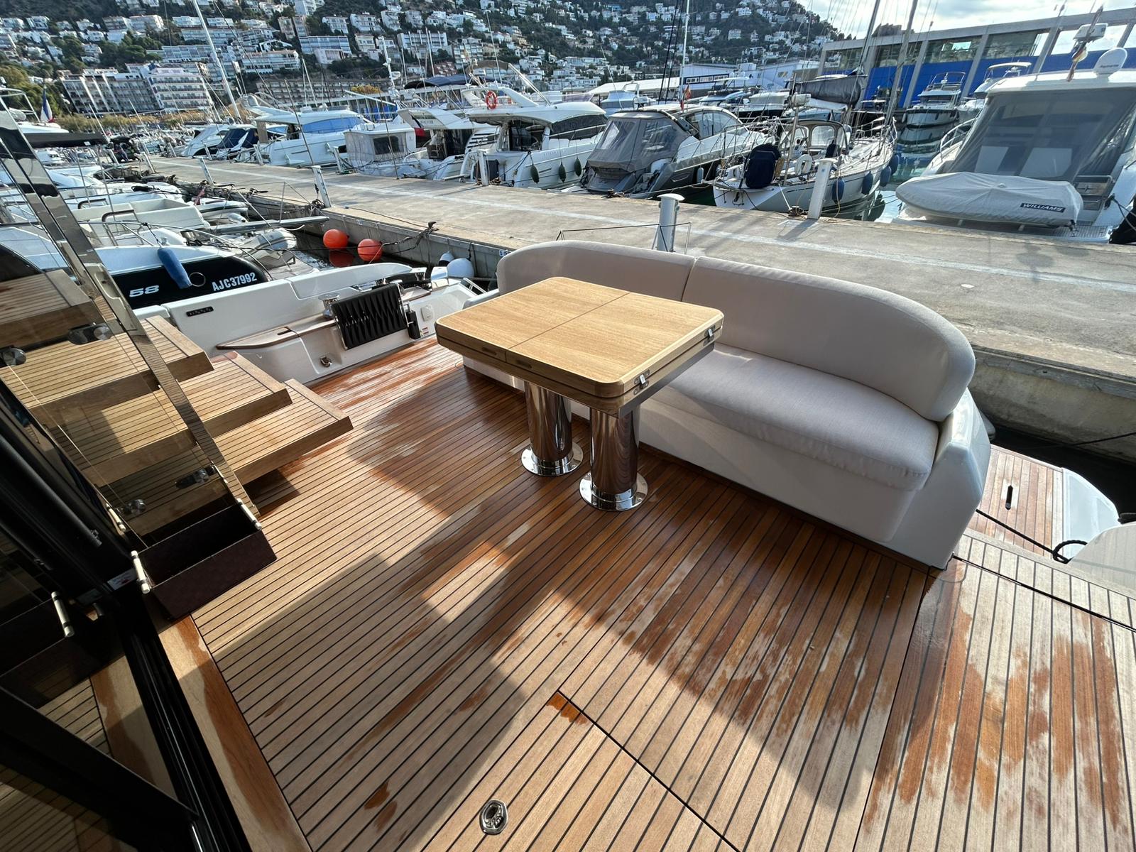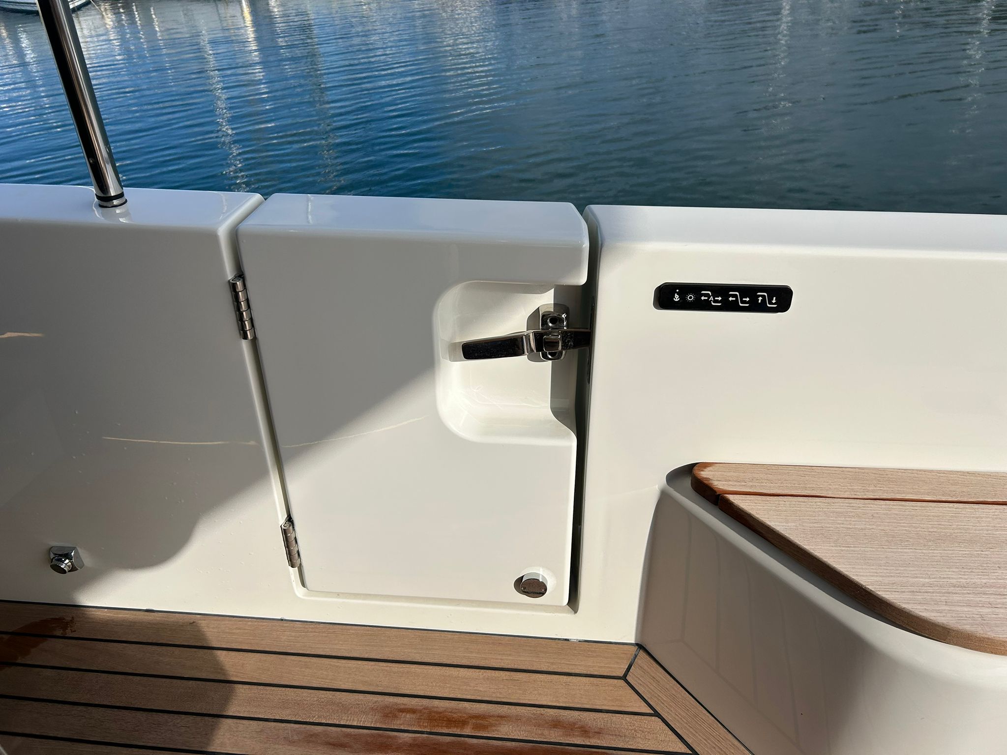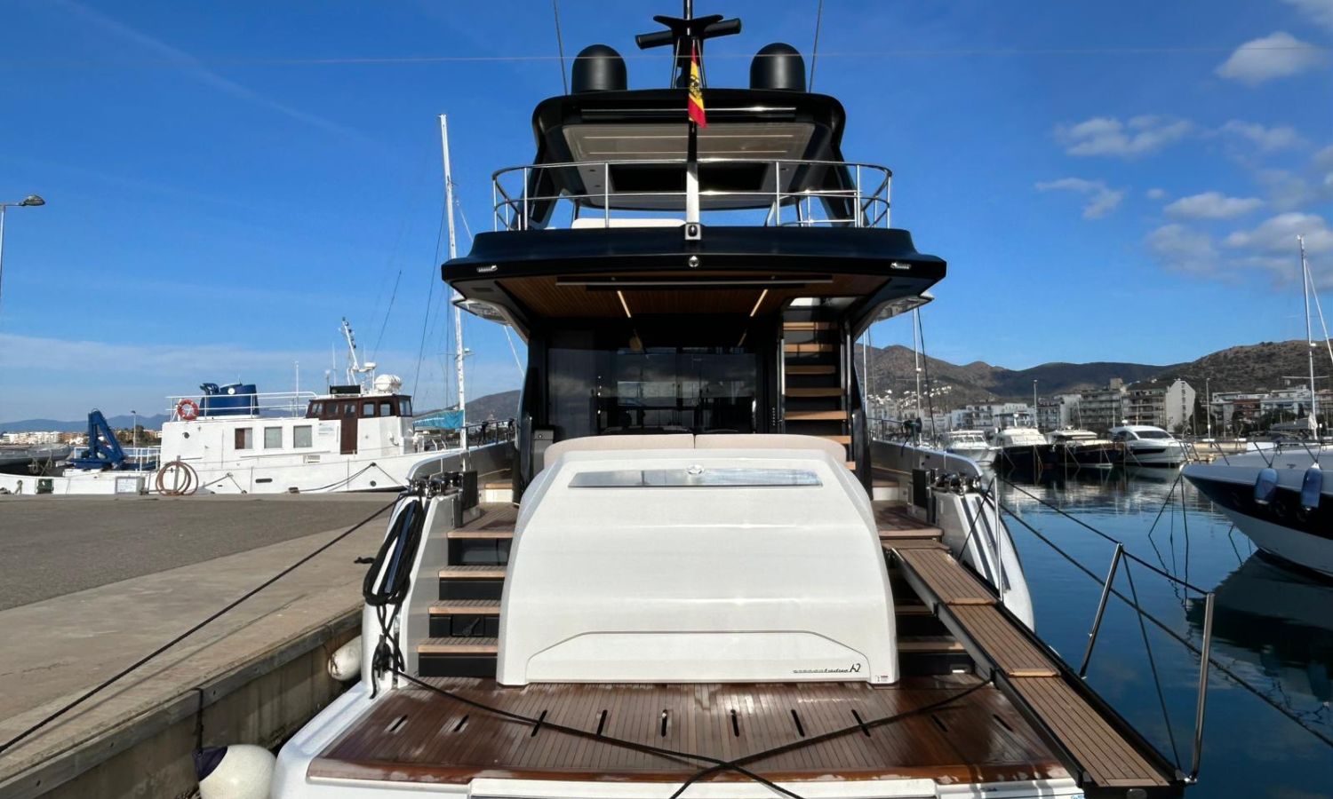 Ancla 60 Kg Ultramarine en acero inoxidable y cadena de acero inoxidable de 100 m - Enrolladores eléctricos cable línea de muelle de 20 m con mando a distancia - Zona de playa a popa: ducha con radio, luces y cargador inalámbrico para smartphone - Lino para 3 camarotes y cabina marinero: set de sábanas, fundas de almohadas, funda de colchón, colcha, toallas, etc. - Bidé en el baño de la cabina del armador - Bimini top de proa con palos de carbono - Cajafuerte electrónica en cabina armador - 6 cabos de amarre - Cobertura para dinette en bañera de popa - Coberturas flybridge - Desalinizadora 160 l/h con mando en cabina y sistema lavado con agua dulce - Hélice de proa proporcional - Faro pirata - Nevera en el sofá de la colchoneta de proa - Suplemento generador de 20,5 kW - Tercer puesto de mando en la bañera - Máquina de hielo con tanque de agua separado - Lavadora y secadora Miele - 7 Luces subacuáticas (3 a popa y 2 a cada lado) - Oscurantes para cristales de proa y laterales - Bimini top de popa vertical - Escotilla eléctrica en la timonería - Pasarela hidráulica telescópica retráctil - Fin Stabilizations System Humphree - Asiento interior copiloto - Puerta de acceso lateral a popa estribor - Puerta de acceso lateral a popa babor - Segunda pantalla plotter 22" en flybridge - Segunda pantalla plotter 22" en cubierta principal - Set de vajilla, vasos y cubiertos para 6 personas - Estabilizador giroscópico Seakeeper 9 - Surround view camera system Garmin - Superficie de teka en los trancaniles laterales proa/popa - Teka en el flybridge - Toldo de popa eléctrico en el flybridge - T-Top flybridge con láminas de apertura eléctrica - TV LED en salón con dispositivo eléctrico retráctil y sistema Home Theatre - TV 55" LED en cabina del armador y radio Bluetooth/USB - TV 43" LED en la cabina VIP y radio Bluetooth/USB - Certificado CE y declaración de conformidad - Transporte, montaje con varada y control general en el Cranchi Marine Test Centre en Venecia - Suplemento transporte T-Top - Decoración interior "Amalfi": combinación de colores de los muebles, suelos de madera, tejidos y mármoles - Pintura de la línea de belleza en el casco de color negro - T-Top lacado negro - 2 Cúpulas vacías para antena satélite TV6/60 cm.Descripción embarcación