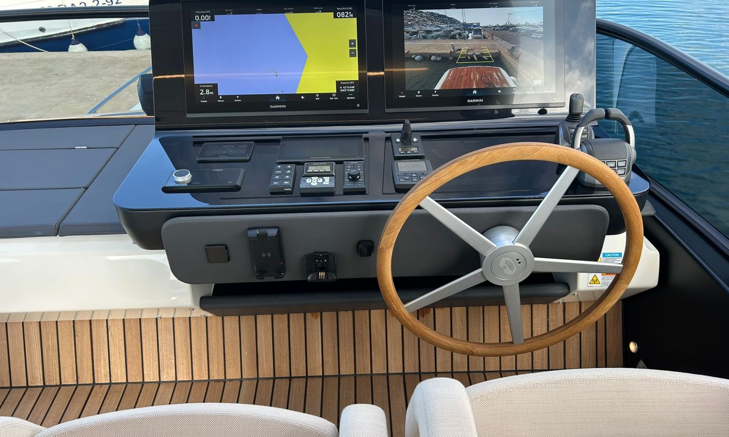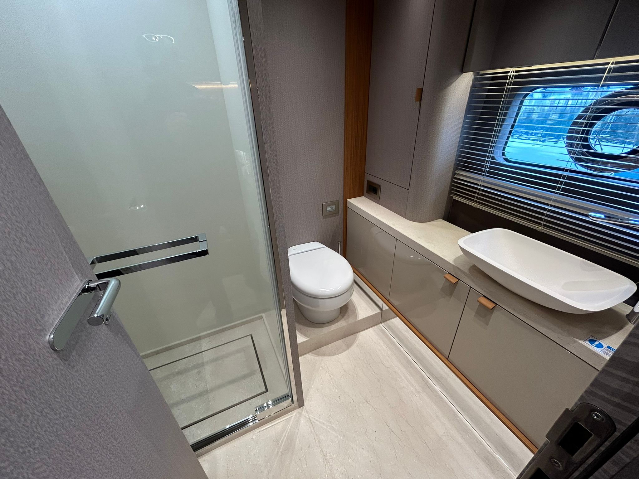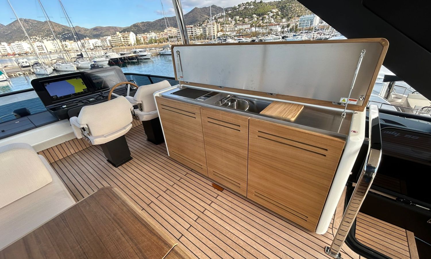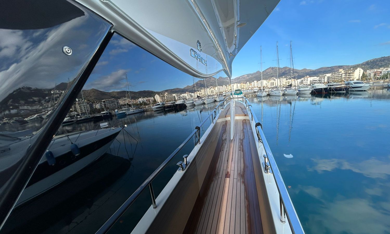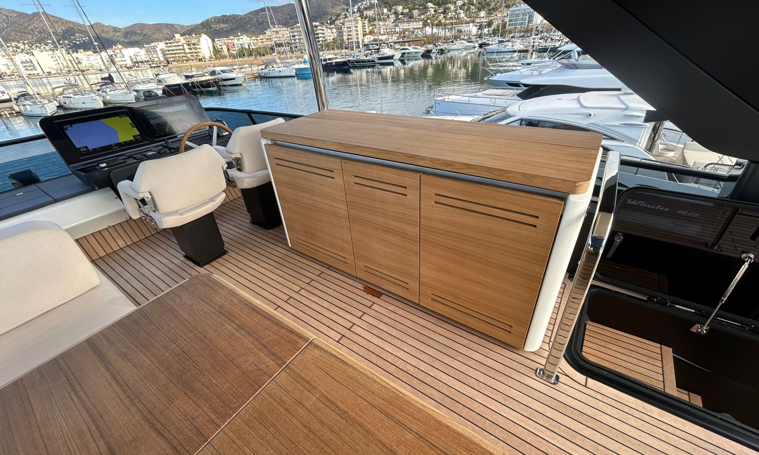 Ancla 60 Kg Ultramarine en acero inoxidable y cadena de acero inoxidable de 100 m - Enrolladores eléctricos cable línea de muelle de 20 m con mando a distancia - Zona de playa a popa: ducha con radio, luces y cargador inalámbrico para smartphone - Lino para 3 camarotes y cabina marinero: set de sábanas, fundas de almohadas, funda de colchón, colcha, toallas, etc. - Bidé en el baño de la cabina del armador - Bimini top de proa con palos de carbono - Cajafuerte electrónica en cabina armador - 6 cabos de amarre - Cobertura para dinette en bañera de popa - Coberturas flybridge - Desalinizadora 160 l/h con mando en cabina y sistema lavado con agua dulce - Hélice de proa proporcional - Faro pirata - Nevera en el sofá de la colchoneta de proa - Suplemento generador de 20,5 kW - Tercer puesto de mando en la bañera - Máquina de hielo con tanque de agua separado - Lavadora y secadora Miele - 7 Luces subacuáticas (3 a popa y 2 a cada lado) - Oscurantes para cristales de proa y laterales - Bimini top de popa vertical - Escotilla eléctrica en la timonería - Pasarela hidráulica telescópica retráctil - Fin Stabilizations System Humphree - Asiento interior copiloto - Puerta de acceso lateral a popa estribor - Puerta de acceso lateral a popa babor - Segunda pantalla plotter 22" en flybridge - Segunda pantalla plotter 22" en cubierta principal - Set de vajilla, vasos y cubiertos para 6 personas - Estabilizador giroscópico Seakeeper 9 - Surround view camera system Garmin - Superficie de teka en los trancaniles laterales proa/popa - Teka en el flybridge - Toldo de popa eléctrico en el flybridge - T-Top flybridge con láminas de apertura eléctrica - TV LED en salón con dispositivo eléctrico retráctil y sistema Home Theatre - TV 55" LED en cabina del armador y radio Bluetooth/USB - TV 43" LED en la cabina VIP y radio Bluetooth/USB - Certificado CE y declaración de conformidad - Transporte, montaje con varada y control general en el Cranchi Marine Test Centre en Venecia - Suplemento transporte T-Top - Decoración interior "Amalfi": combinación de colores de los muebles, suelos de madera, tejidos y mármoles - Pintura de la línea de belleza en el casco de color negro - T-Top lacado negro - 2 Cúpulas vacías para antena satélite TV6/60 cm.Descripción embarcación