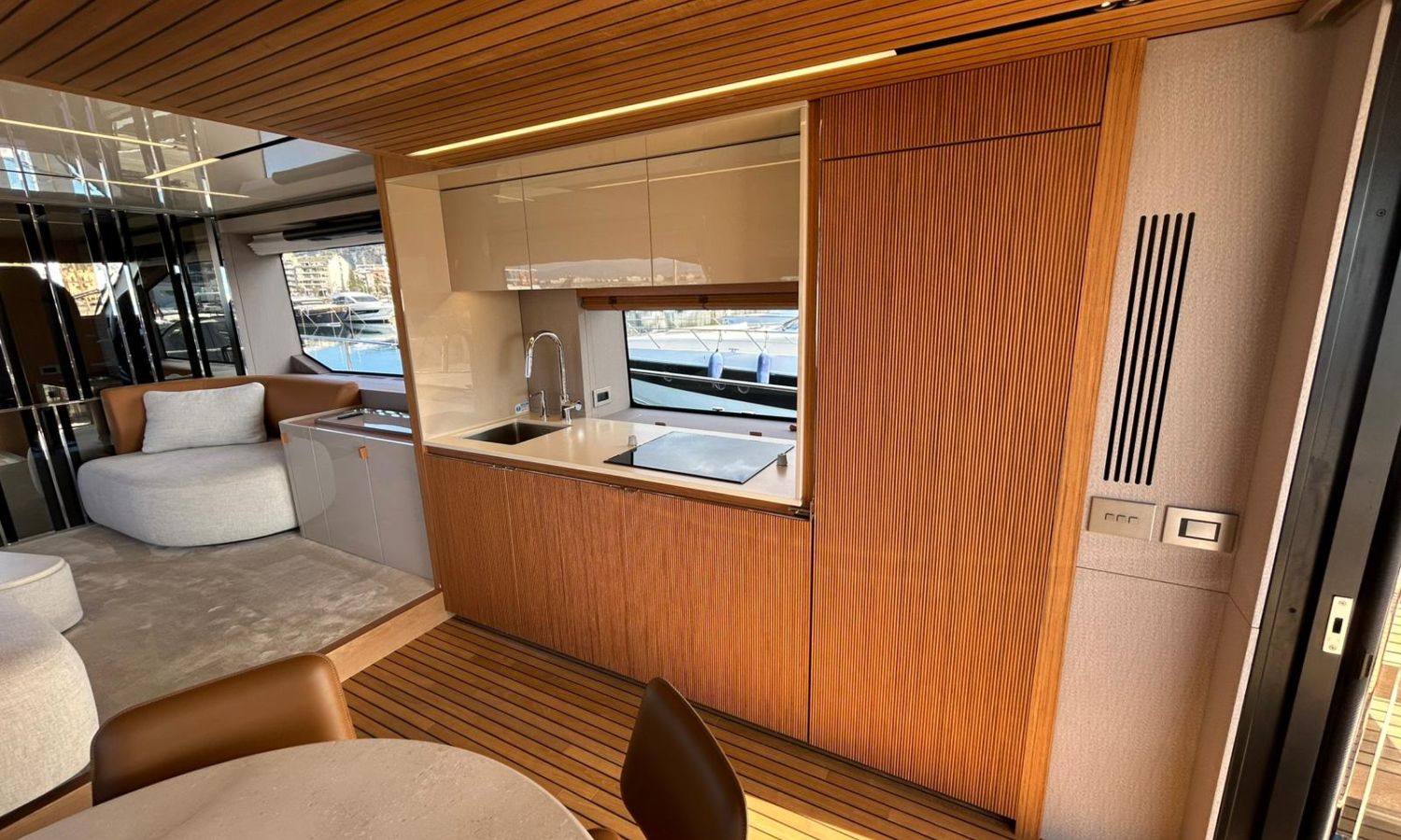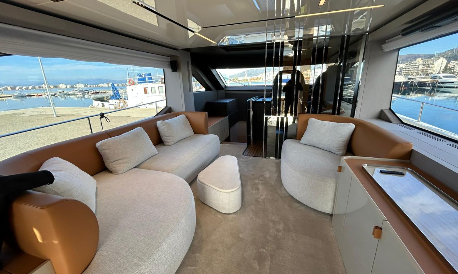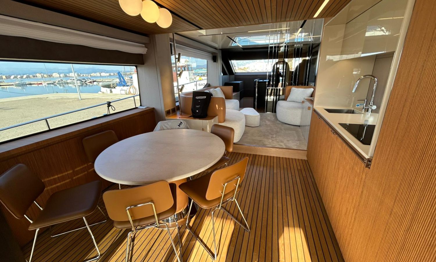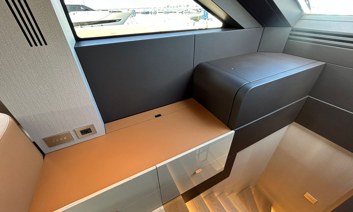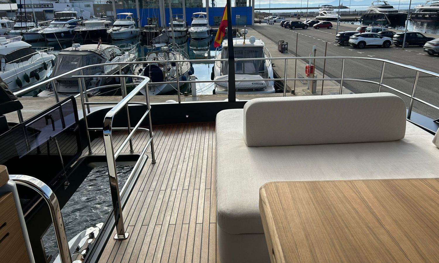 Ancla 60 Kg Ultramarine en acero inoxidable y cadena de acero inoxidable de 100 m - Enrolladores eléctricos cable línea de muelle de 20 m con mando a distancia - Zona de playa a popa: ducha con radio, luces y cargador inalámbrico para smartphone - Lino para 3 camarotes y cabina marinero: set de sábanas, fundas de almohadas, funda de colchón, colcha, toallas, etc. - Bidé en el baño de la cabina del armador - Bimini top de proa con palos de carbono - Cajafuerte electrónica en cabina armador - 6 cabos de amarre - Cobertura para dinette en bañera de popa - Coberturas flybridge - Desalinizadora 160 l/h con mando en cabina y sistema lavado con agua dulce - Hélice de proa proporcional - Faro pirata - Nevera en el sofá de la colchoneta de proa - Suplemento generador de 20,5 kW - Tercer puesto de mando en la bañera - Máquina de hielo con tanque de agua separado - Lavadora y secadora Miele - 7 Luces subacuáticas (3 a popa y 2 a cada lado) - Oscurantes para cristales de proa y laterales - Bimini top de popa vertical - Escotilla eléctrica en la timonería - Pasarela hidráulica telescópica retráctil - Fin Stabilizations System Humphree - Asiento interior copiloto - Puerta de acceso lateral a popa estribor - Puerta de acceso lateral a popa babor - Segunda pantalla plotter 22" en flybridge - Segunda pantalla plotter 22" en cubierta principal - Set de vajilla, vasos y cubiertos para 6 personas - Estabilizador giroscópico Seakeeper 9 - Surround view camera system Garmin - Superficie de teka en los trancaniles laterales proa/popa - Teka en el flybridge - Toldo de popa eléctrico en el flybridge - T-Top flybridge con láminas de apertura eléctrica - TV LED en salón con dispositivo eléctrico retráctil y sistema Home Theatre - TV 55" LED en cabina del armador y radio Bluetooth/USB - TV 43" LED en la cabina VIP y radio Bluetooth/USB - Certificado CE y declaración de conformidad - Transporte, montaje con varada y control general en el Cranchi Marine Test Centre en Venecia - Suplemento transporte T-Top - Decoración interior "Amalfi": combinación de colores de los muebles, suelos de madera, tejidos y mármoles - Pintura de la línea de belleza en el casco de color negro - T-Top lacado negro - 2 Cúpulas vacías para antena satélite TV6/60 cm.Descripción embarcación