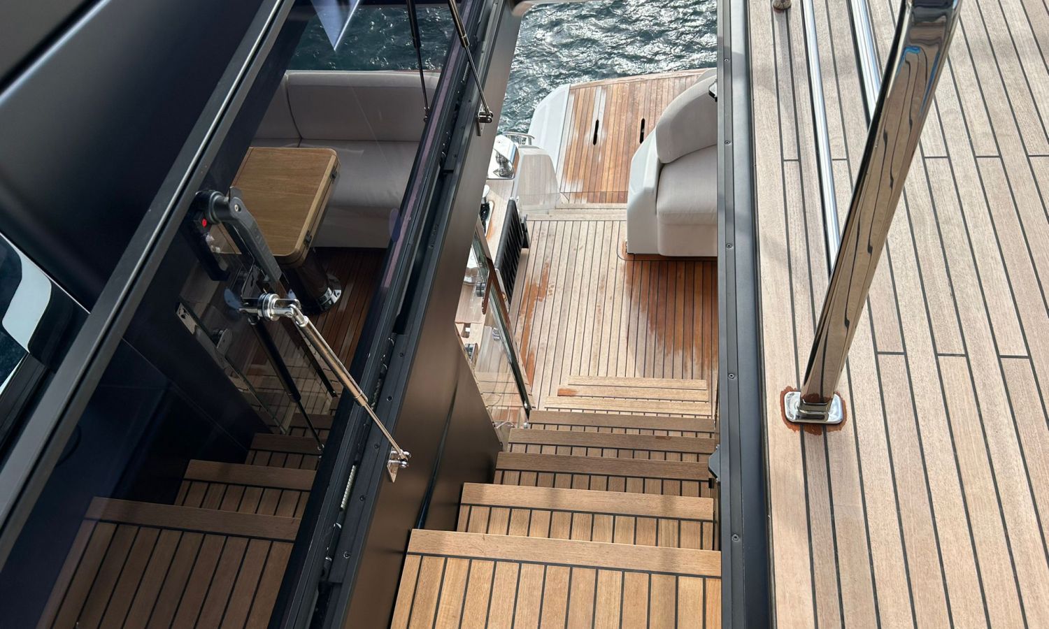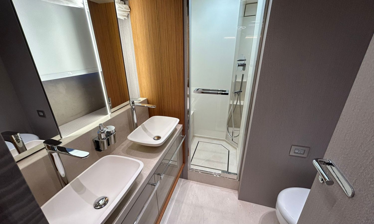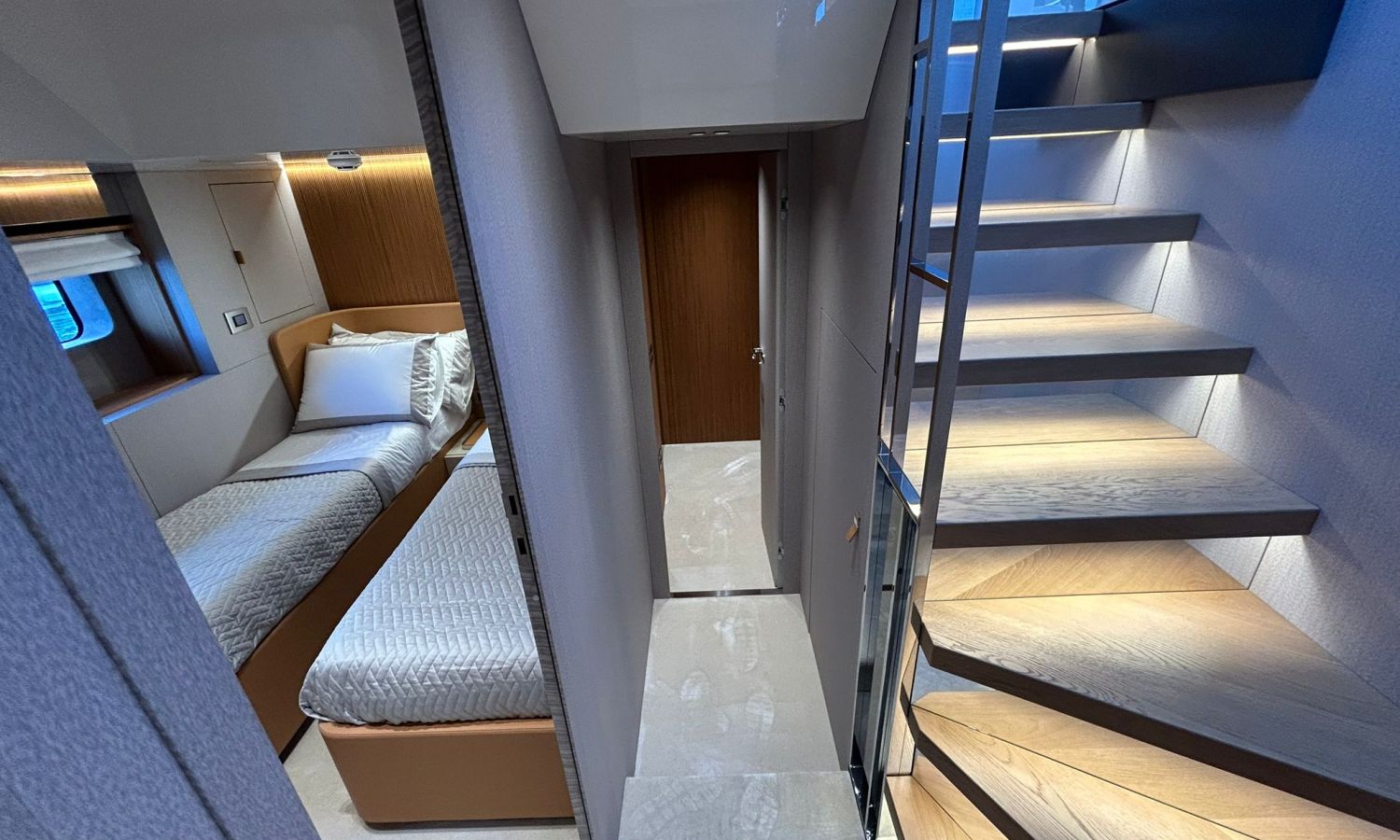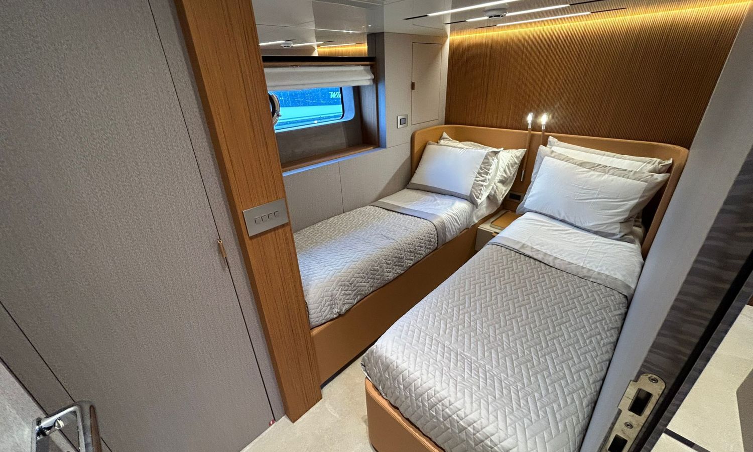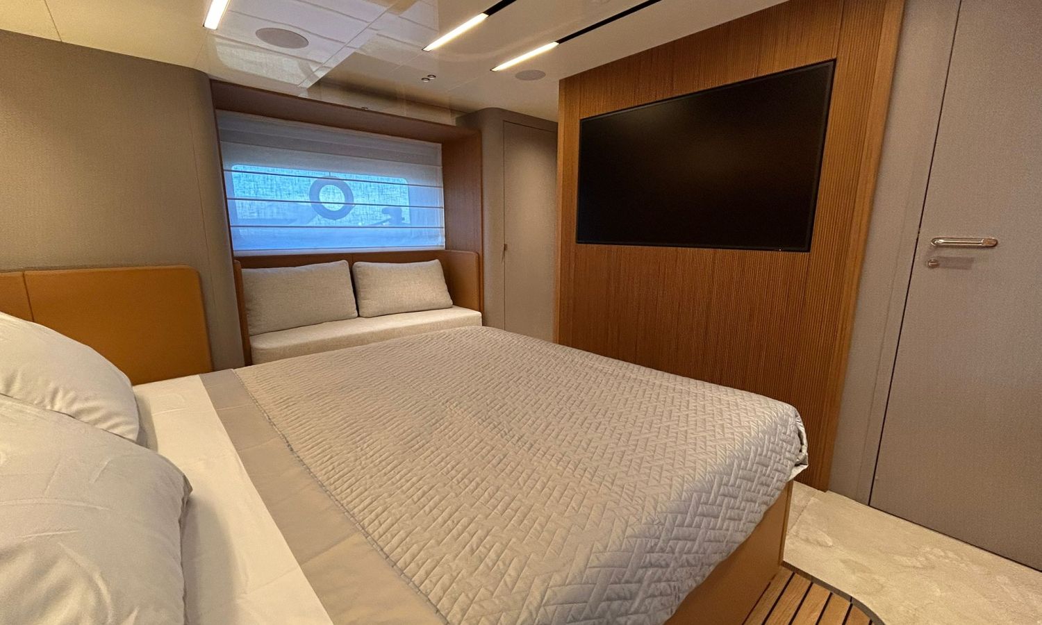 Ancla 60 Kg Ultramarine en acero inoxidable y cadena de acero inoxidable de 100 m - Enrolladores eléctricos cable línea de muelle de 20 m con mando a distancia - Zona de playa a popa: ducha con radio, luces y cargador inalámbrico para smartphone - Lino para 3 camarotes y cabina marinero: set de sábanas, fundas de almohadas, funda de colchón, colcha, toallas, etc. - Bidé en el baño de la cabina del armador - Bimini top de proa con palos de carbono - Cajafuerte electrónica en cabina armador - 6 cabos de amarre - Cobertura para dinette en bañera de popa - Coberturas flybridge - Desalinizadora 160 l/h con mando en cabina y sistema lavado con agua dulce - Hélice de proa proporcional - Faro pirata - Nevera en el sofá de la colchoneta de proa - Suplemento generador de 20,5 kW - Tercer puesto de mando en la bañera - Máquina de hielo con tanque de agua separado - Lavadora y secadora Miele - 7 Luces subacuáticas (3 a popa y 2 a cada lado) - Oscurantes para cristales de proa y laterales - Bimini top de popa vertical - Escotilla eléctrica en la timonería - Pasarela hidráulica telescópica retráctil - Fin Stabilizations System Humphree - Asiento interior copiloto - Puerta de acceso lateral a popa estribor - Puerta de acceso lateral a popa babor - Segunda pantalla plotter 22" en flybridge - Segunda pantalla plotter 22" en cubierta principal - Set de vajilla, vasos y cubiertos para 6 personas - Estabilizador giroscópico Seakeeper 9 - Surround view camera system Garmin - Superficie de teka en los trancaniles laterales proa/popa - Teka en el flybridge - Toldo de popa eléctrico en el flybridge - T-Top flybridge con láminas de apertura eléctrica - TV LED en salón con dispositivo eléctrico retráctil y sistema Home Theatre - TV 55" LED en cabina del armador y radio Bluetooth/USB - TV 43" LED en la cabina VIP y radio Bluetooth/USB - Certificado CE y declaración de conformidad - Transporte, montaje con varada y control general en el Cranchi Marine Test Centre en Venecia - Suplemento transporte T-Top - Decoración interior "Amalfi": combinación de colores de los muebles, suelos de madera, tejidos y mármoles - Pintura de la línea de belleza en el casco de color negro - T-Top lacado negro - 2 Cúpulas vacías para antena satélite TV6/60 cm.Descripción embarcación