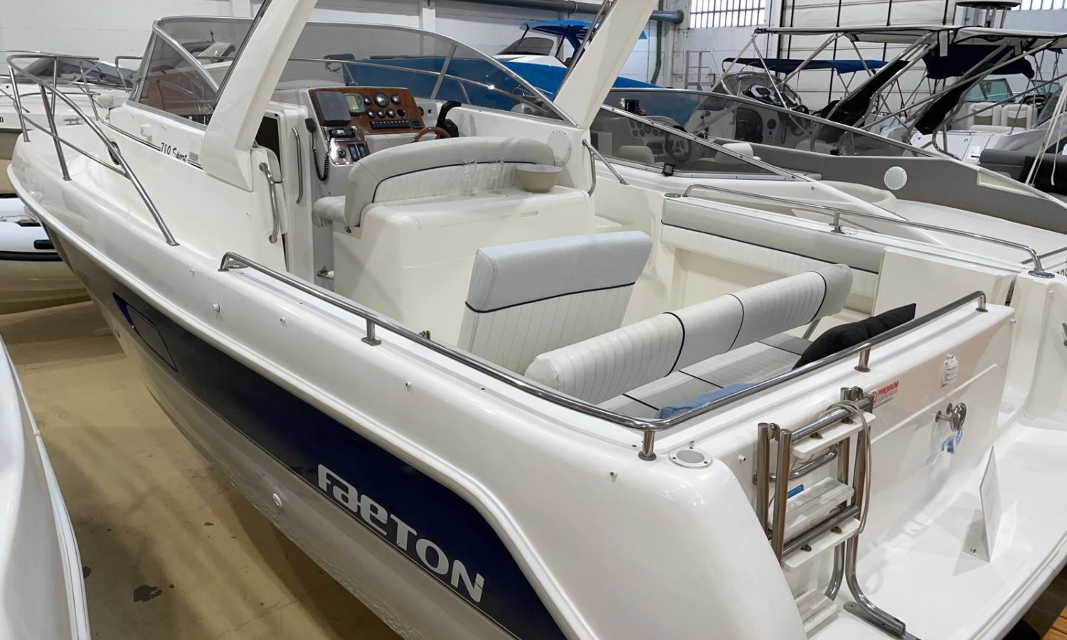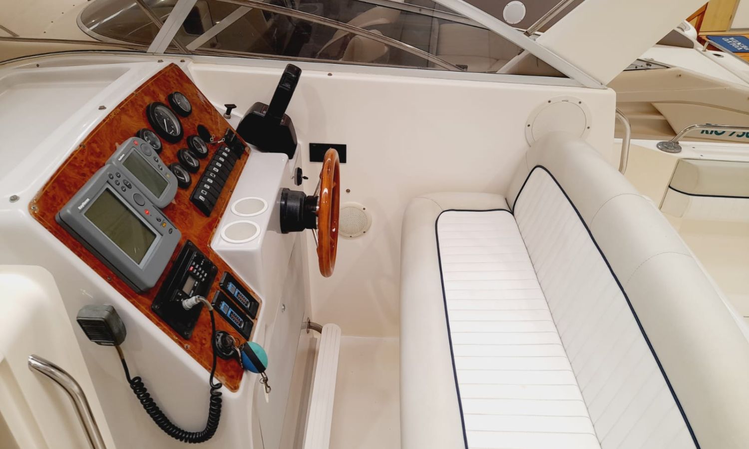 Toldo parasol - Lona de fondeo - Plataforma de baño con escalera - Ducha en popa - Mesa en la bañera - Flaps - Cojines solarium proa - Fregadero - Equipo audio - Sonda - VHF - Compas - Gancho de ski - Molinete eléctrico con ancla y cadena - Wc con depósito aguas negras - AntifoulingDescripción embarcación