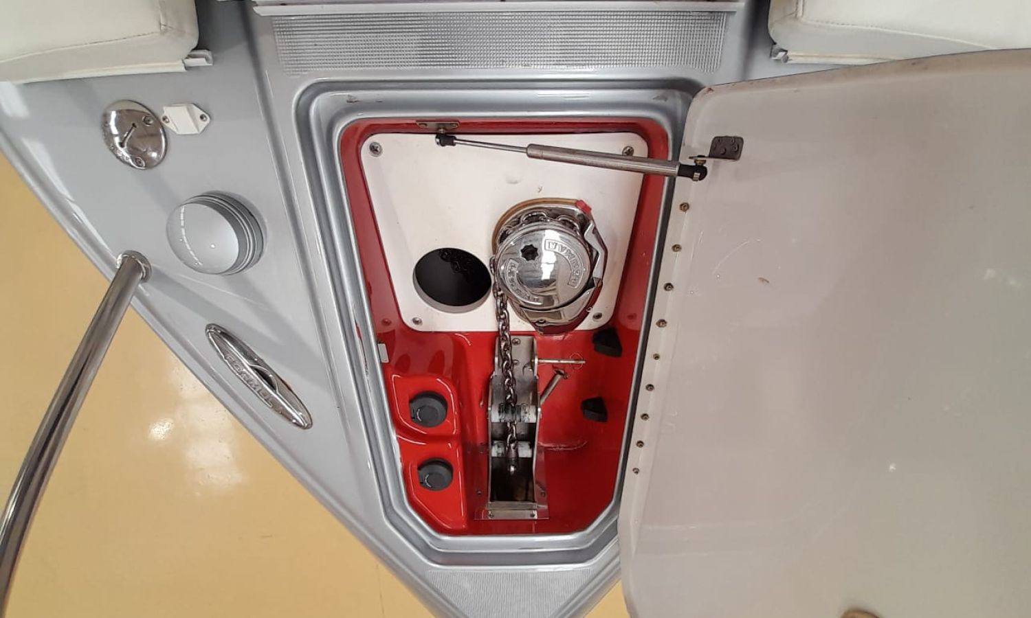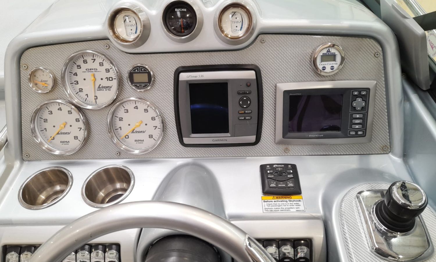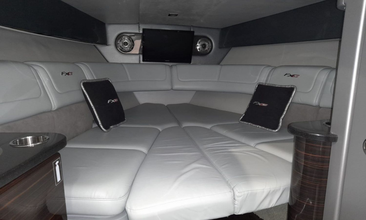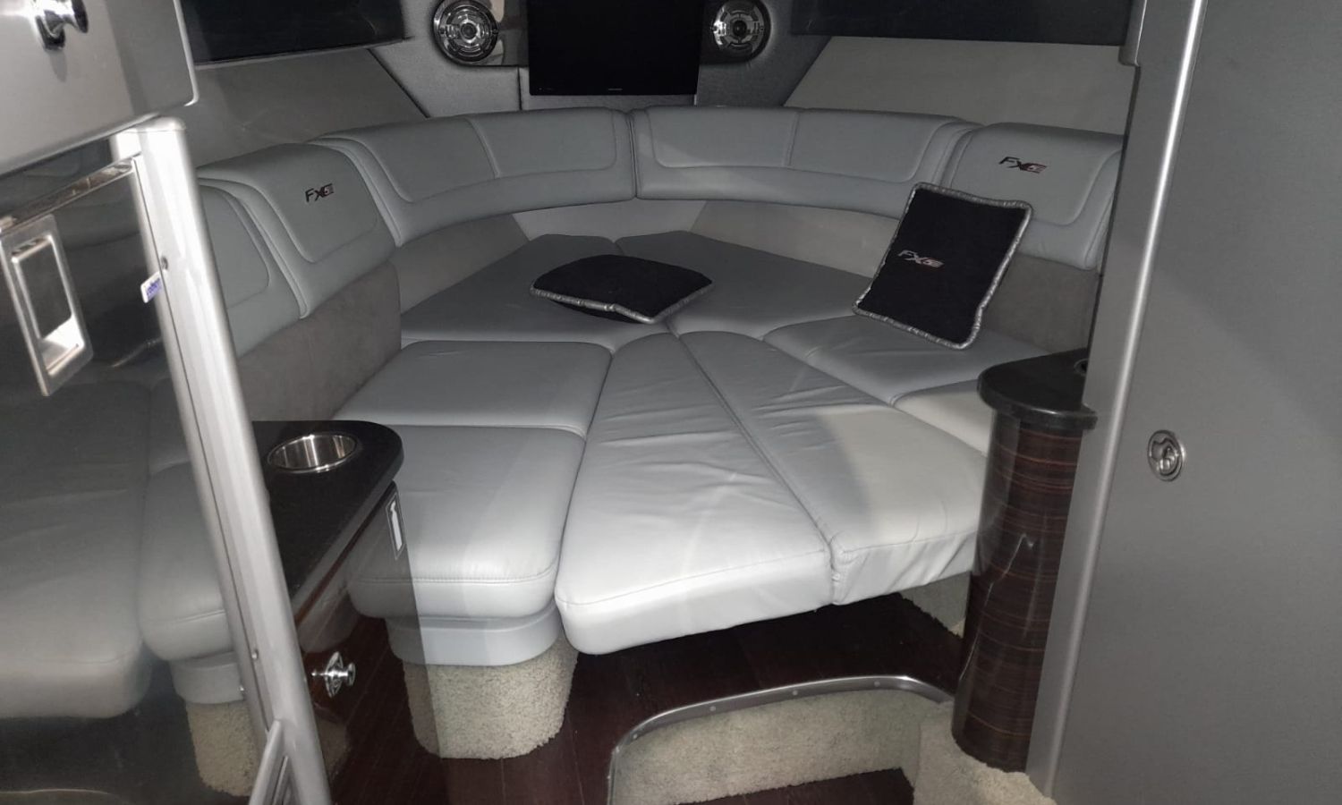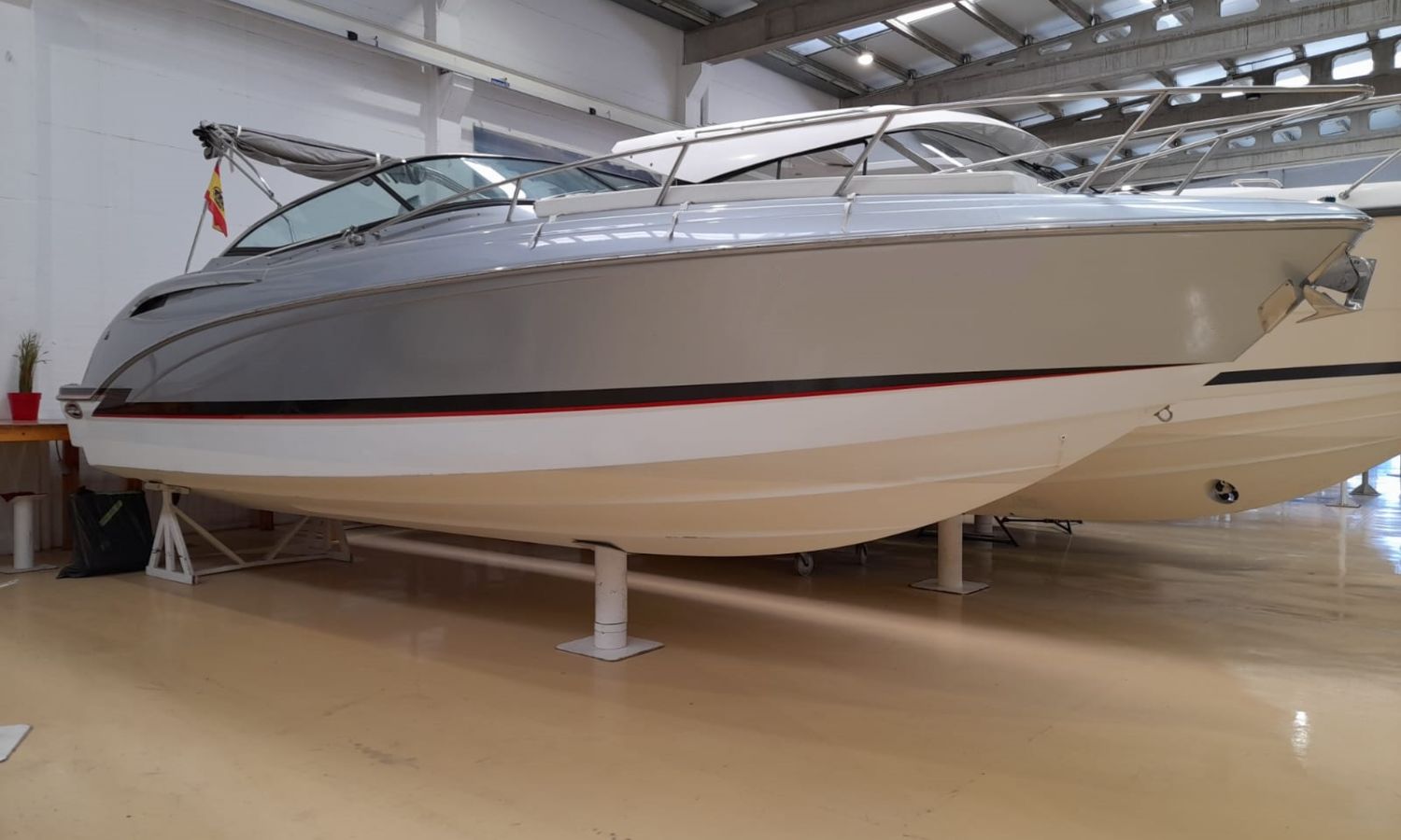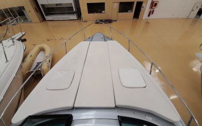 Molinete de ancla eléctrico - Cargador de baterías - Toma de puerto 220 V - GPS/Plotter/Sonda - VHF - Joystick - Equipo de música - Ducha exterior - Solárium de popa - Solárium de proa - Lona de fondeo - Nevera 12 V en bañera - Nevera en cabina - Bimini - Seadeck en plataforma de baño - WC eléctrico con depósito de aguas negras - Microondas - Flaps con indicador - TV - Mesa en bañera - Mandos electrónicos.Descripción embarcación