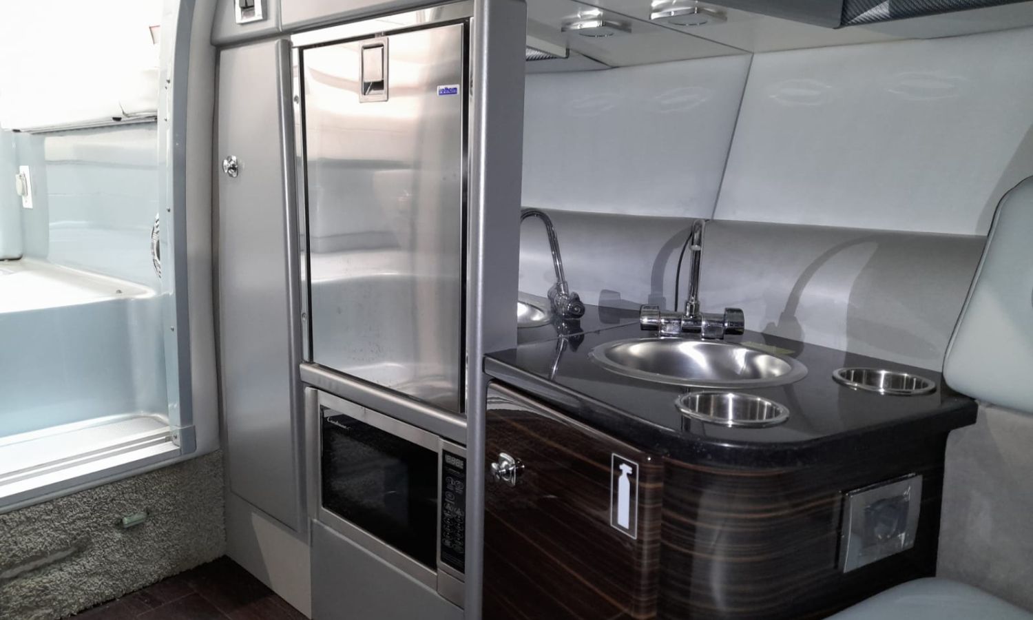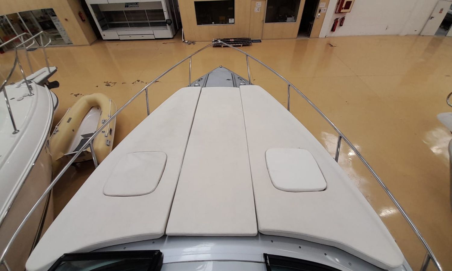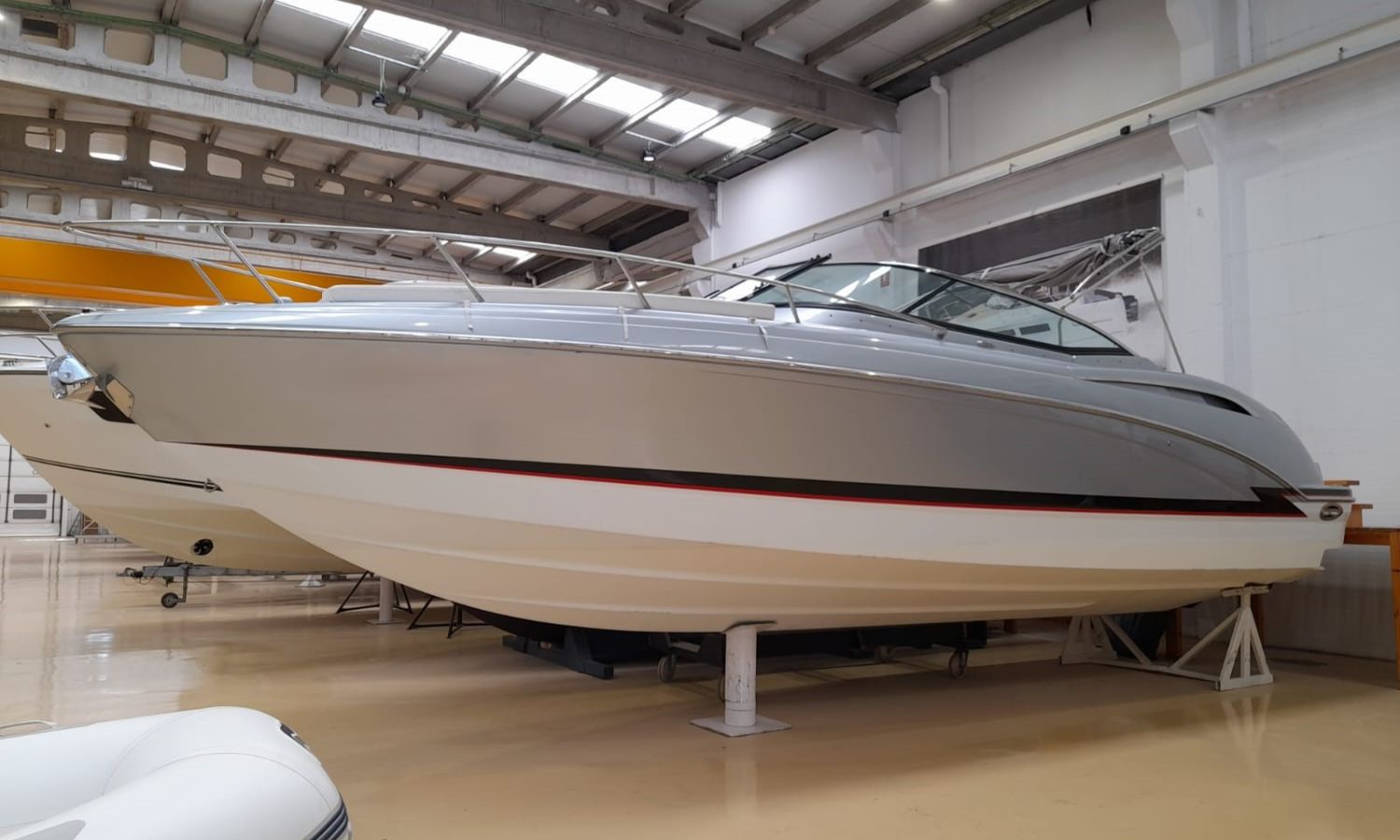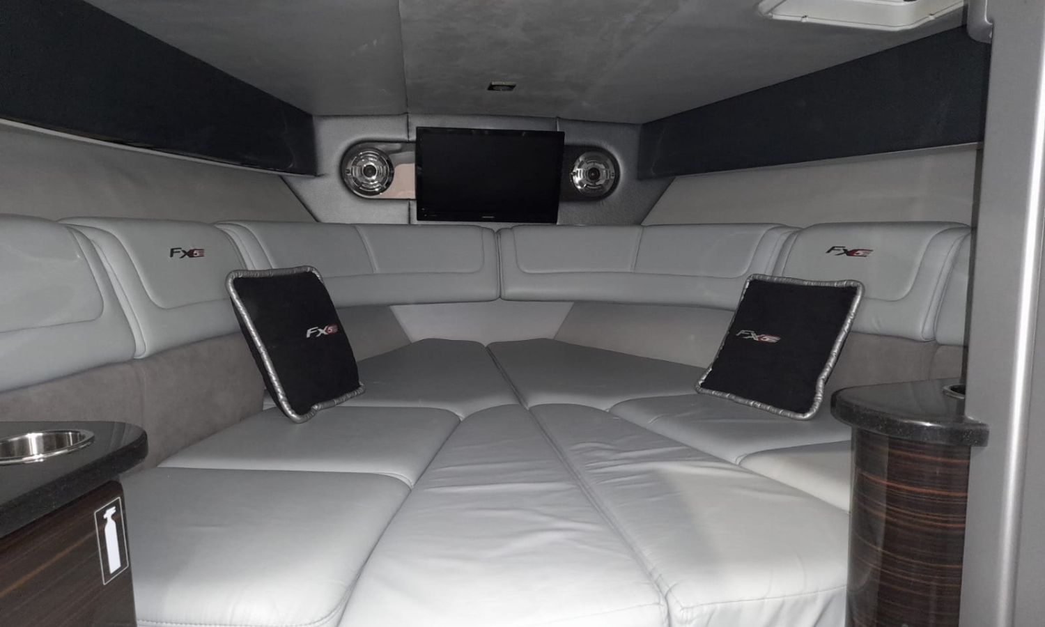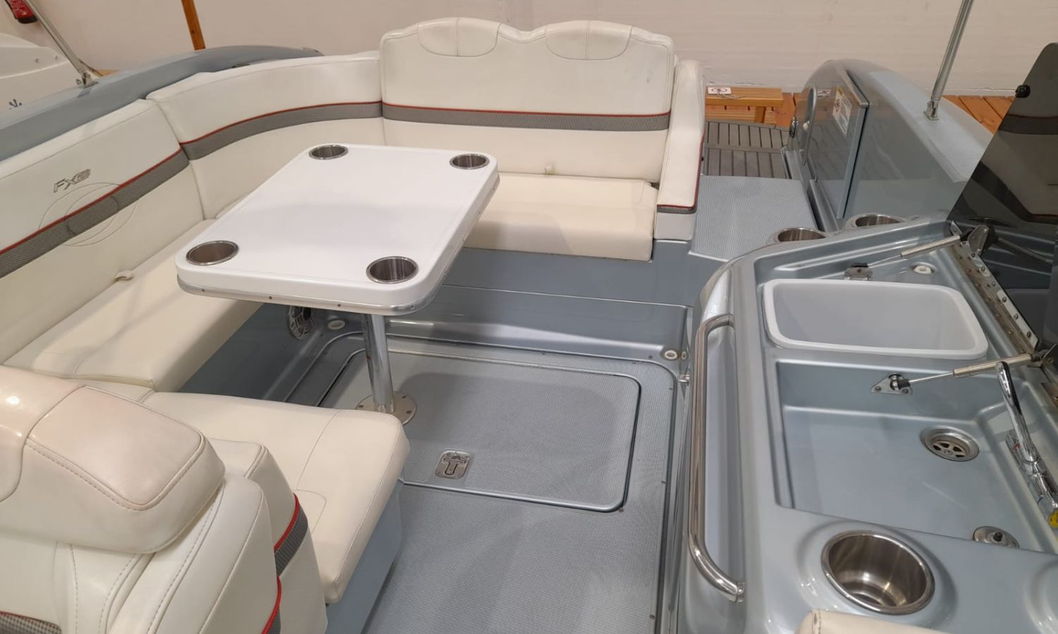 Molinete de ancla eléctrico - Cargador de baterías - Toma de puerto 220 V - GPS/Plotter/Sonda - VHF - Joystick - Equipo de música - Ducha exterior - Solárium de popa - Solárium de proa - Lona de fondeo - Nevera 12 V en bañera - Nevera en cabina - Bimini - Seadeck en plataforma de baño - WC eléctrico con depósito de aguas negras - Microondas - Flaps con indicador - TV - Mesa en bañera - Mandos electrónicos.Descripción embarcación